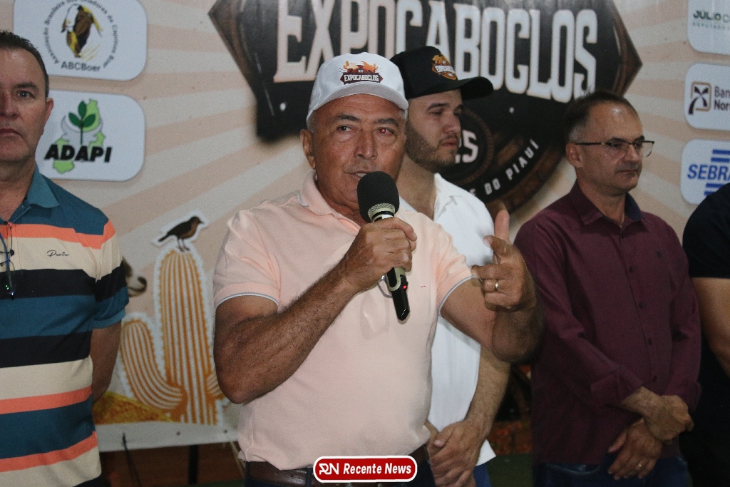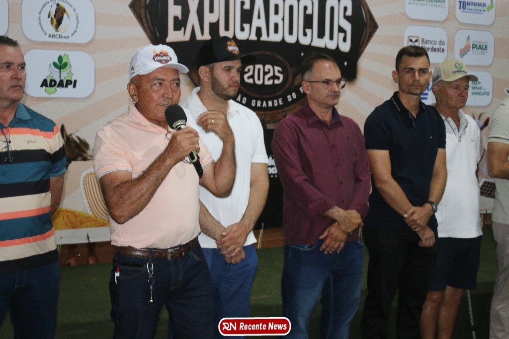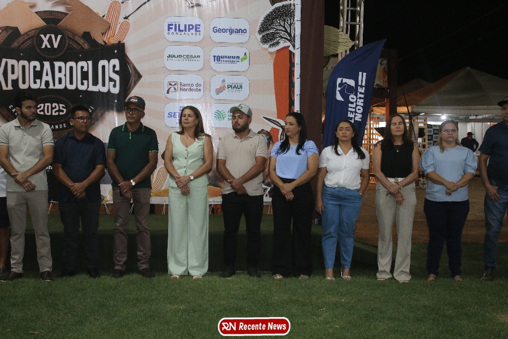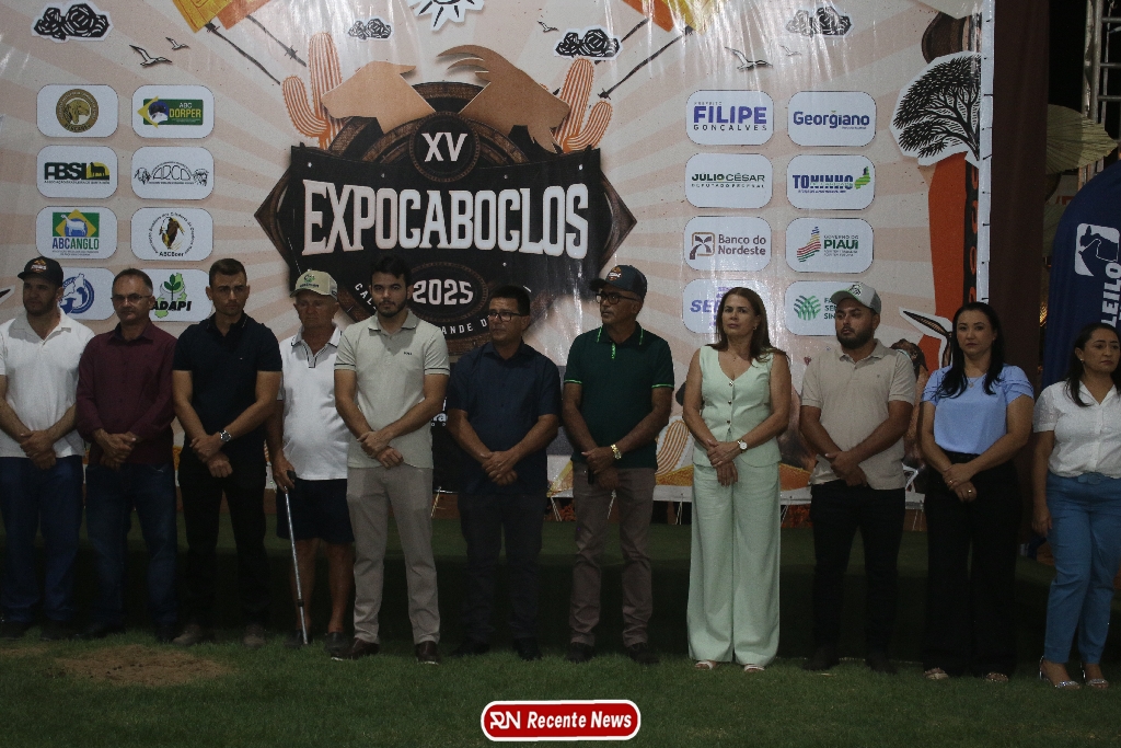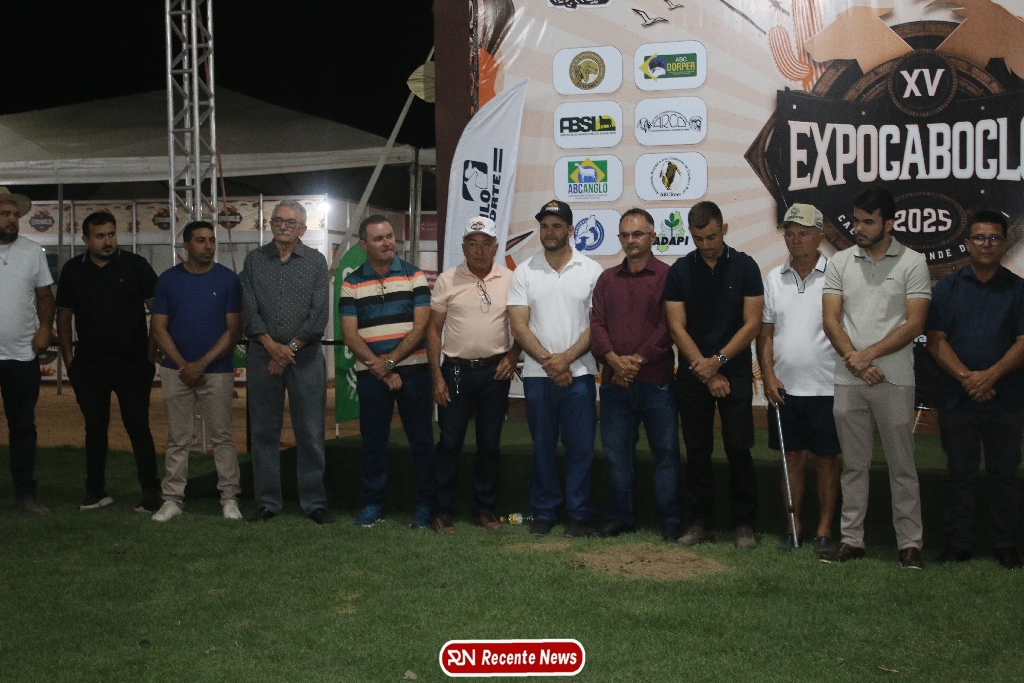 A cerimônia começou com as palavras do cerimonialista, destacando a origem e a grandeza do evento. A Expocaboclos, como lembrado no discurso, nasceu simples, fruto do trabalho e da coragem dos criadores da região, especialmente pelo empenho da ACOCAP — Associação dos Criadores de Ovinos e Caprinos de Caldeirão Grande do Piauí. O evento, que teve suas primeiras edições realizadas ainda no terreiro da Fazenda Algarobas, propriedade do senhor Manoel Eugênio, cresceu ao longo dos anos até tornar-se a maior e melhor exposição agropecuária do interior do estado.