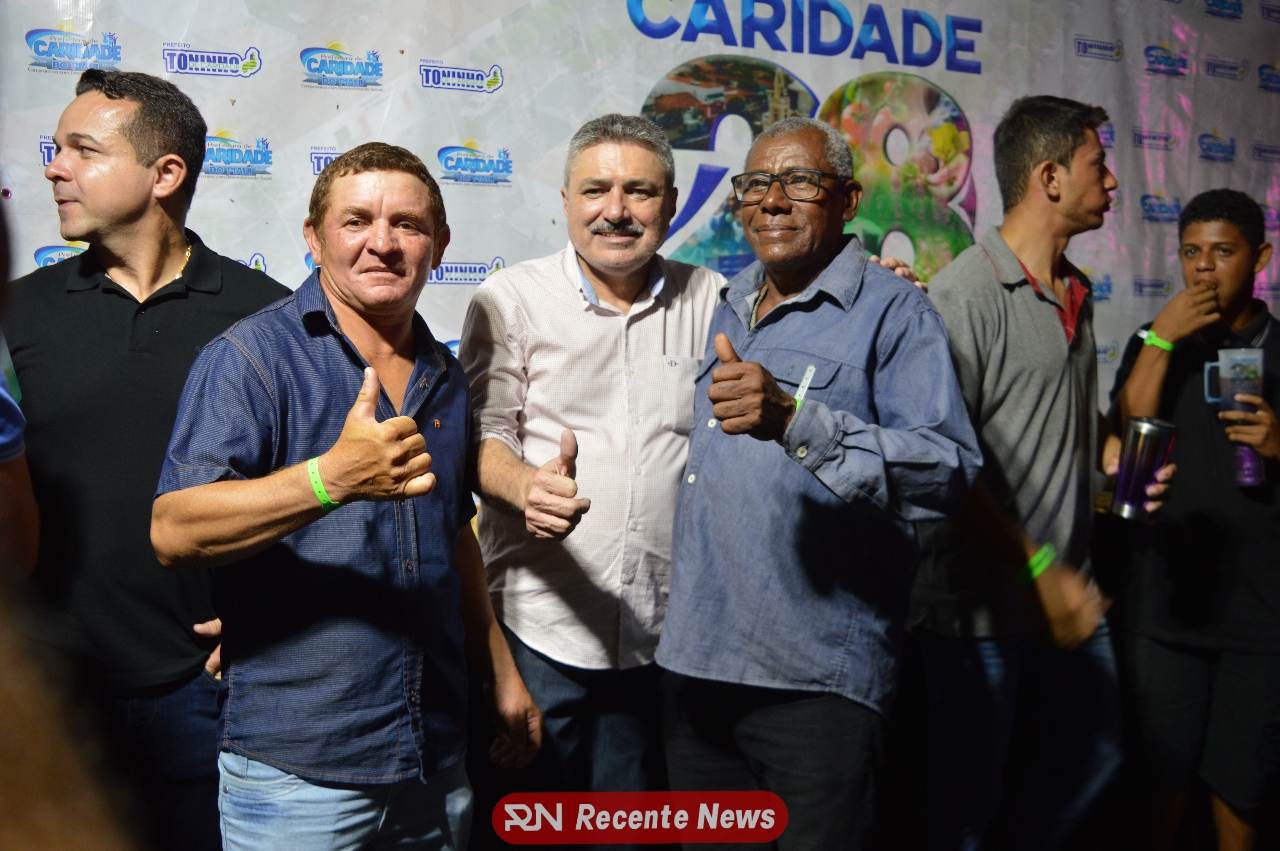 Muita gente nos shows de “Xenhenhem”, “Amado Batista”, “Ŕai Saia Rodada” e Gustavinho e Haroldinho”. Prefeito Toninho cantou os parabéns para Caridade junto com o deputado Georgiano e Assis Rocha, superintendente do Dnocs, Piauí.