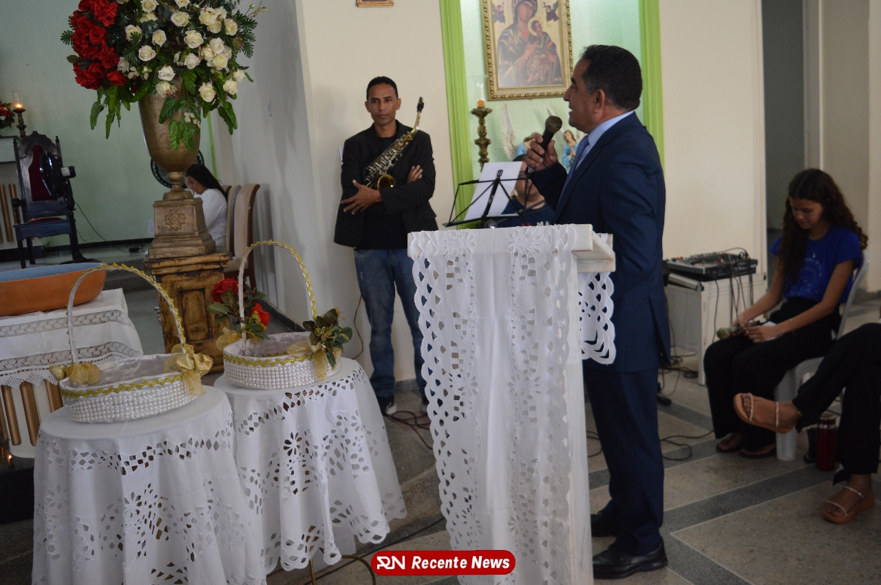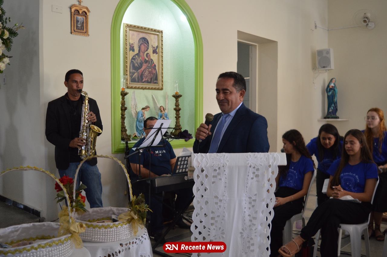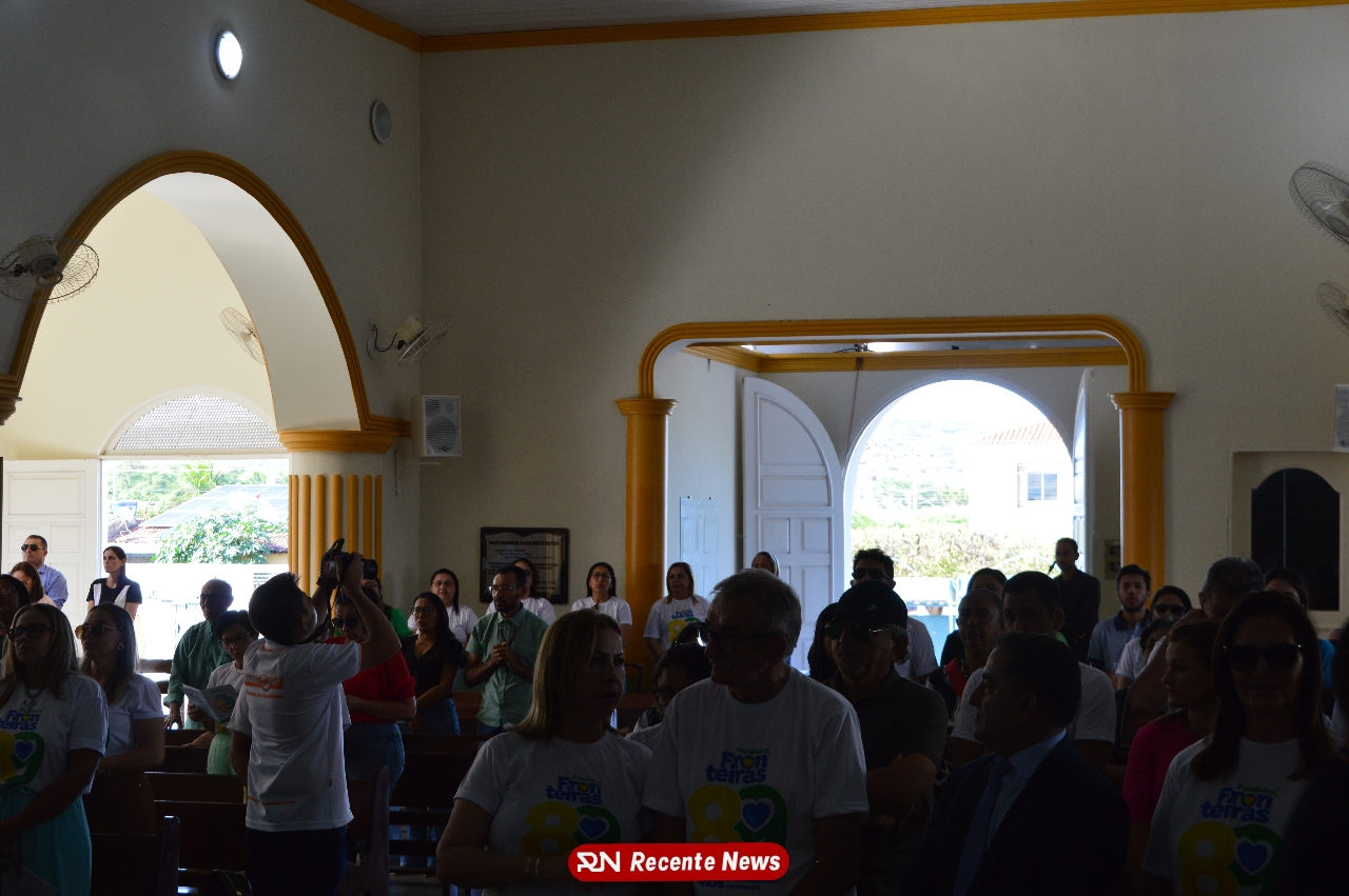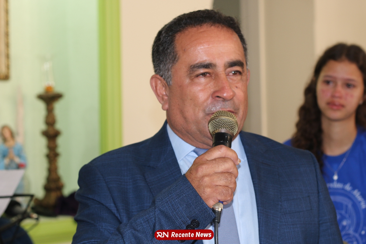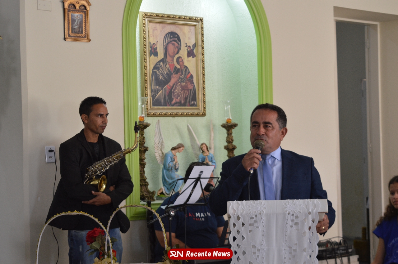 Durante a missa, o Prefeito Eudes Agripino, visivelmente emocionado, agradeceu a participação de todos e reforçou a importância da fé e união da comunidade.
