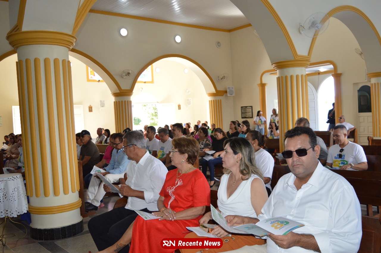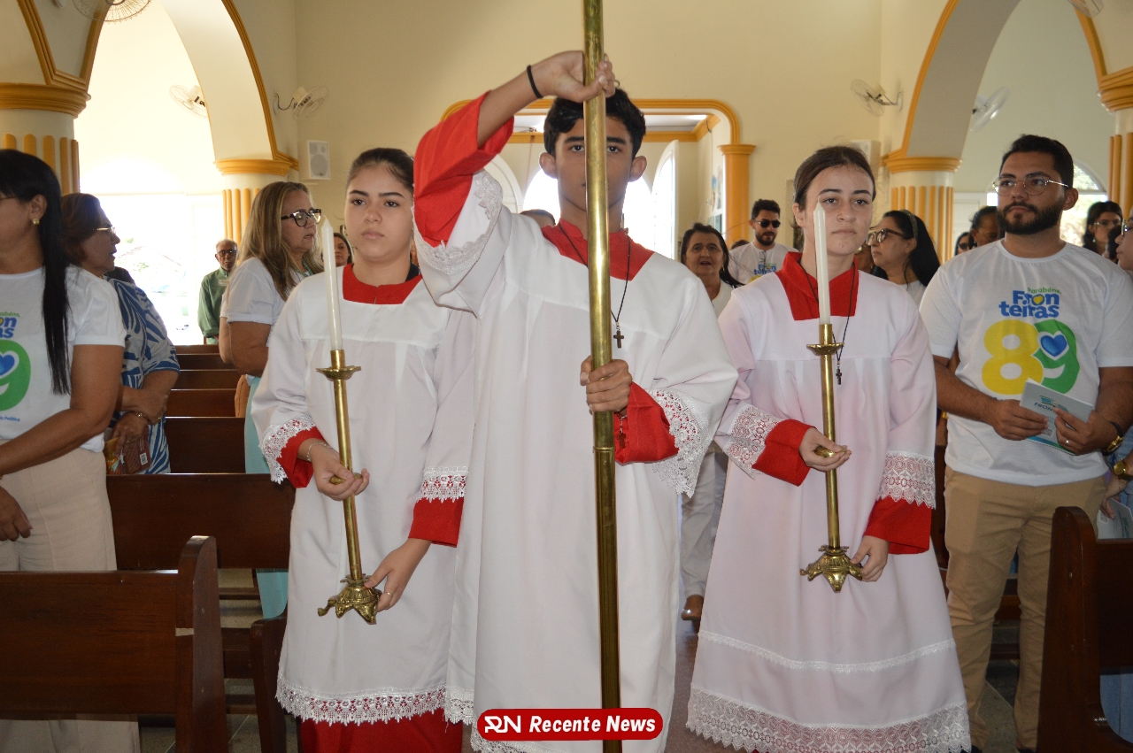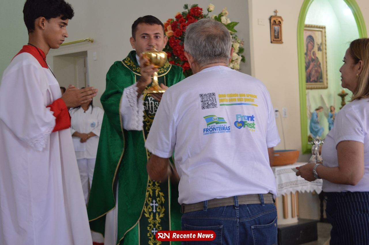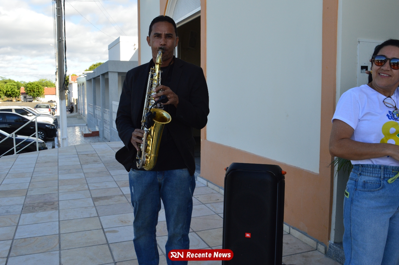 Durante a missa, o Prefeito Eudes Agripino, visivelmente emocionado, agradeceu a participação de todos e reforçou a importância da fé e união da comunidade.