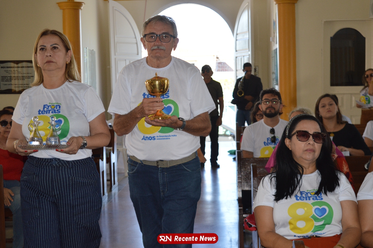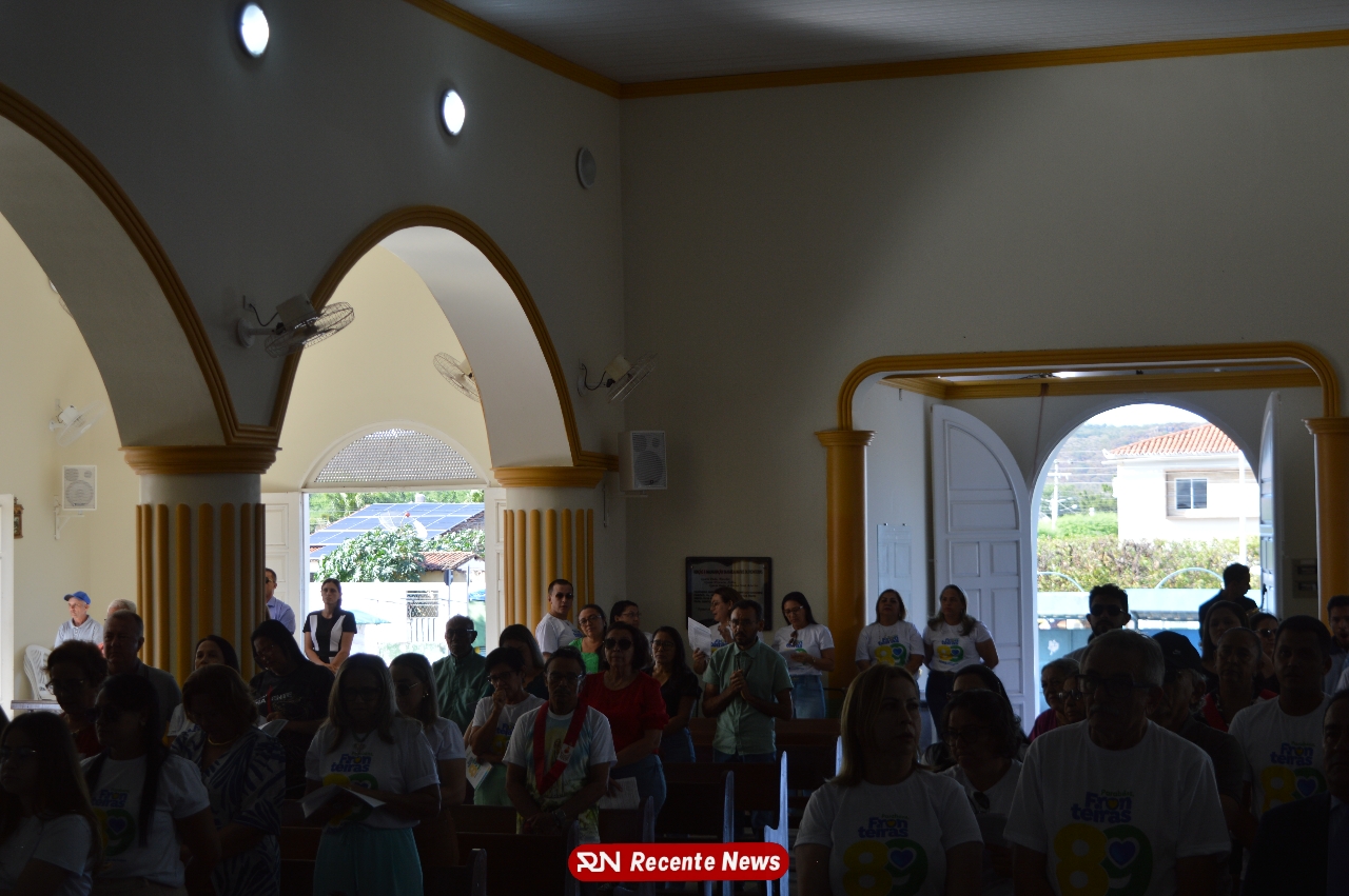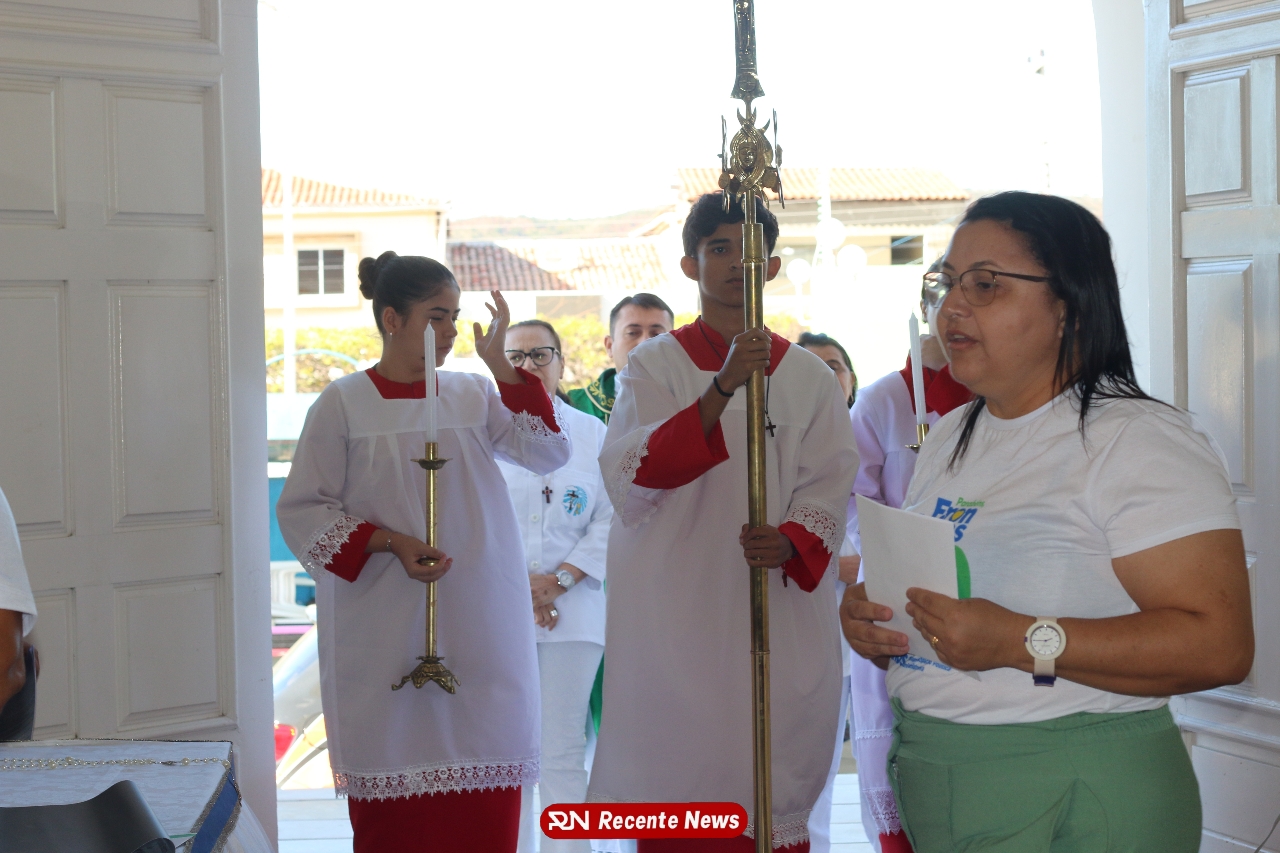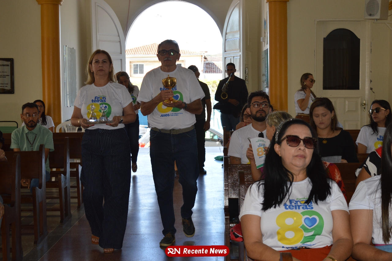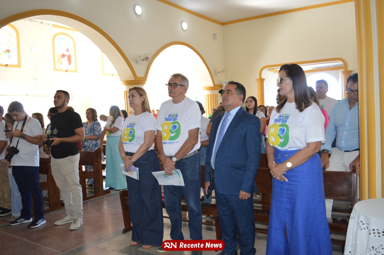 Durante a missa, o Prefeito Eudes Agripino, visivelmente emocionado, agradeceu a participação de todos e reforçou a importância da fé e união da comunidade.