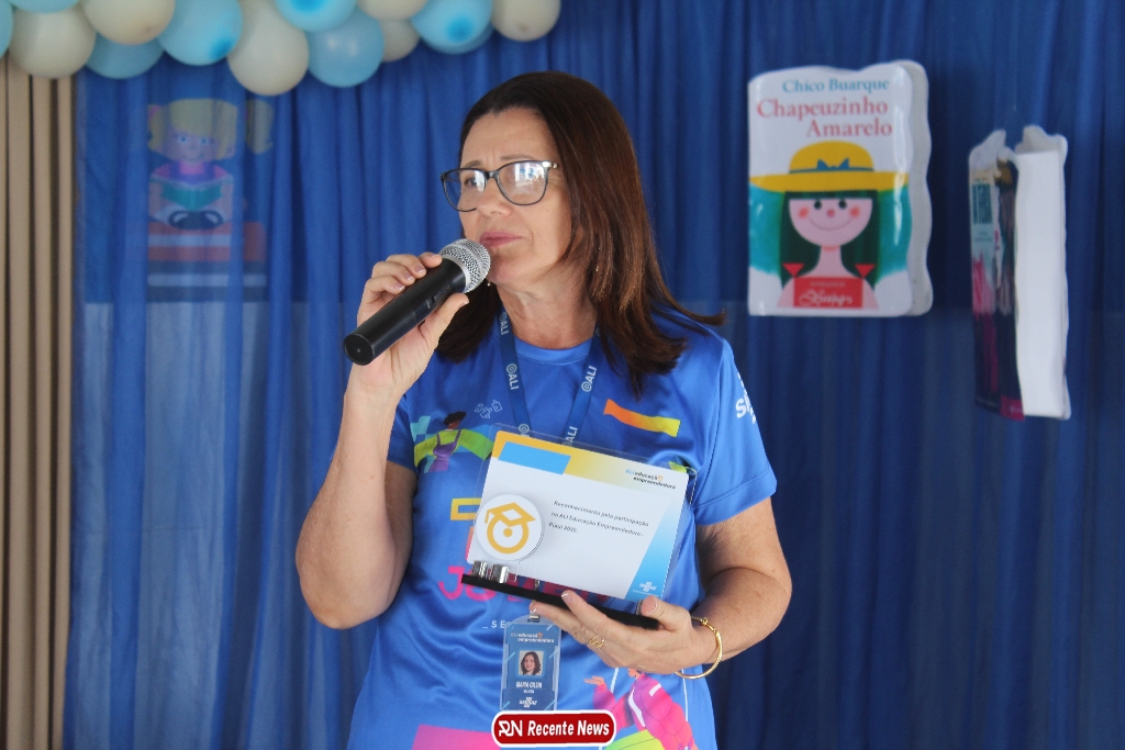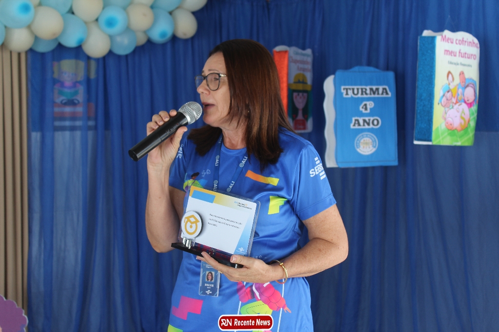 A coordenadora Ronimaura Dias expressou sua emoção e gratidão pelo sucesso do projeto, reforçando a importância da parceria que sustenta o crescimento da escola.