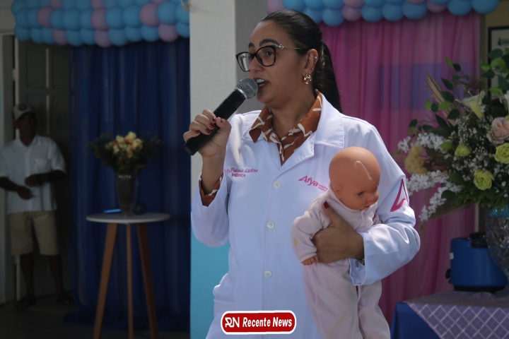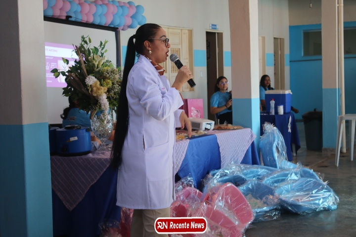 Outro ponto de grande relevância foi a palestra sobre aleitamento materno, ministrada por uma enfermeira da rede municipal. Na oportunidade, foram discutidos os principais benefícios da amamentação, técnicas adequadas para um processo seguro e confortável, além de orientações para lidar com possíveis dificuldades nos primeiros dias de vida da criança.