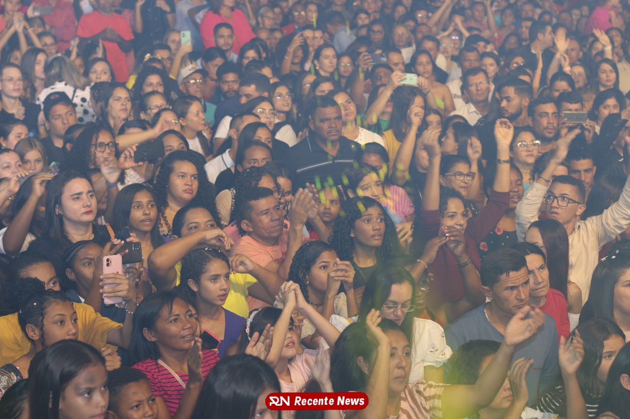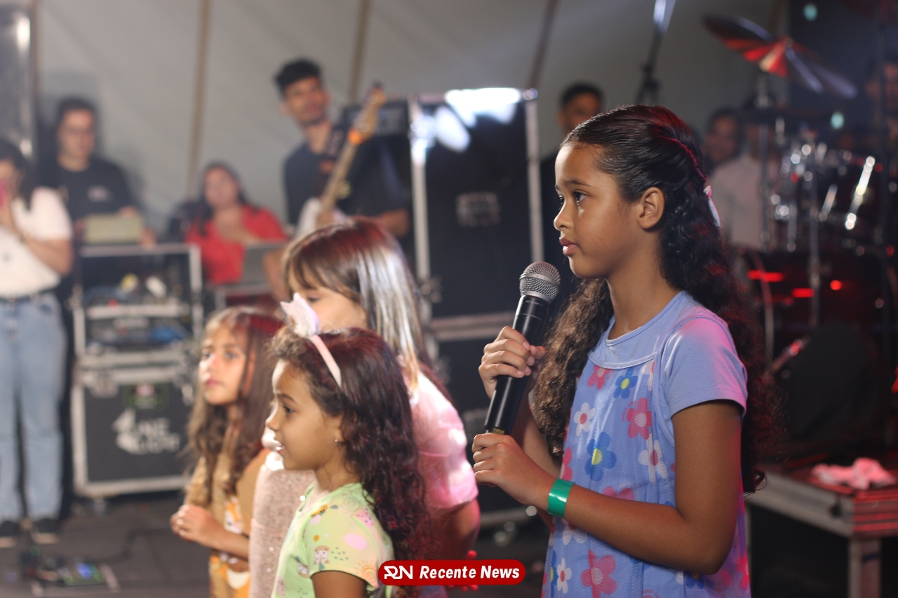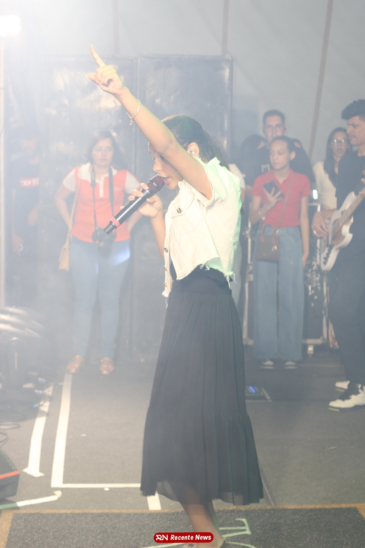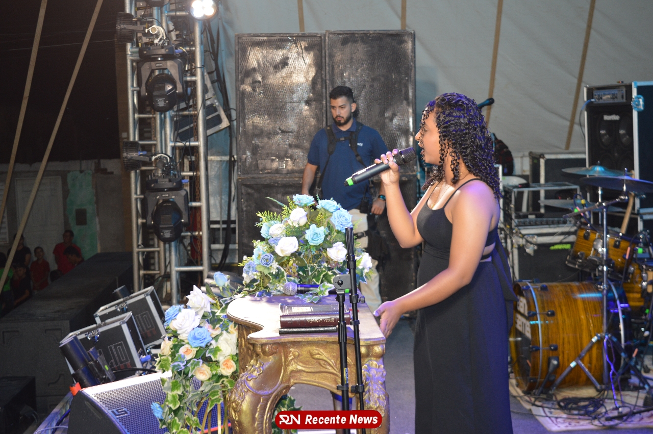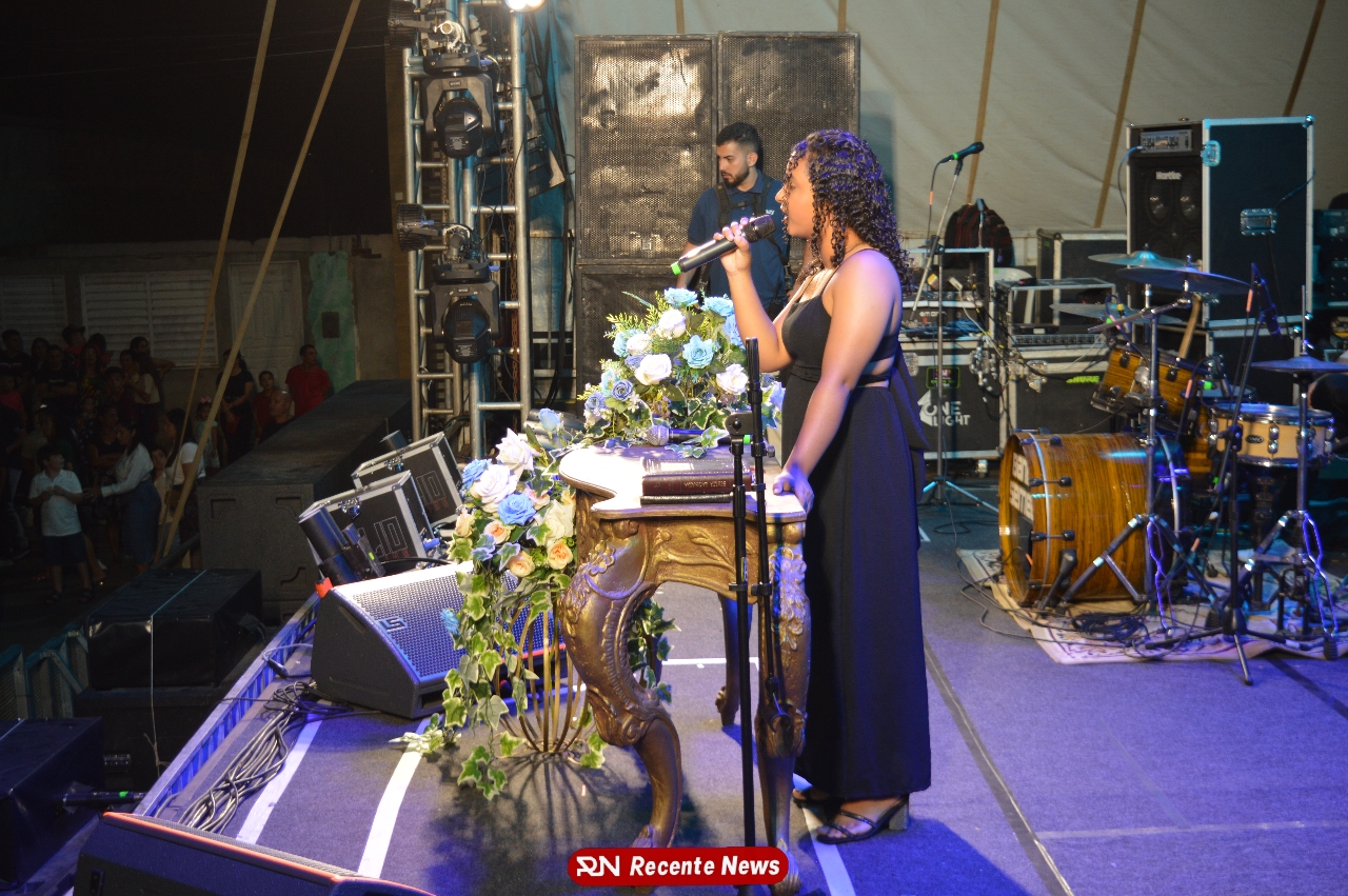 A noite começou com uma apresentação emocionante da cantora Maria Marçal, que encantou o público com sua voz poderosa e presença cativante. Seus louvores trouxeram um clima de devoção e celebração, envolvendo todos os presentes em um momento de profunda espiritualidade.