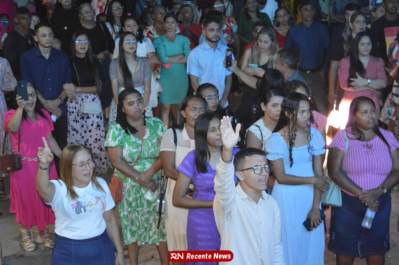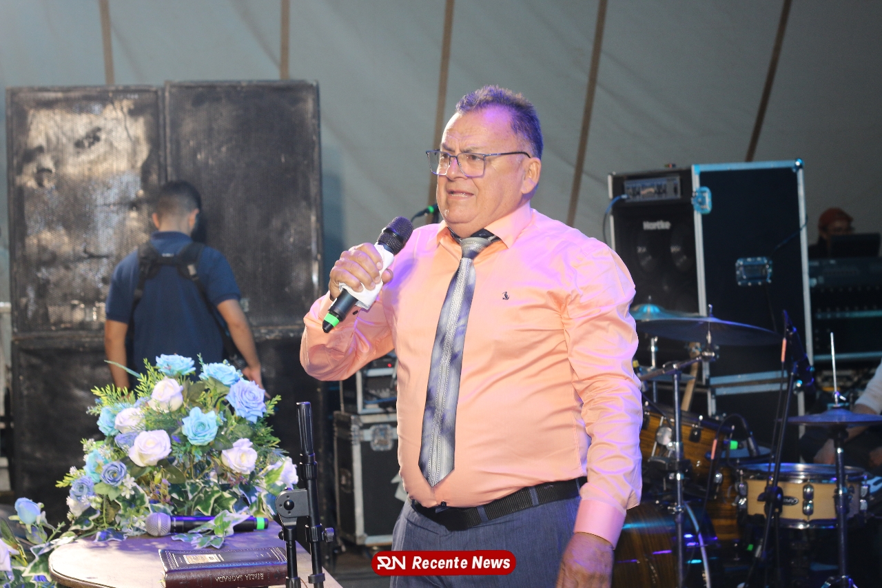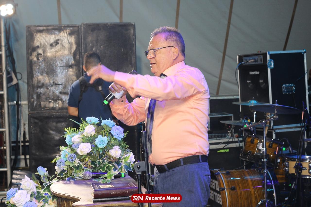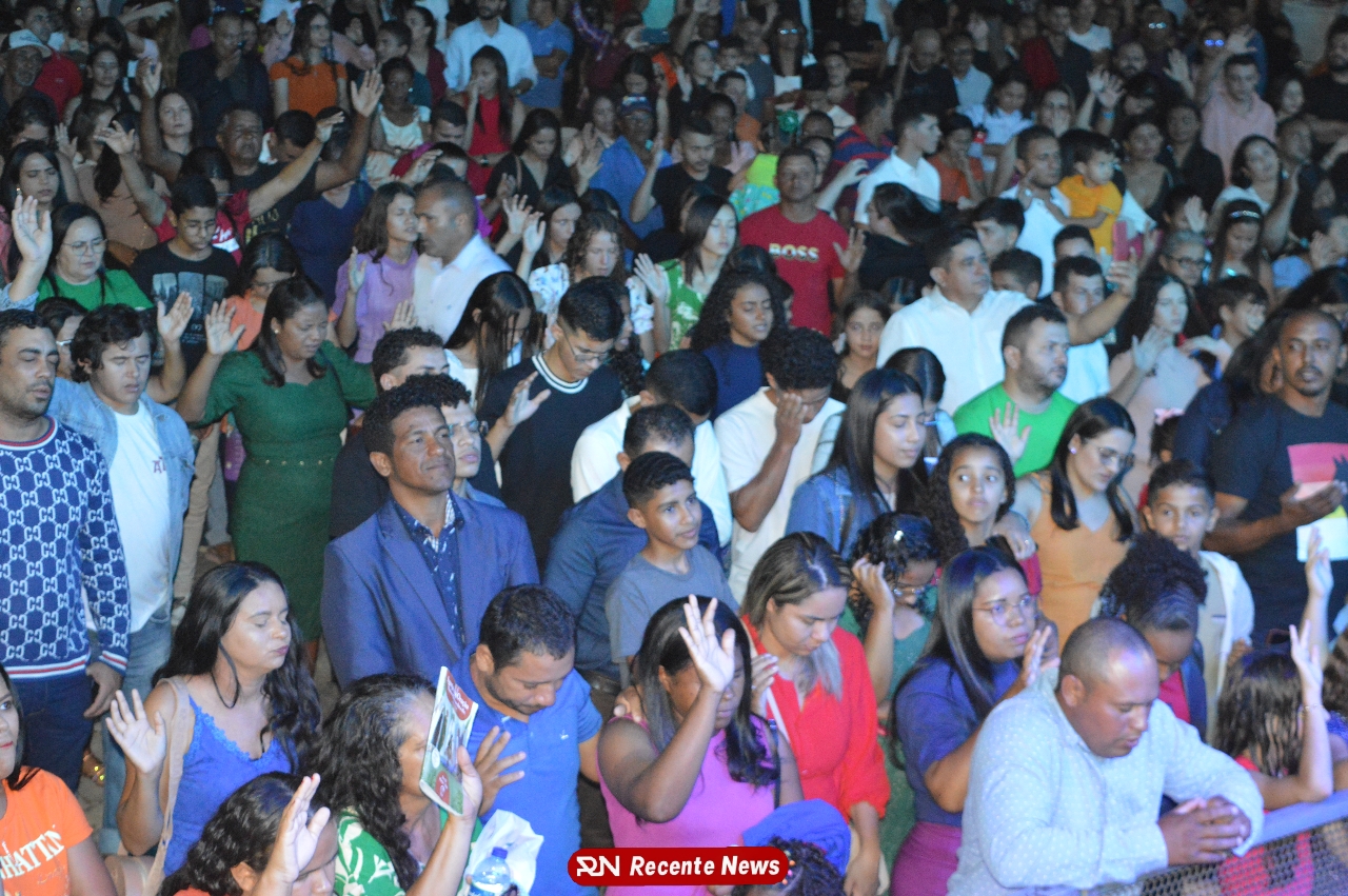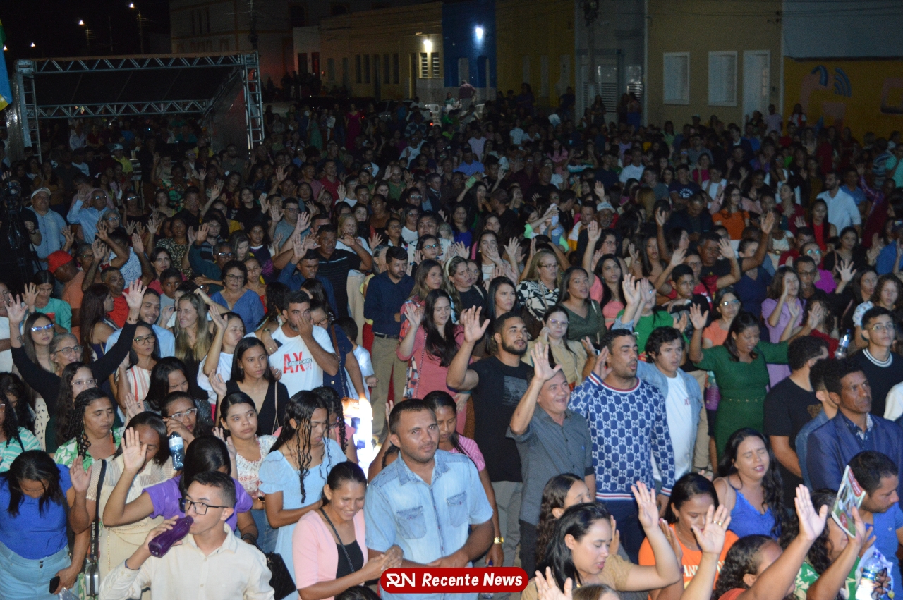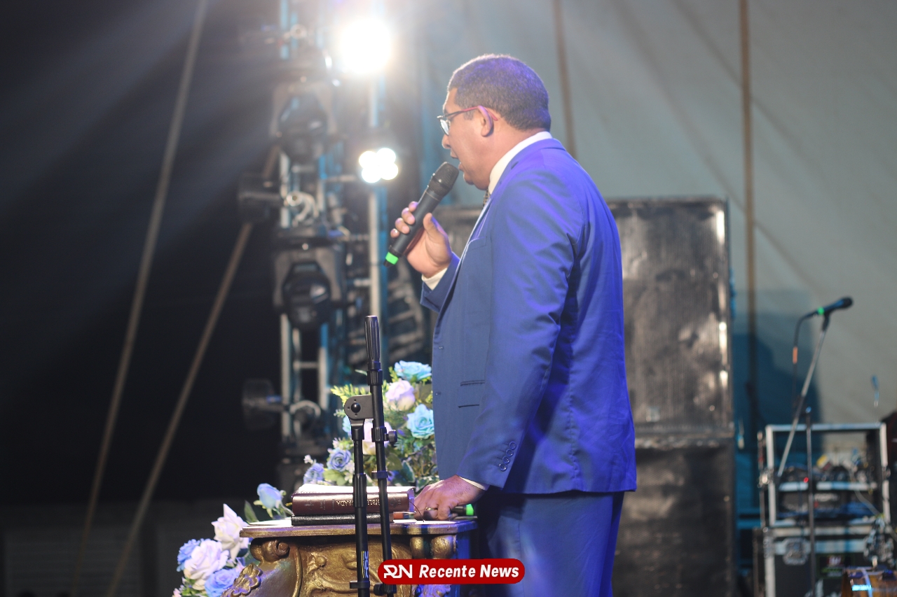 Seguindo a apresentação musical, o pastor Serafim Sobrinho conduziu uma pregação inspiradora, que tocou os corações dos fiéis e reforçou mensagens de fé, esperança e união. Suas palavras ressoaram na praça lotada, criando um ambiente de reflexão e comunhão entre os presentes.