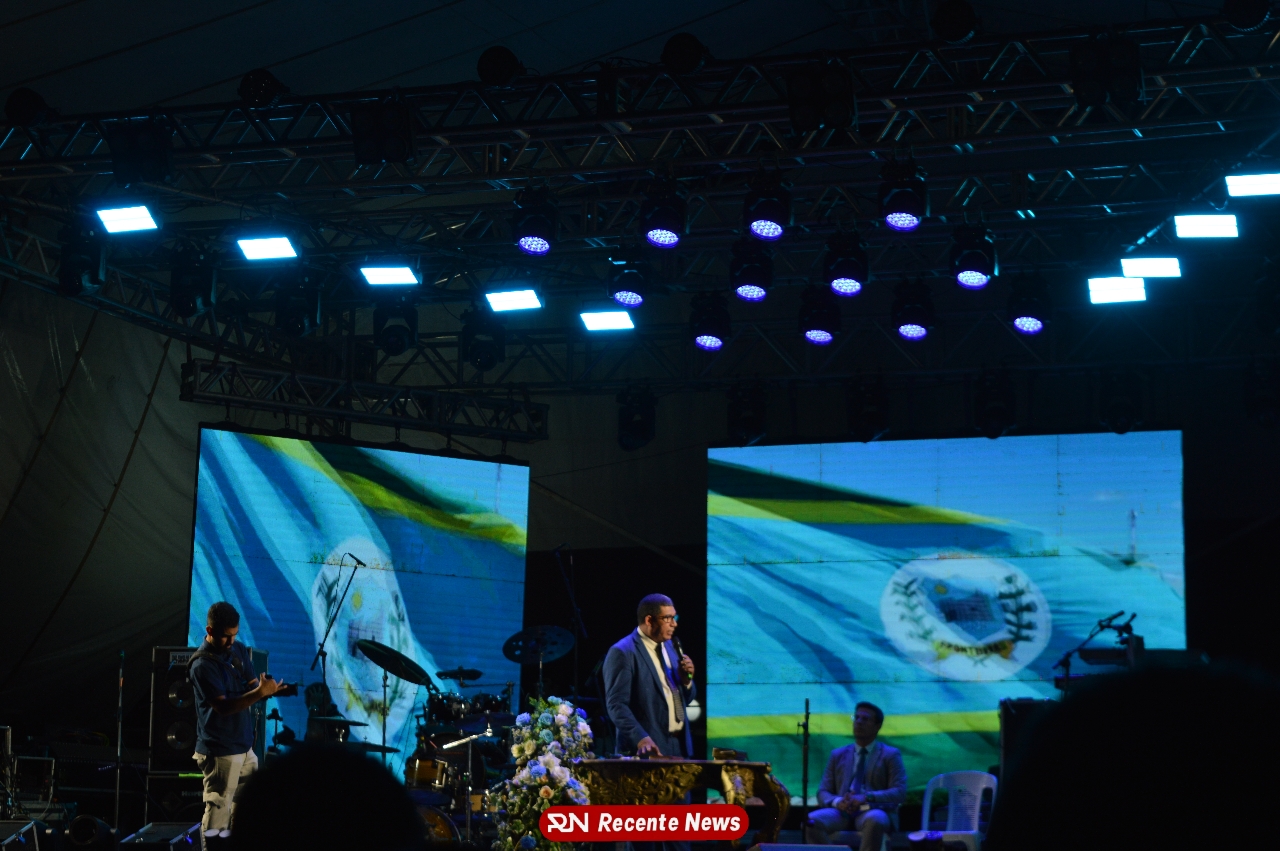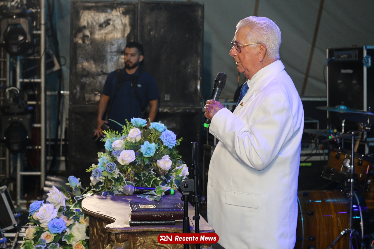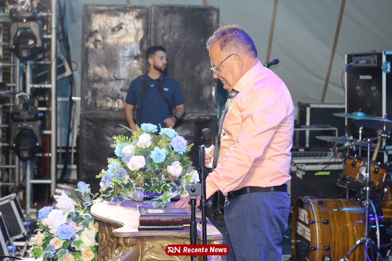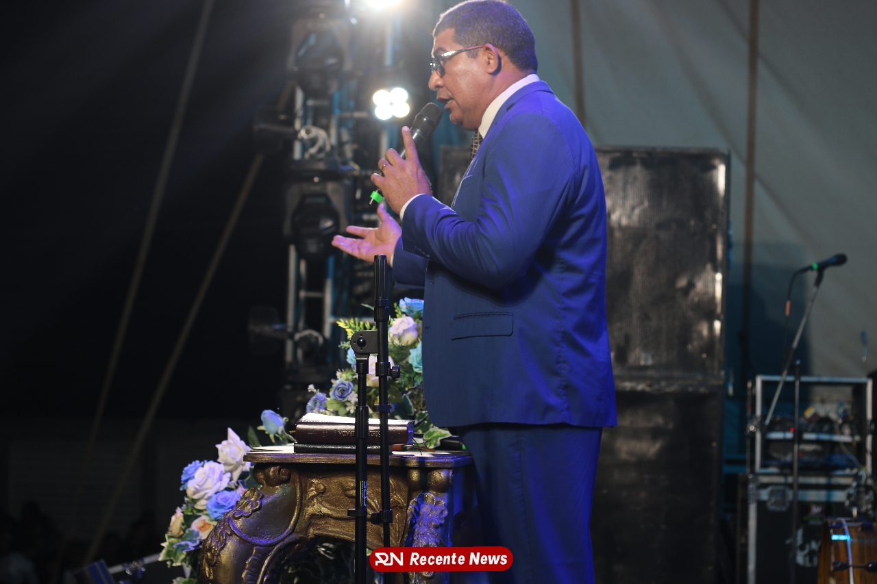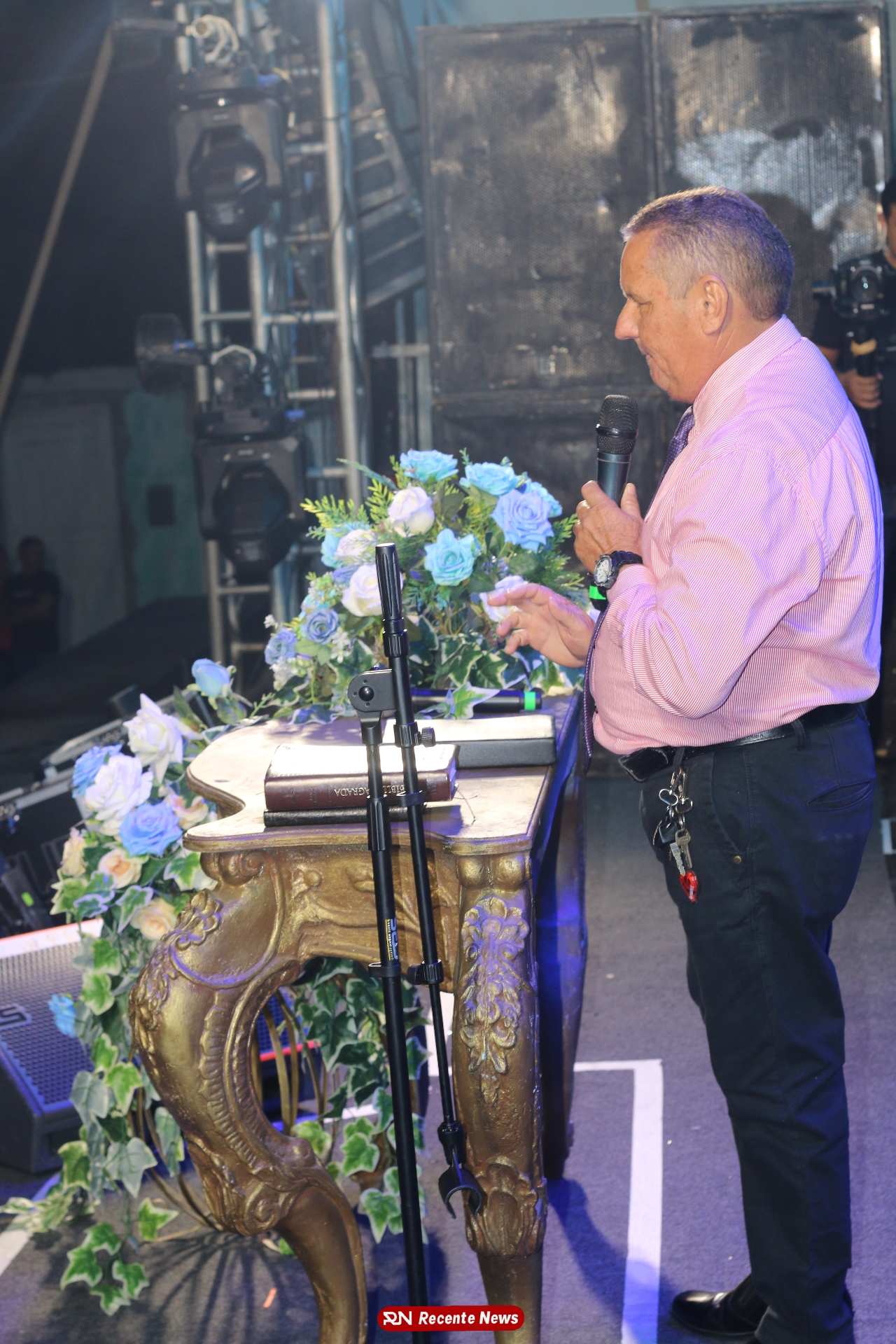 Seguindo a apresentação musical, o pastor Serafim Sobrinho conduziu uma pregação inspiradora, que tocou os corações dos fiéis e reforçou mensagens de fé, esperança e união. Suas palavras ressoaram na praça lotada, criando um ambiente de reflexão e comunhão entre os presentes.
