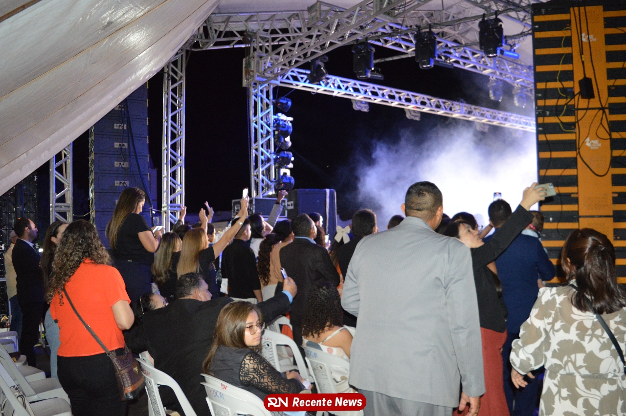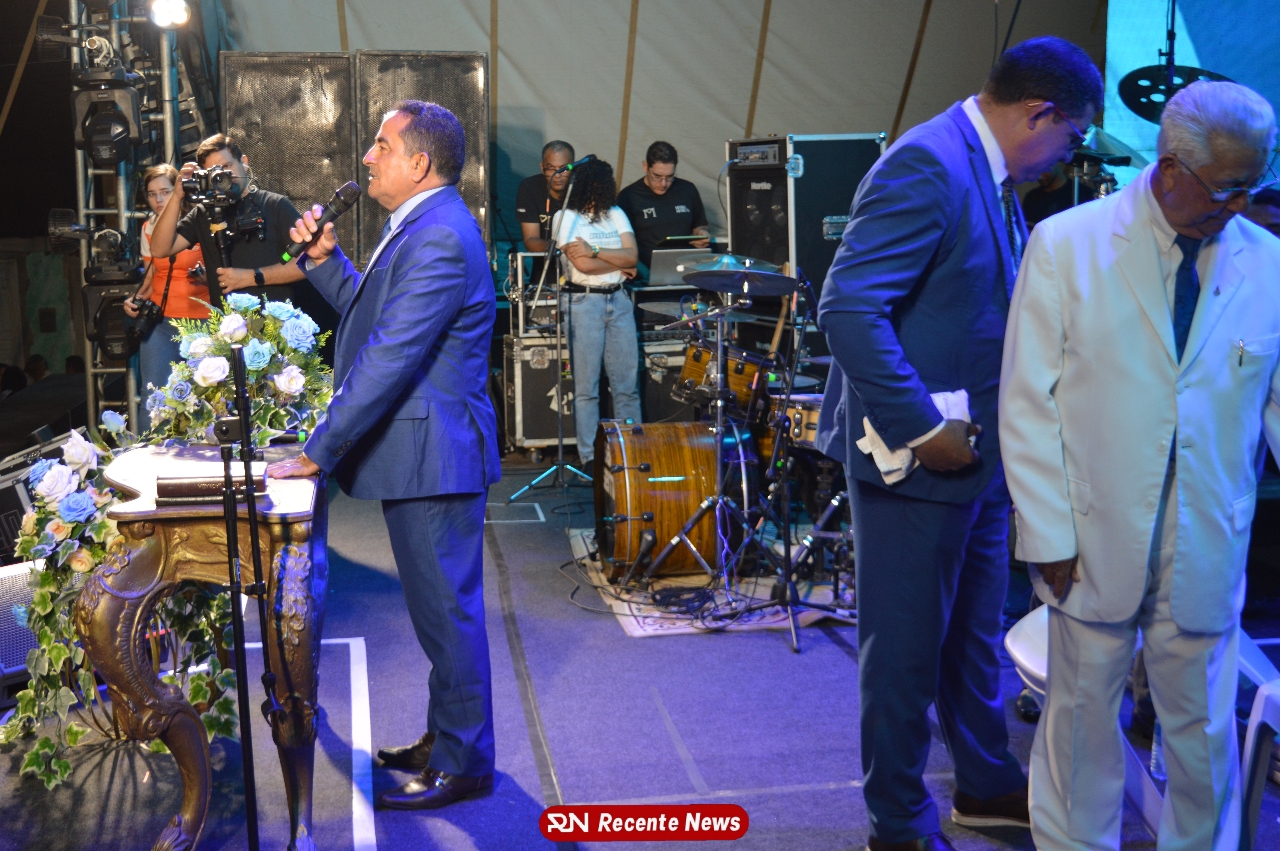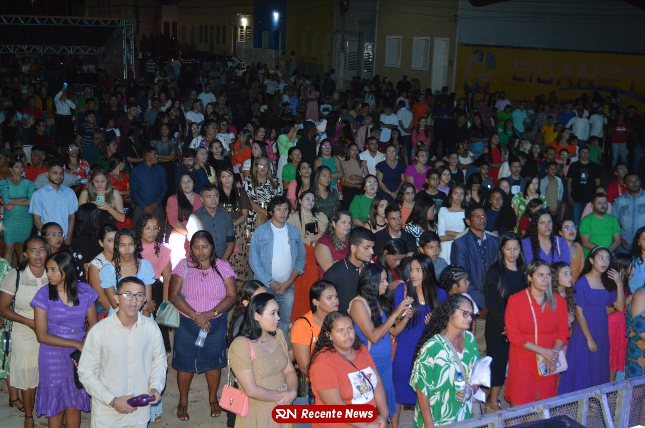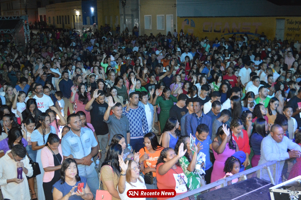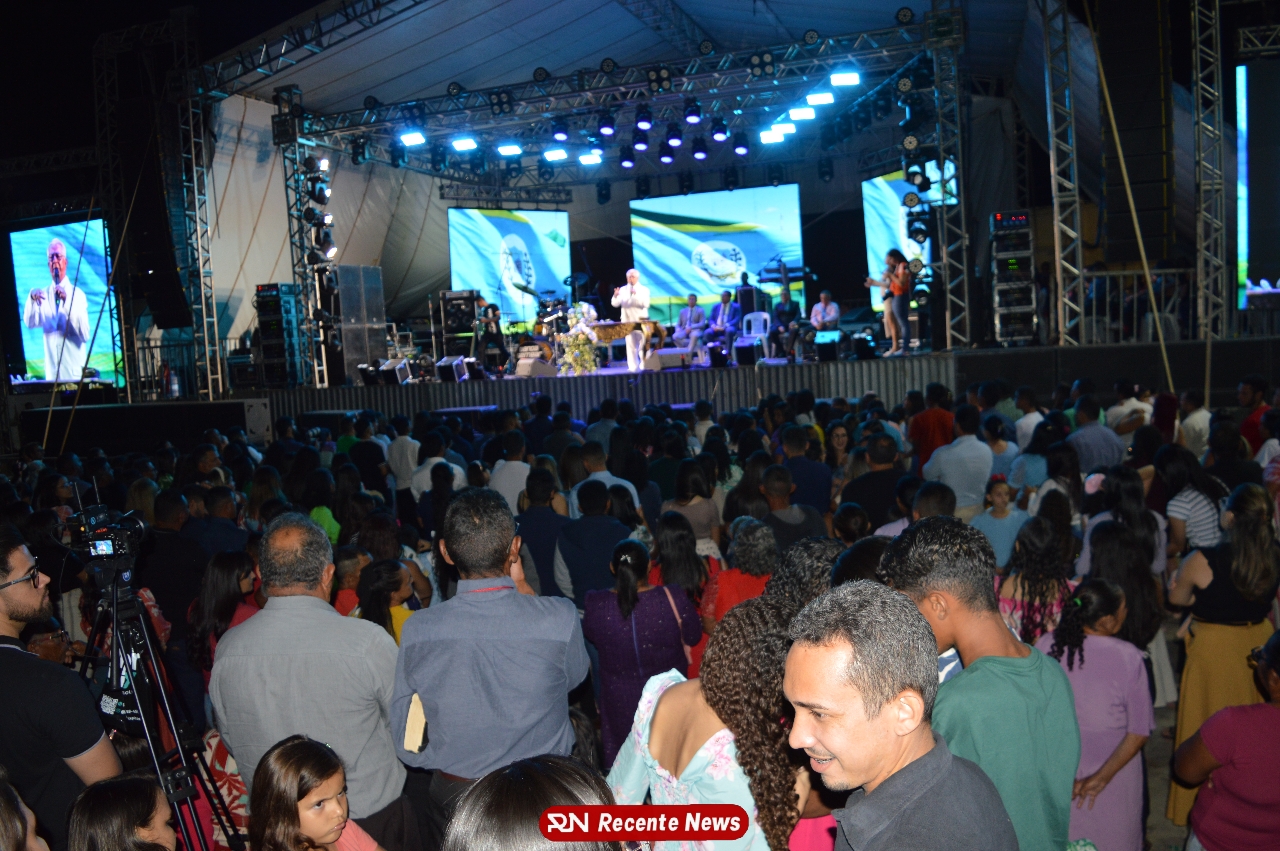 O Prefeito Eudes Agripino, acompanhado da Primeira Dama Zildenia, também esteve presente, agradecendo a participação de todos e destacando a importância desse encerramento. “Encerrar as comemorações com um culto tão especial reflete o espírito de nossa cidade, que é fundamentado na fé e na união de sua gente. Agradecemos a todos que participaram e contribuíram para o sucesso dessa celebração,” afirmou o prefeito.