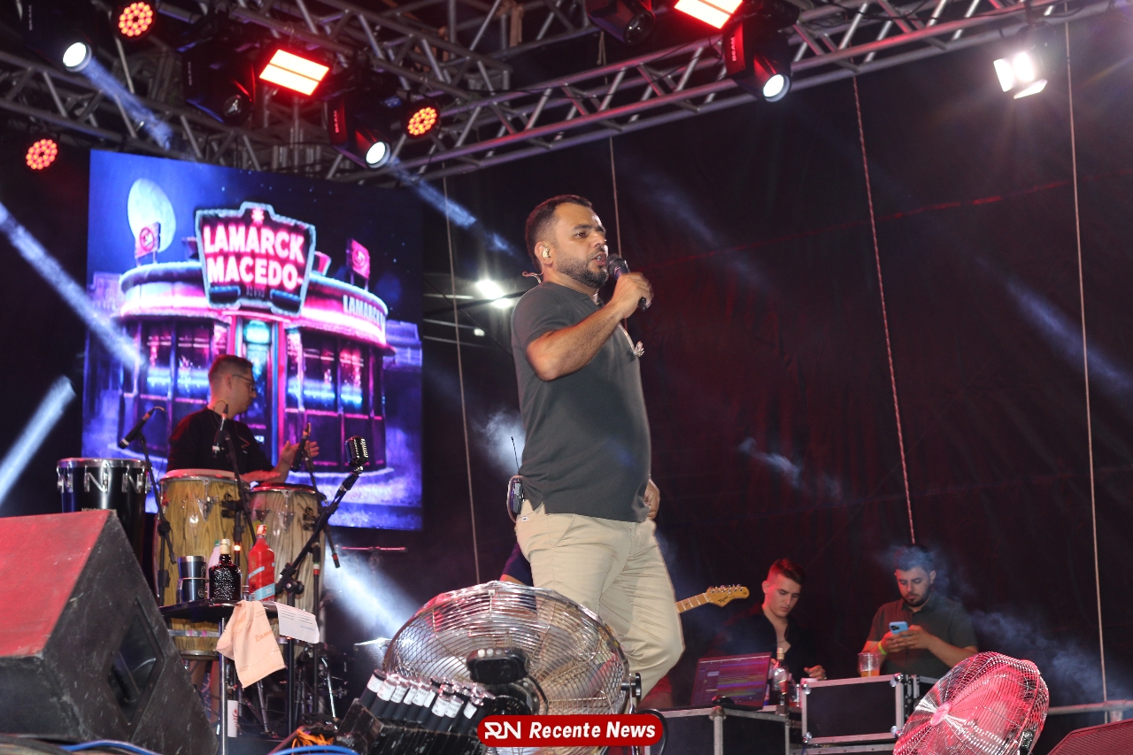O primeiro a subir ao palco foi Lamarck Macedo, que trouxe um repertório vibrante, mesclando músicas autorais com grandes sucessos do forró. Seu show foi marcado pela energia contagiante e pela interação com o público, que não parou de dançar e cantar.