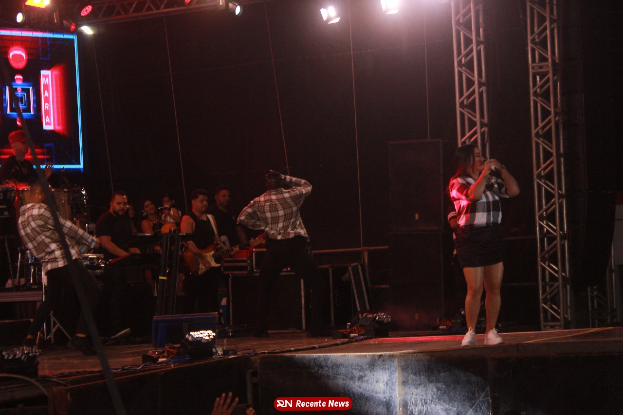 Em seguida, a cantora Mara Pavanelly tomou conta do palco com sua voz potente e presença de palco marcante. Conhecida por seus hits no cenário do forró, Mara fez uma apresentação inesquecível, levando os fãs ao delírio com suas músicas emocionantes e performance envolvente.