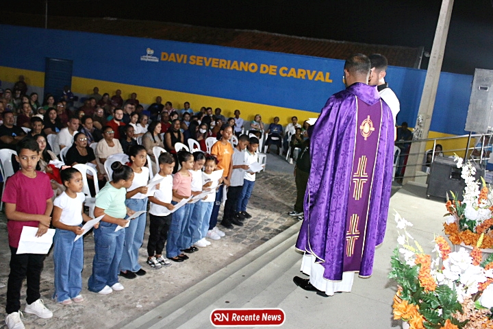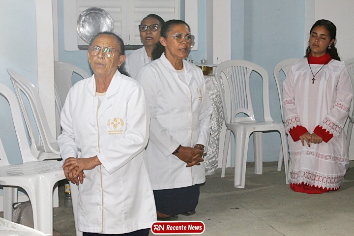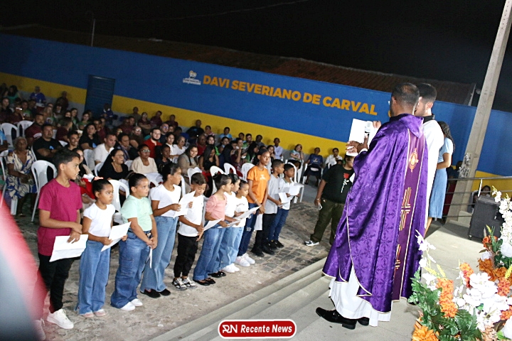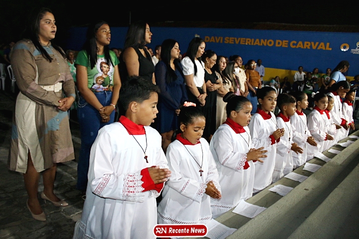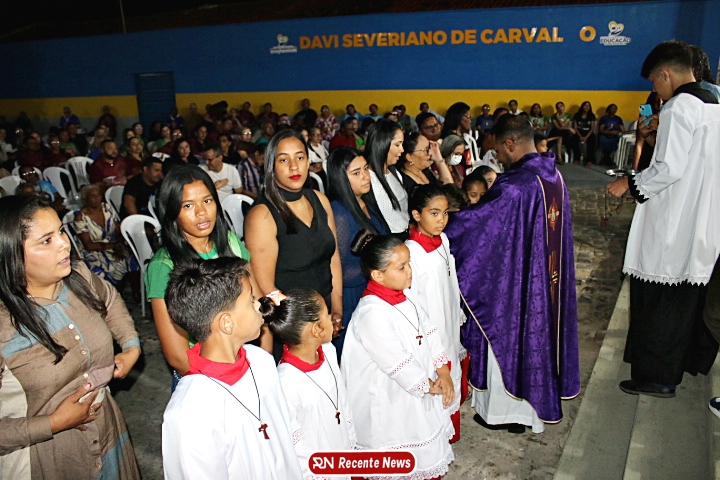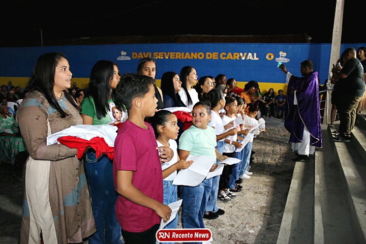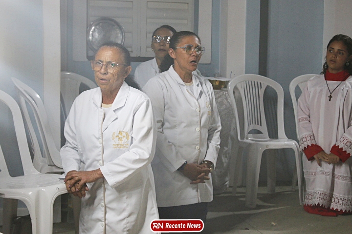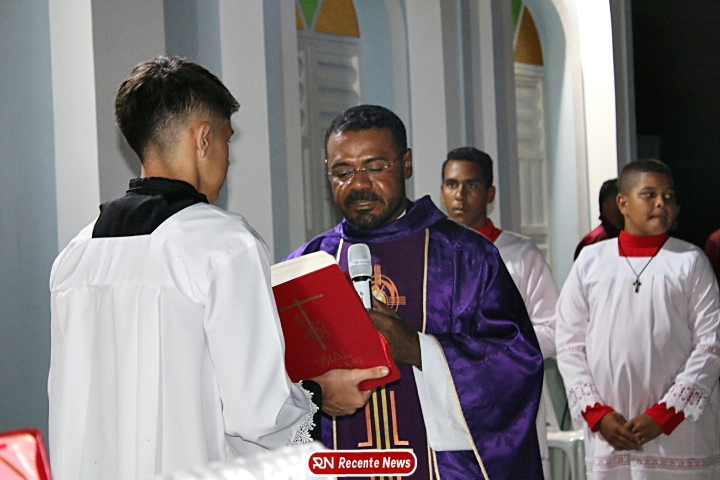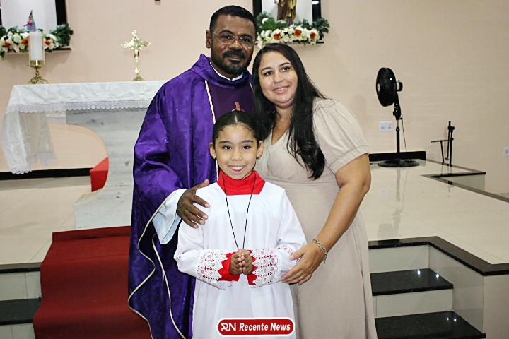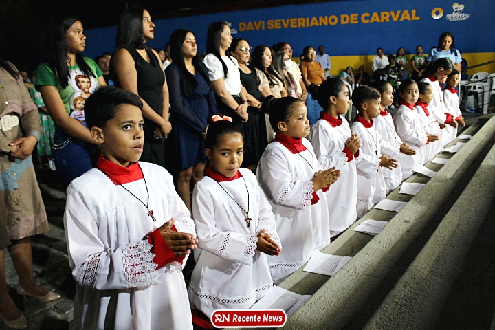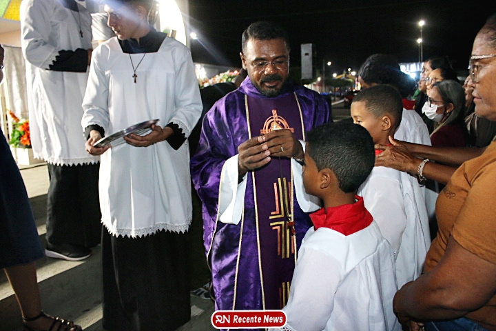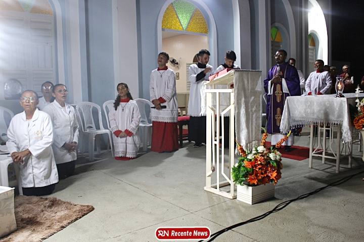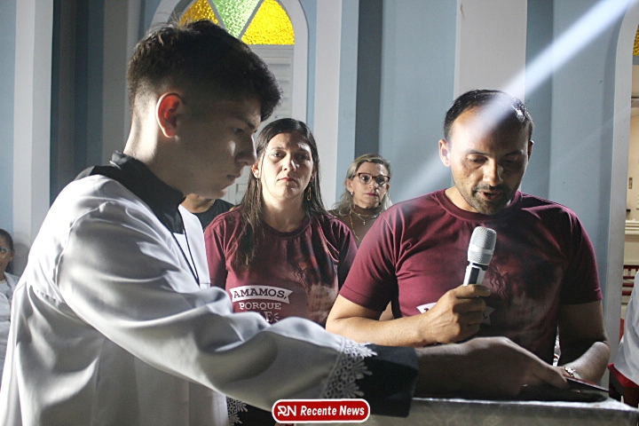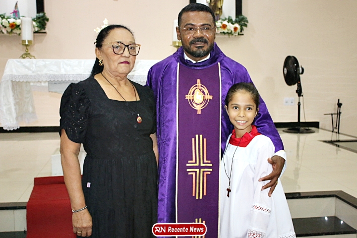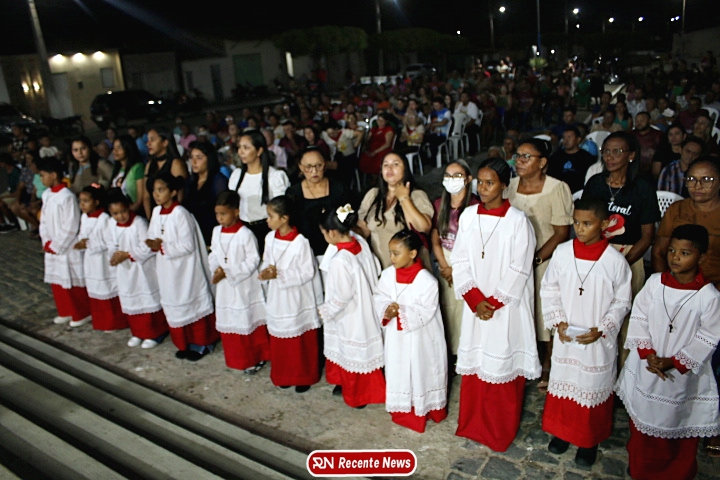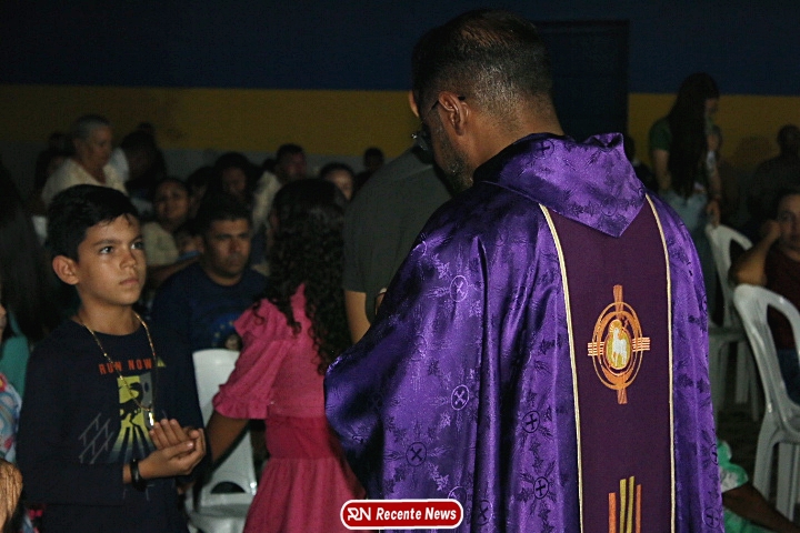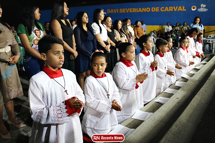 Um dos momentos mais especiais da celebração foi a investidura dos novos coroinhas, que receberam suas vestes e foram apresentados à comunidade. A cerimônia emocionou pais, familiares e os próprios jovens, que agora passam a exercer o serviço litúrgico com dedicação e responsabilidade dentro da igreja.