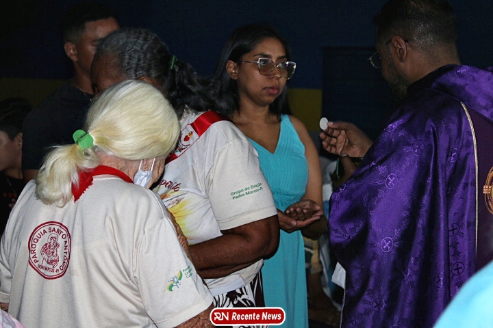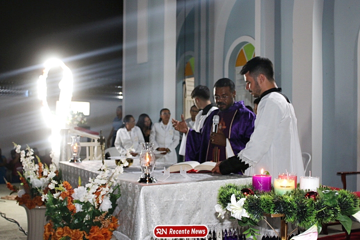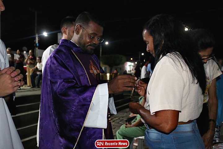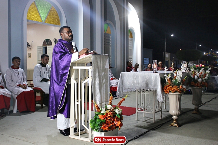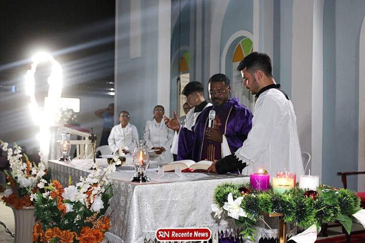 A missa da noite foi presidida pelo padre Marcos Roberto, que conduziu a celebração com mensagens de esperança, união e reflexão espiritual. Em sua homilia, o sacerdote destacou o valor da devoção mariana e o compromisso da comunidade em manter viva a tradição religiosa que há anos fortalece os laços sociais e espirituais do povoado.