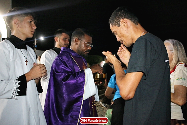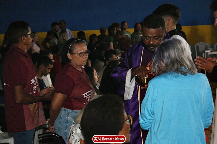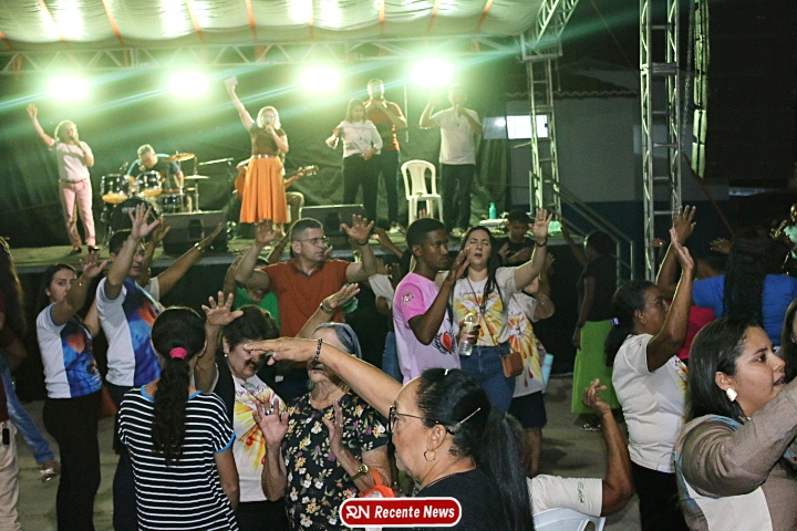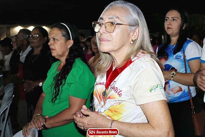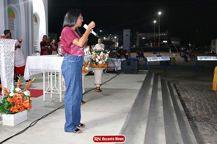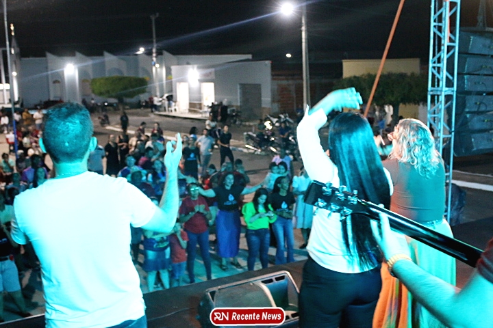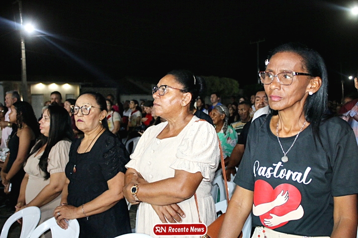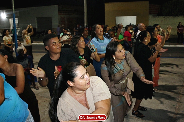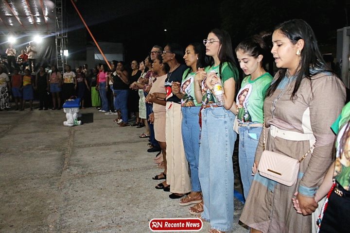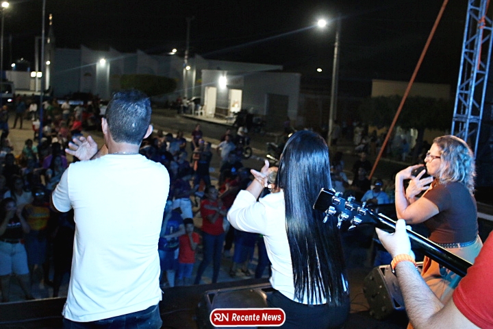 Após a missa, a noite seguiu com grande participação popular durante o show católico da Banda Águas Vivas, da cidade de Picos, ligada ao movimento da Renovação Carismática Católica (RCC). As canções de louvor e adoração criaram um ambiente de espiritualidade e alegria, levando muitos fiéis a cantar e elevar suas preces.