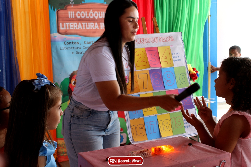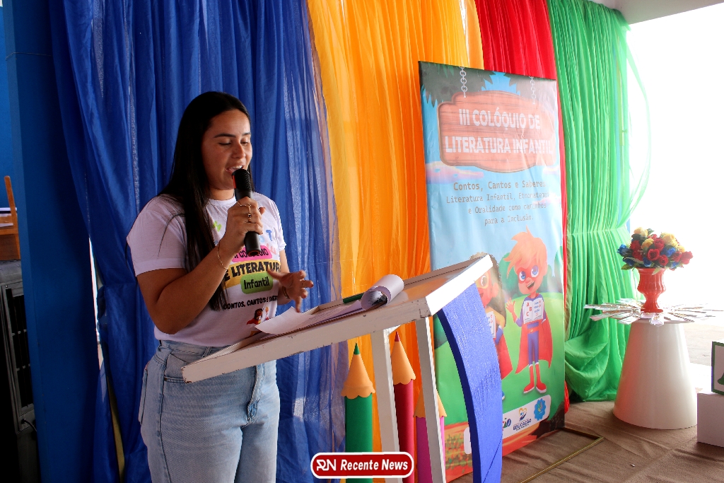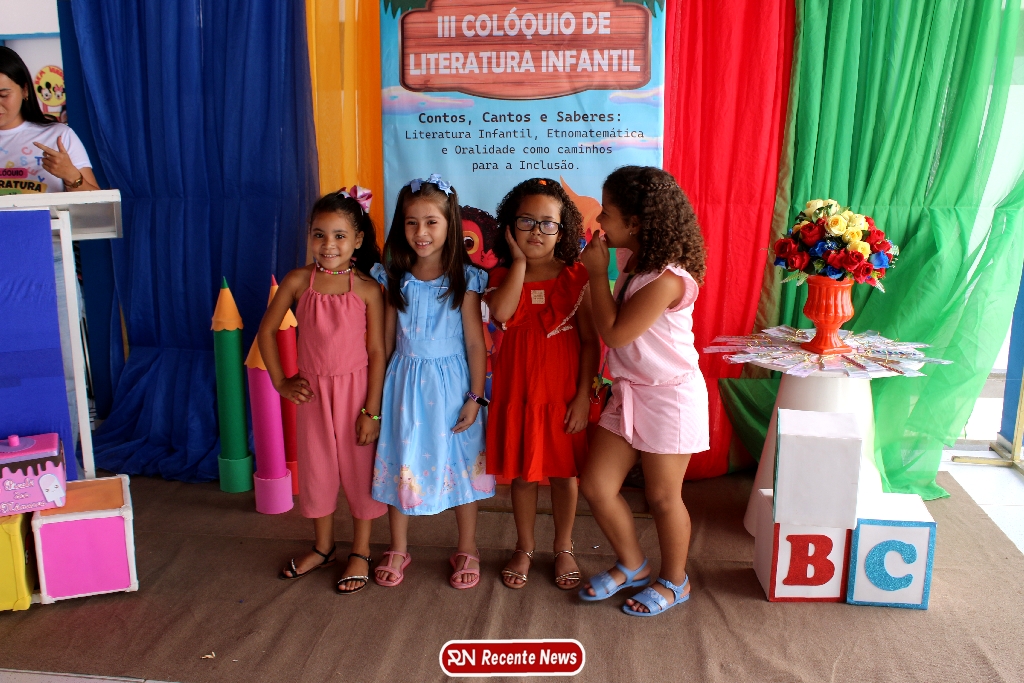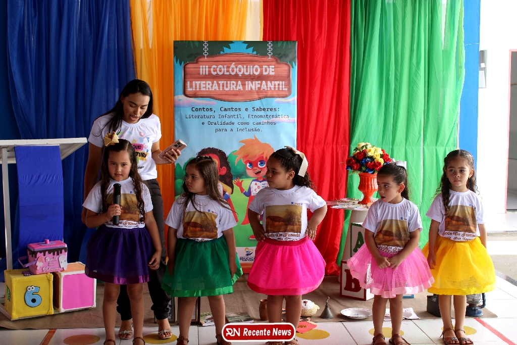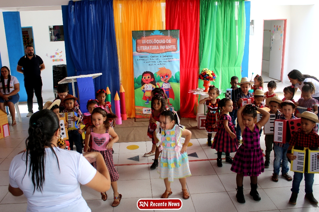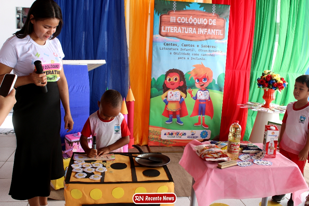 Na manhã desta quinta-feira, 7 de novembro, as Pré-Escolas Tia Guida e Tia Marinor realizaram um verdadeiro espetáculo de imaginação e aprendizado durante a exposição do III Colóquio de Literatura Infantil: Contos, Canto e Saberes, em parceria com a Secretaria Municipal de Educação. O evento aconteceu na sede da Pré-Escola Tia Guida e reuniu professores, alunos, pais e comunidade em um ambiente acolhedor e cheio de encantamento.
