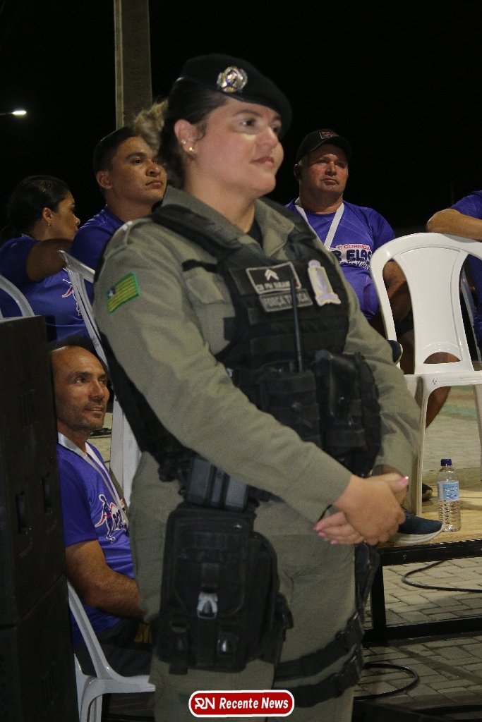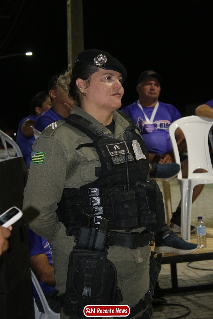 Diversas autoridades municipais e representantes da segurança pública marcaram presença no evento. Entre elas, a cabo Sueane, da Patrulha Maria da Penha, e o tenente Alexandre, que reforçaram a importância da rede de proteção às mulheres.