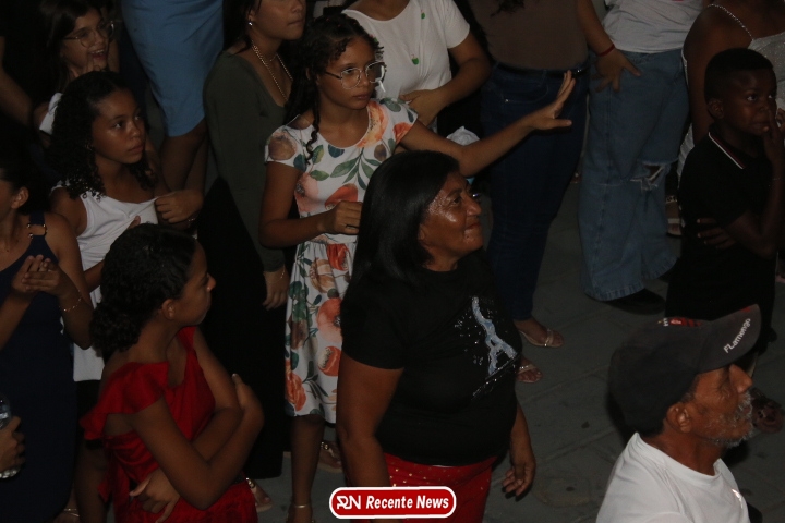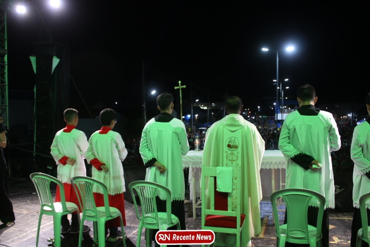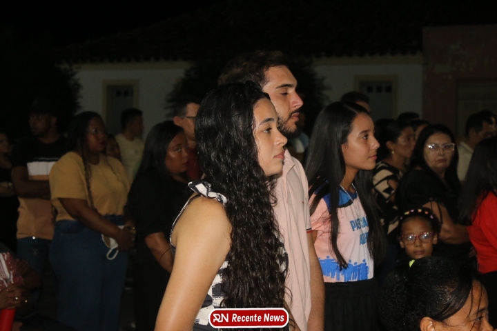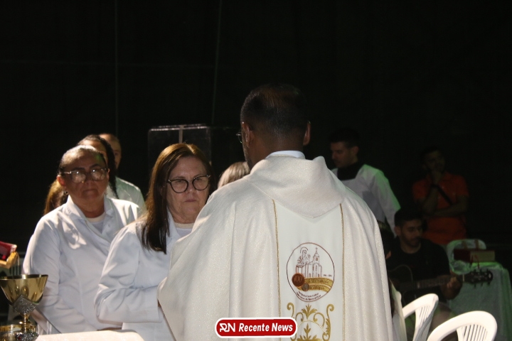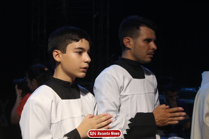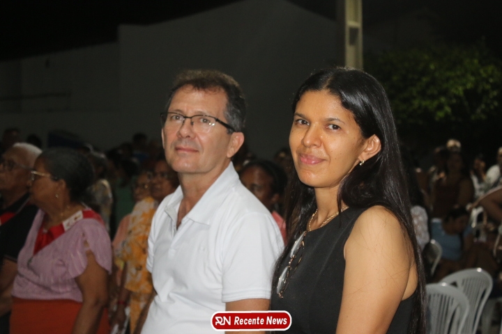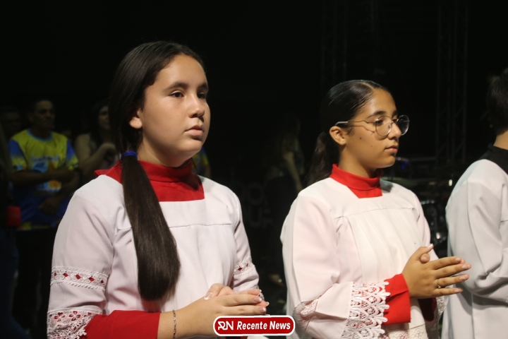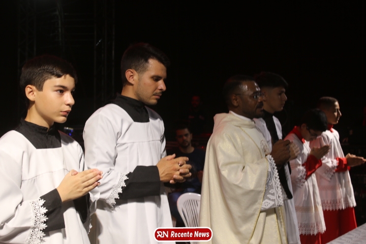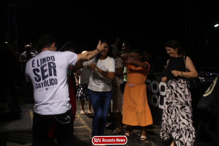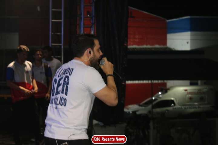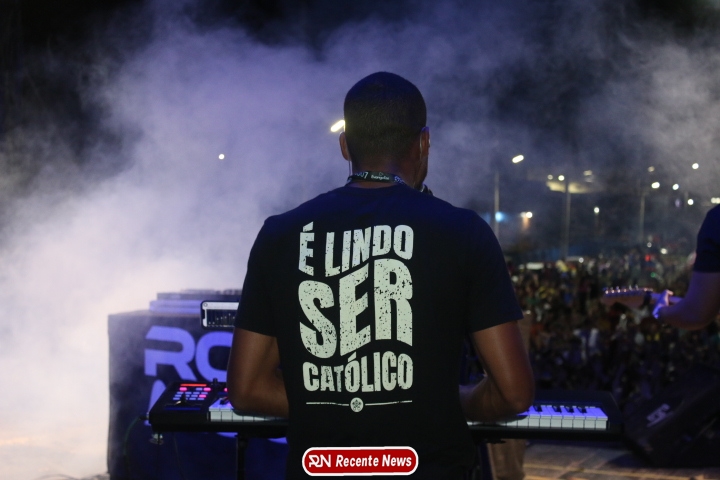 Após a celebração eucarística, a noite seguiu com um *show católico do artista Roony (Ronnie) Moura, de Recife*, que levou música, louvor e mensagens de esperança ao público presente, encerrando a programação com alegria e espiritualidade.