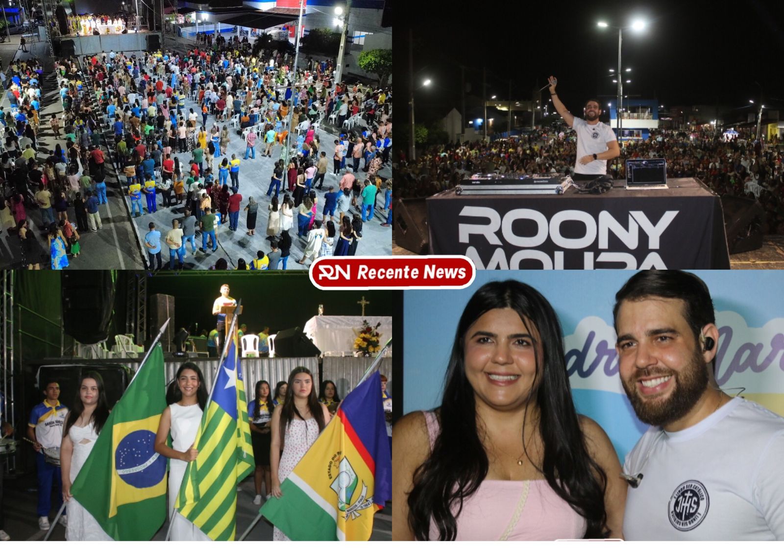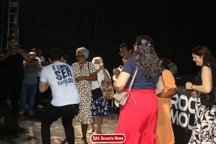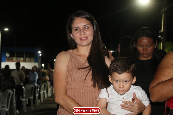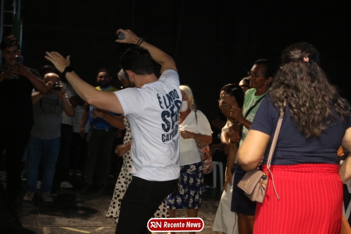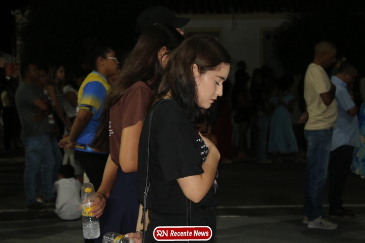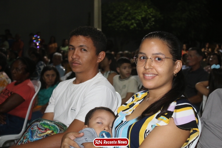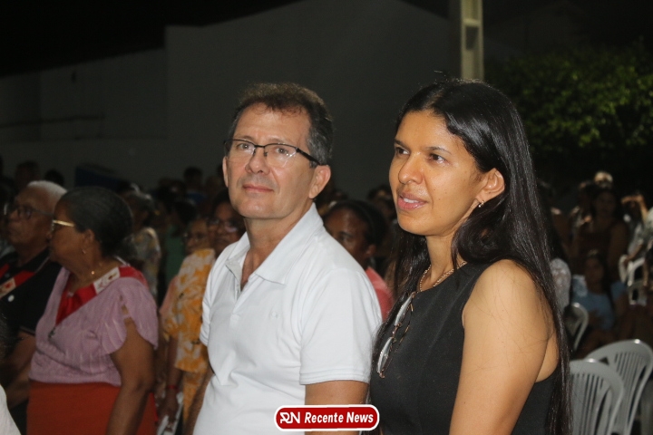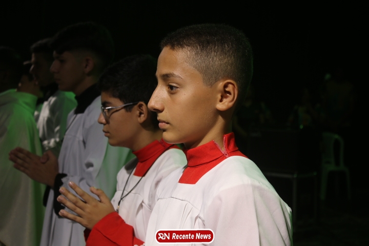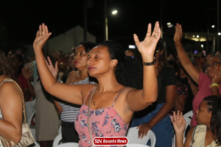 Após a celebração eucarística, a noite seguiu com um *show católico do artista Roony (Ronnie) Moura, de Recife*, que levou música, louvor e mensagens de esperança ao público presente, encerrando a programação com alegria e espiritualidade.