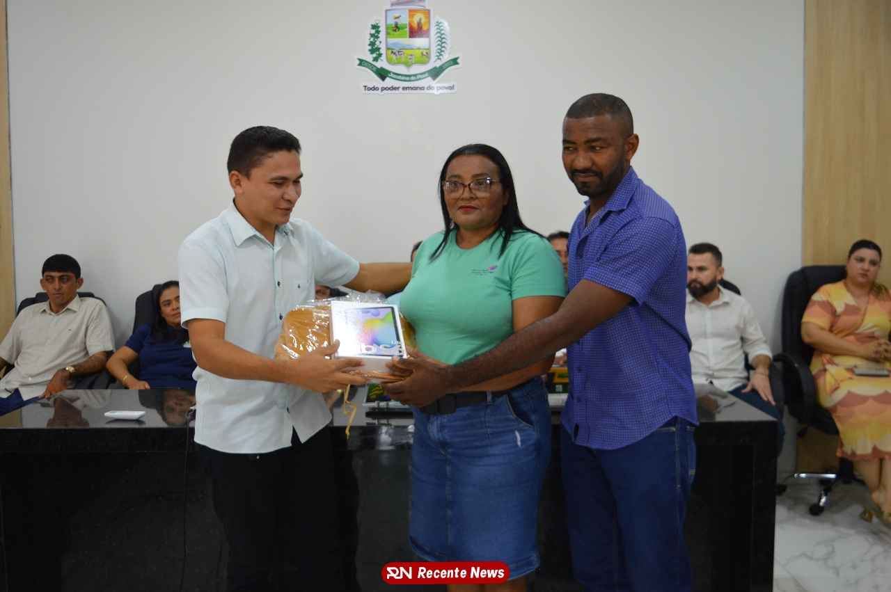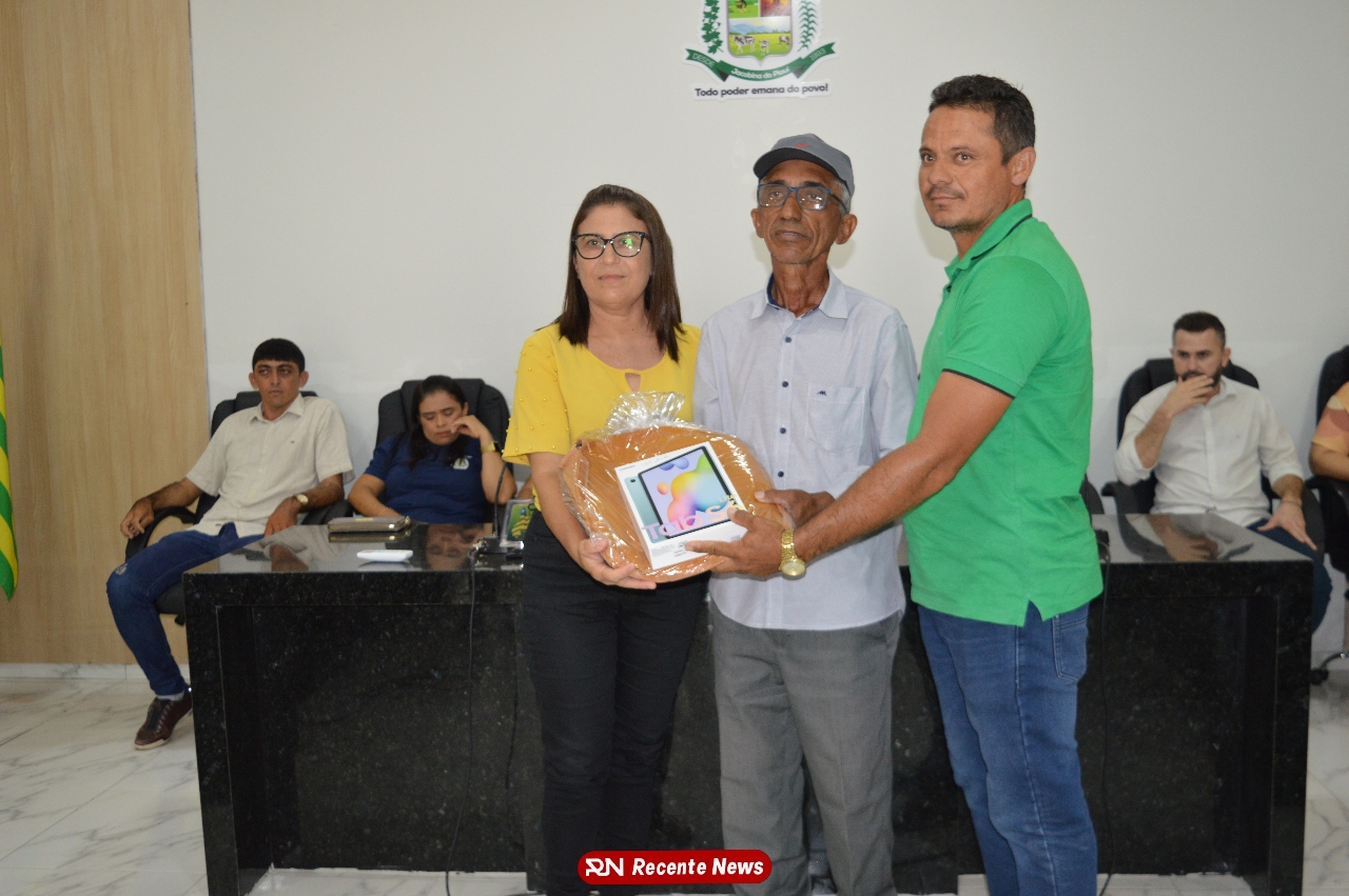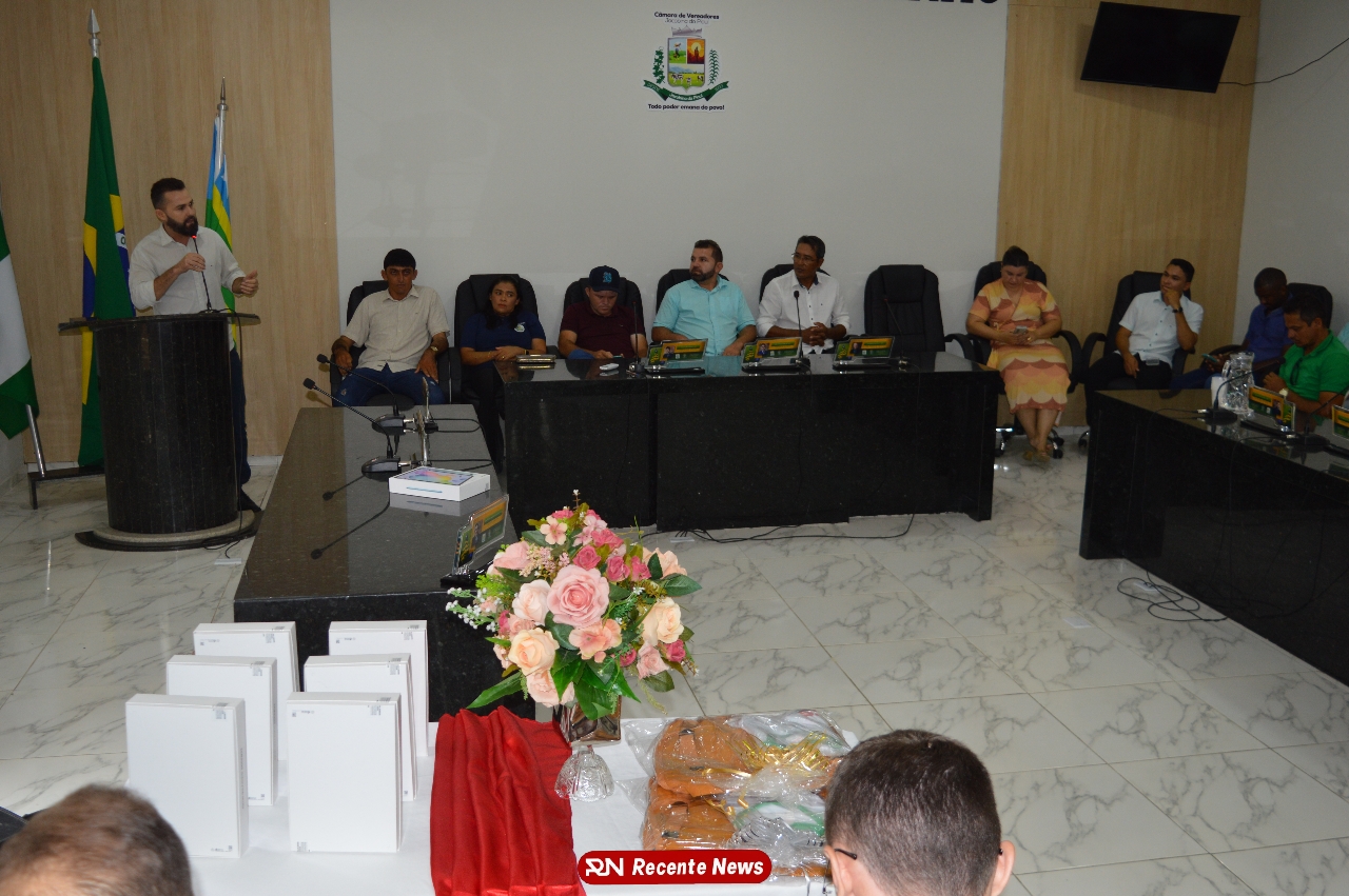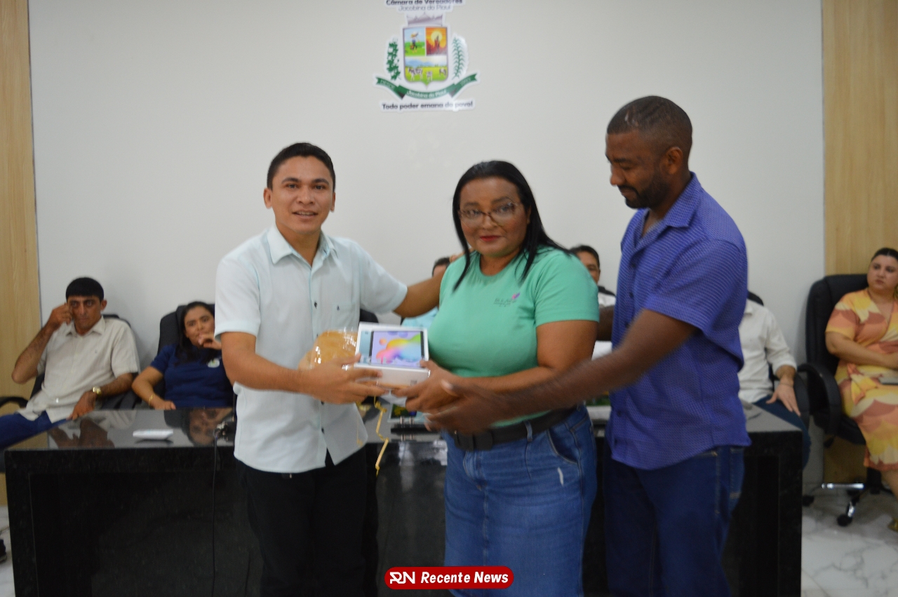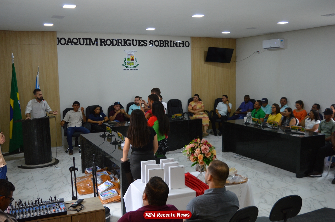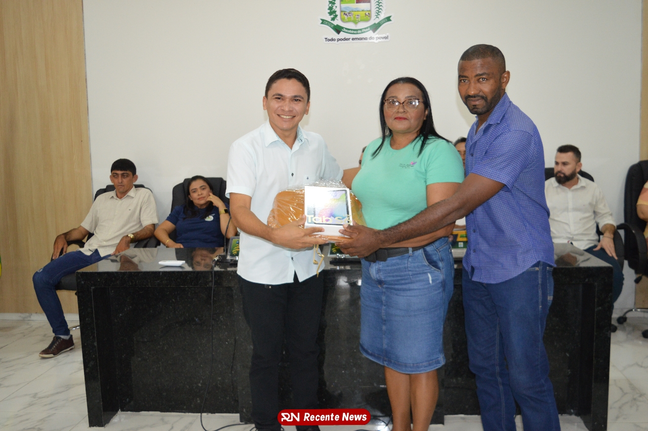 O Prefeito Gd de Jacobina do Piauí, realiza solenidade na Câmara de Vereadores,com entrega de kits informáticos para Agentes comunitários de saúde.