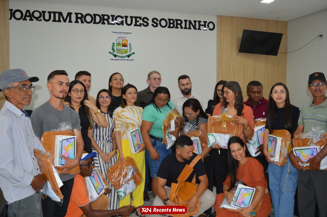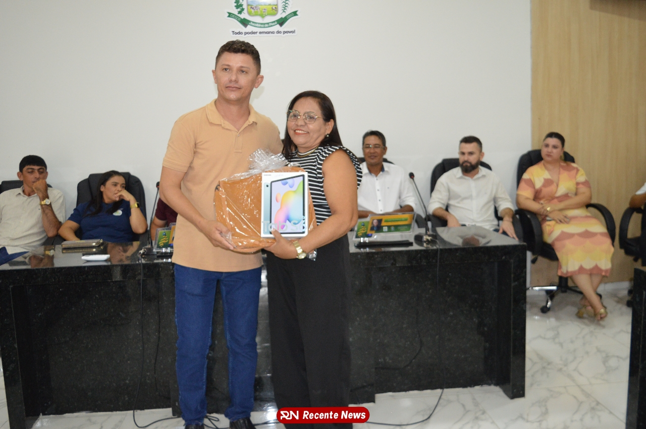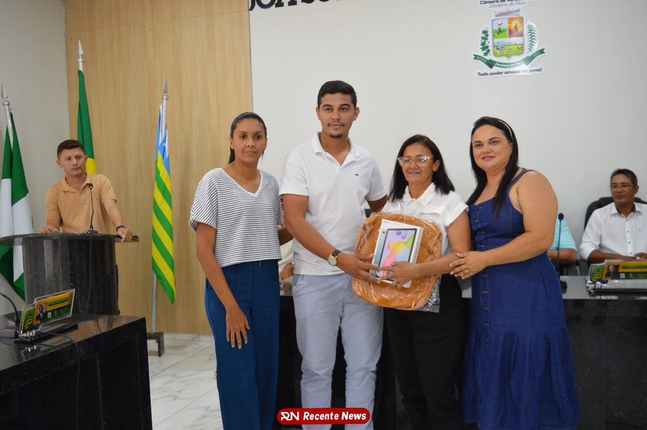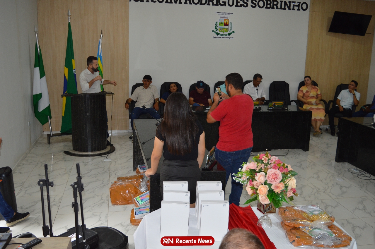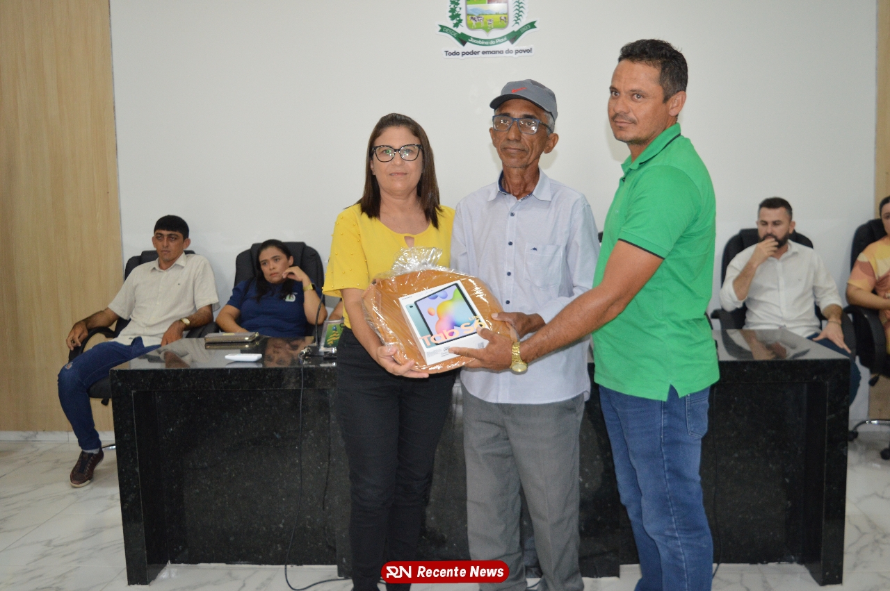 O Prefeito Gd de Jacobina do Piauí, realiza solenidade na Câmara de Vereadores,com entrega de kits informáticos para Agentes comunitários de saúde.