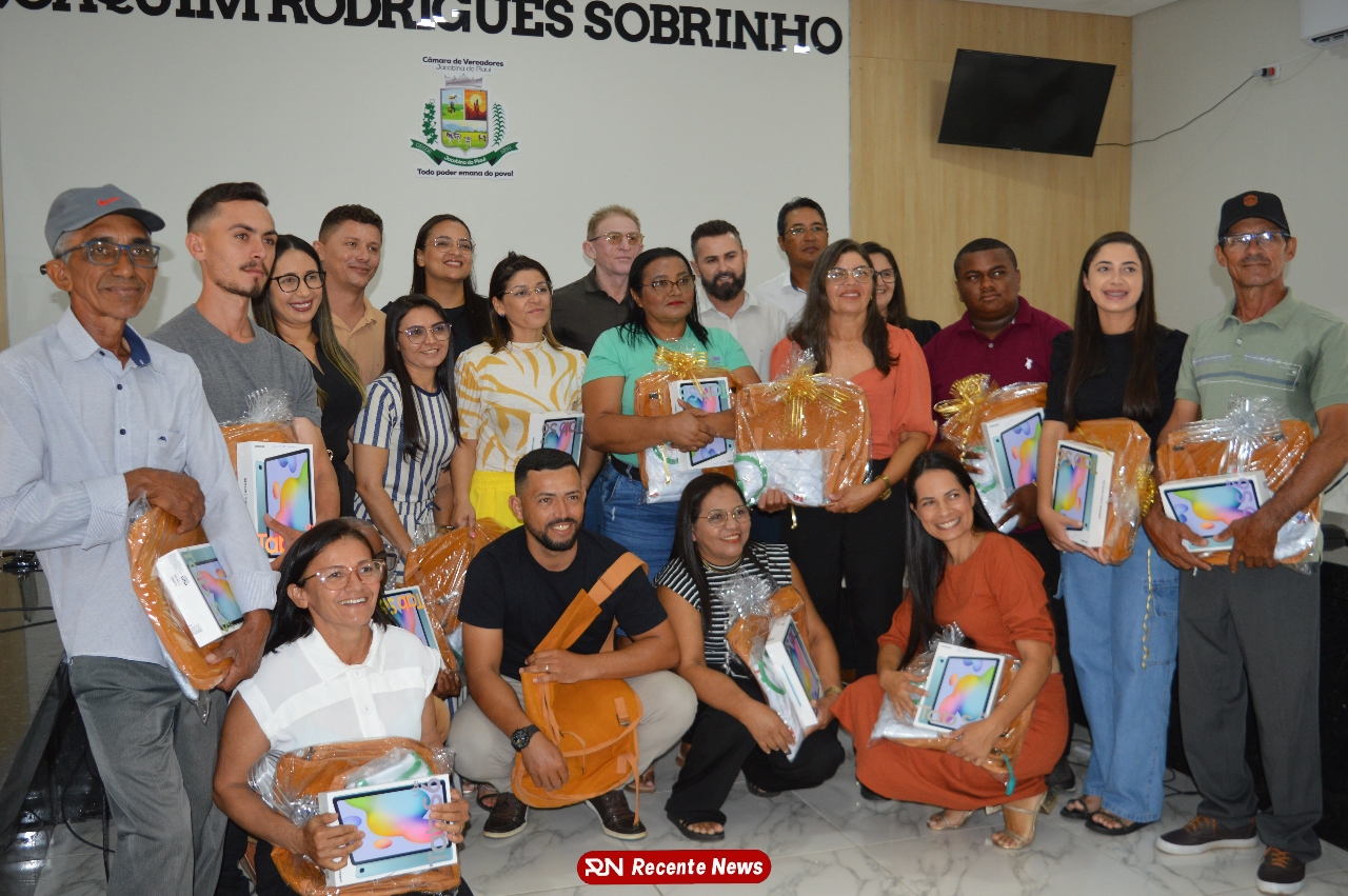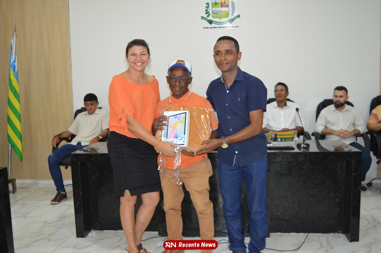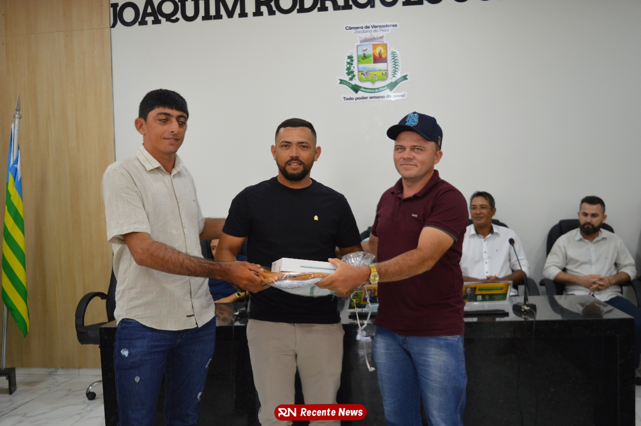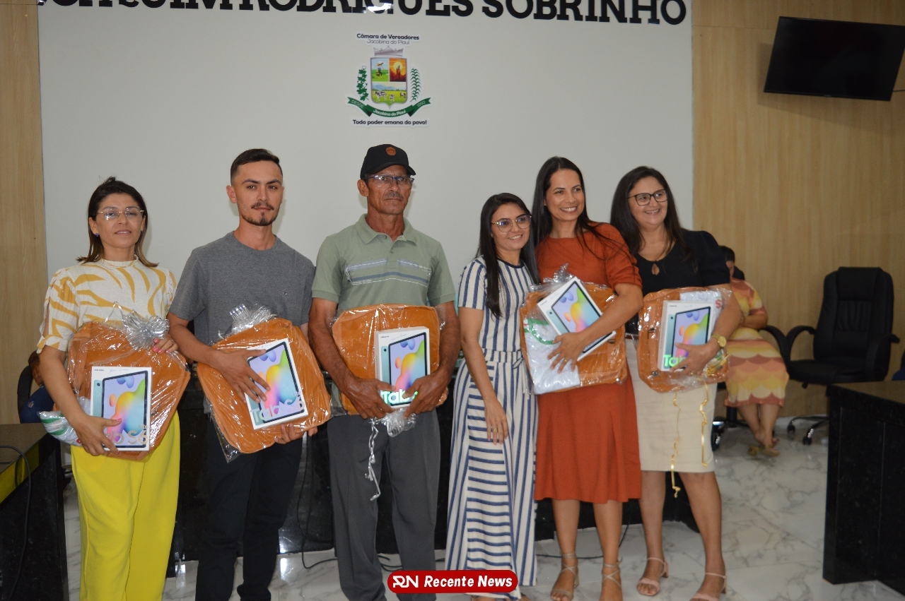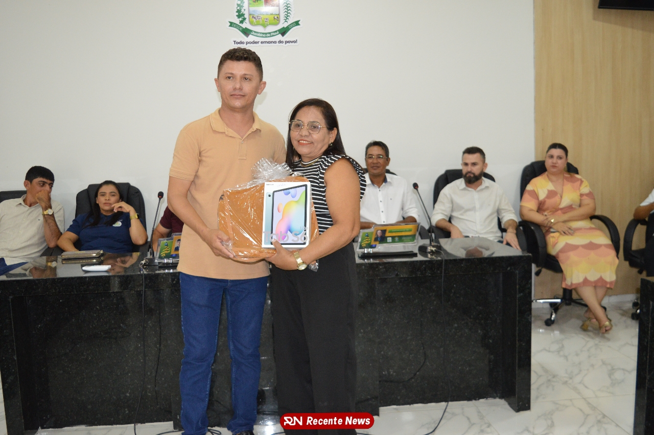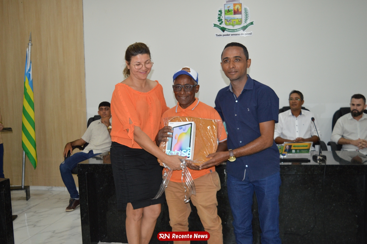 O Prefeito Gd de Jacobina do Piauí, realiza solenidade na Câmara de Vereadores,com entrega de kits informáticos para Agentes comunitários de saúde.