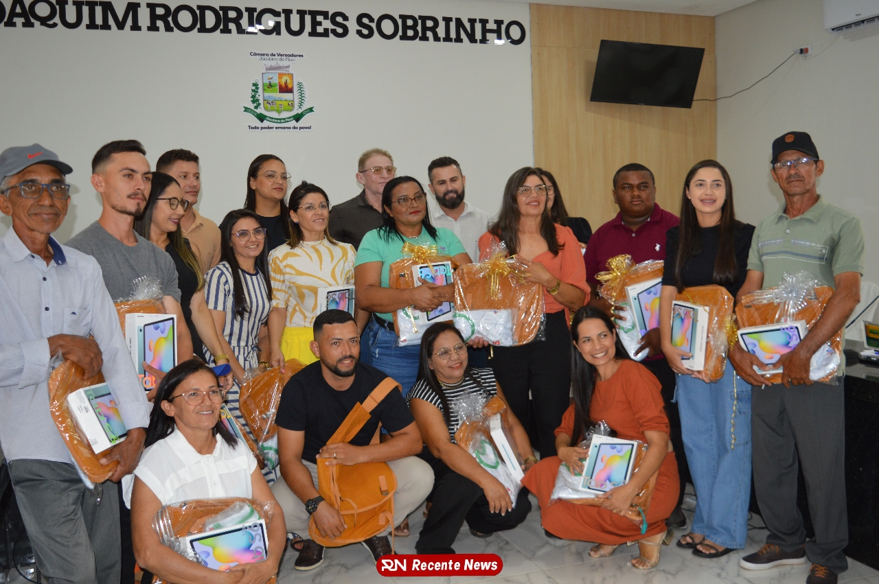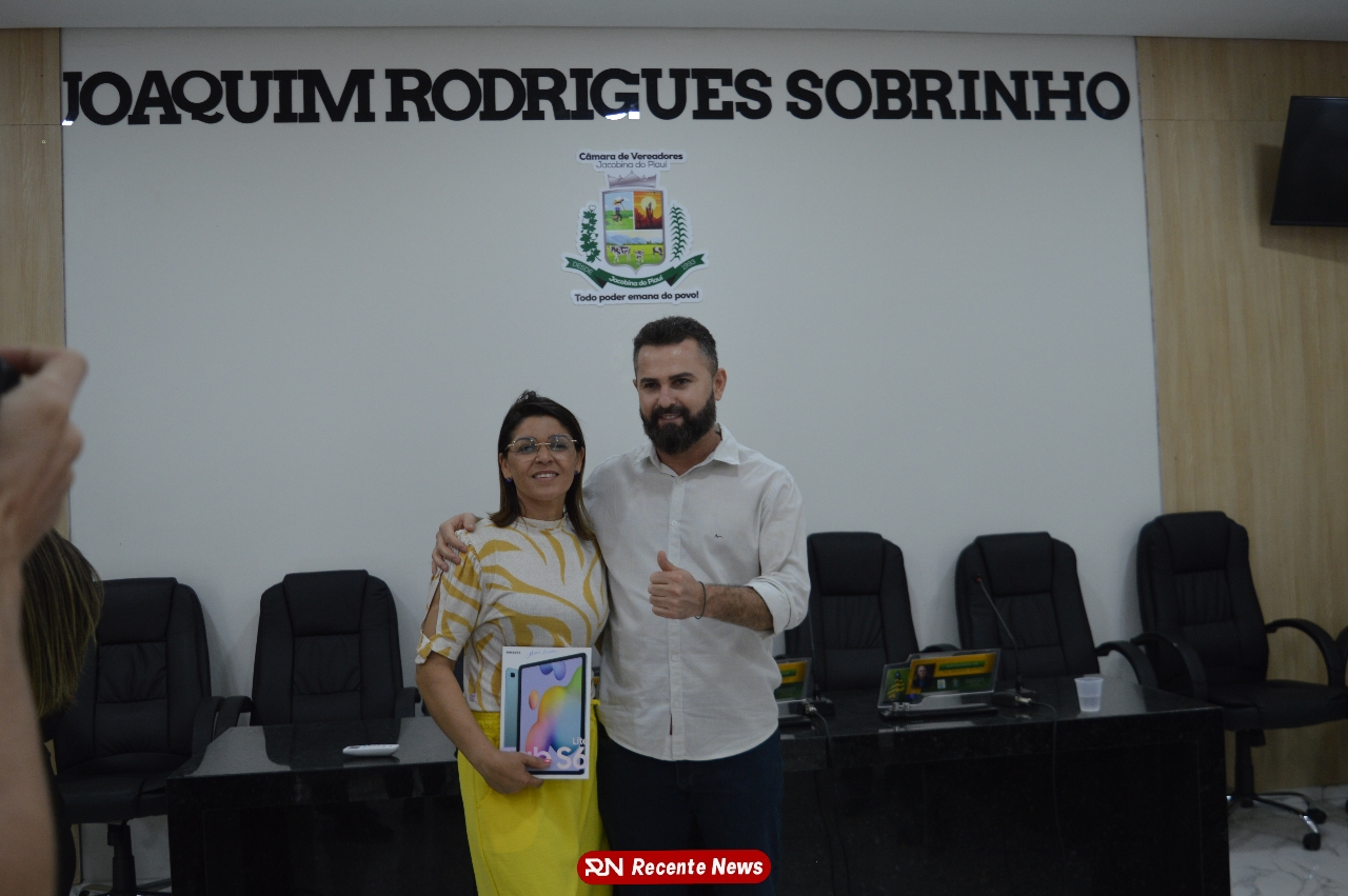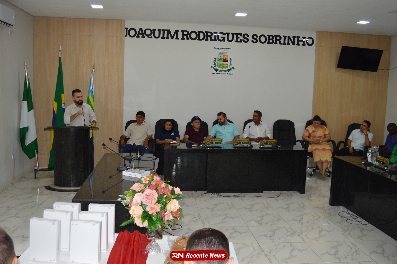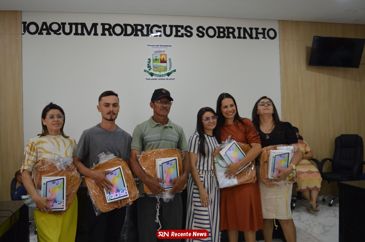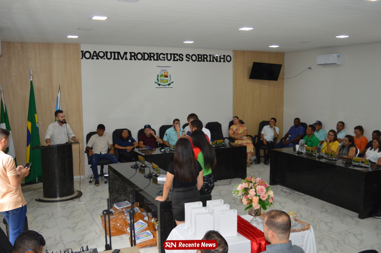 O Prefeito Gd de Jacobina do Piauí, realiza solenidade na Câmara de Vereadores,com entrega de kits informáticos para Agentes comunitários de saúde.