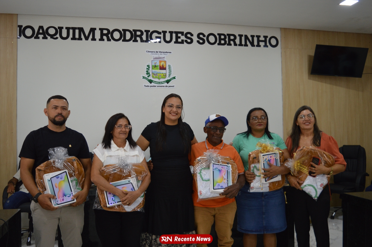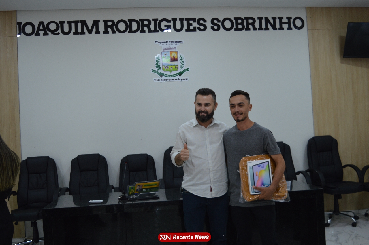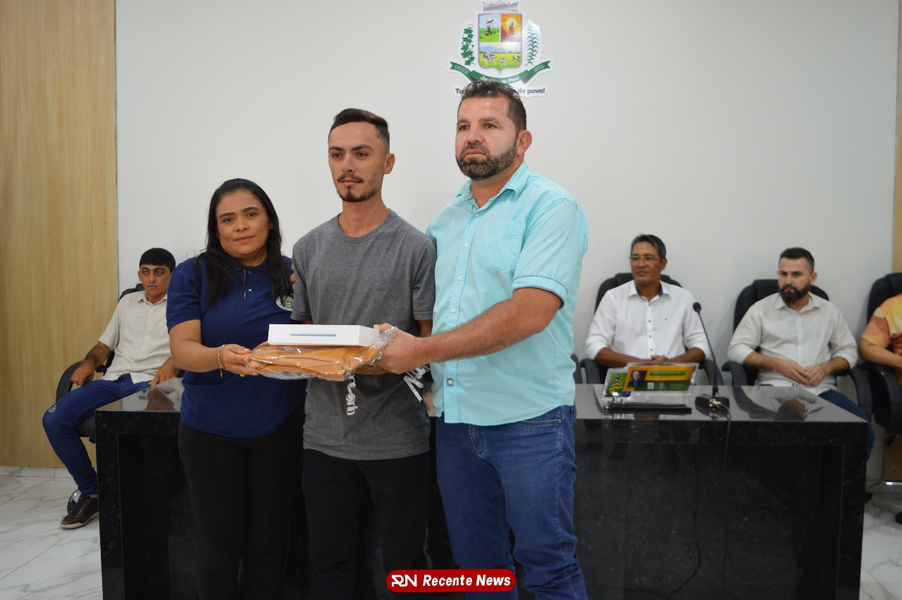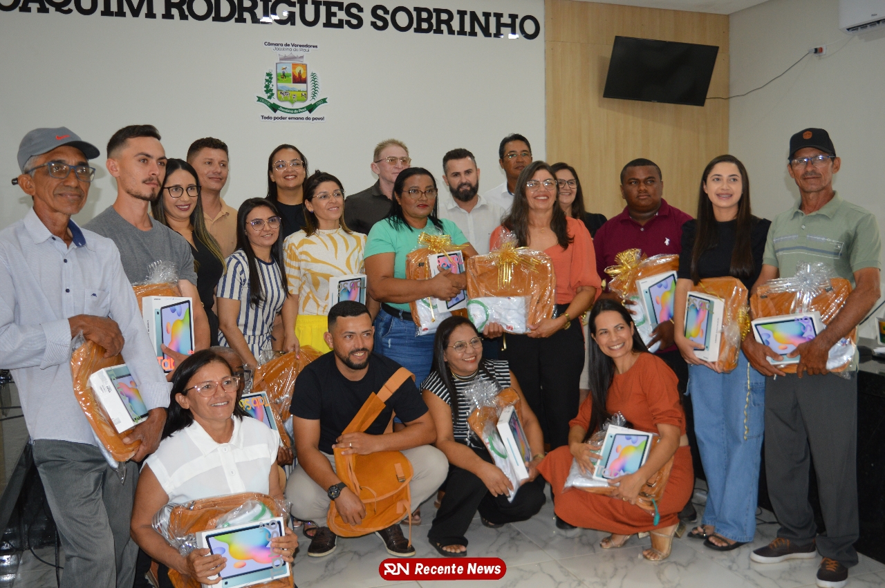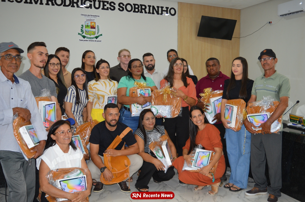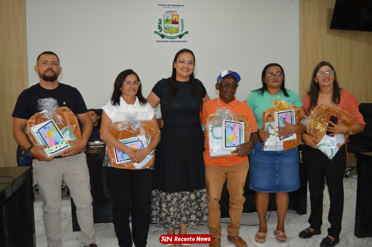 O Prefeito Gd de Jacobina do Piauí, realiza solenidade na Câmara de Vereadores,com entrega de kits informáticos para Agentes comunitários de saúde.