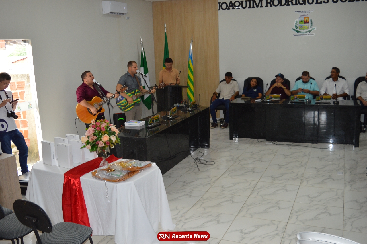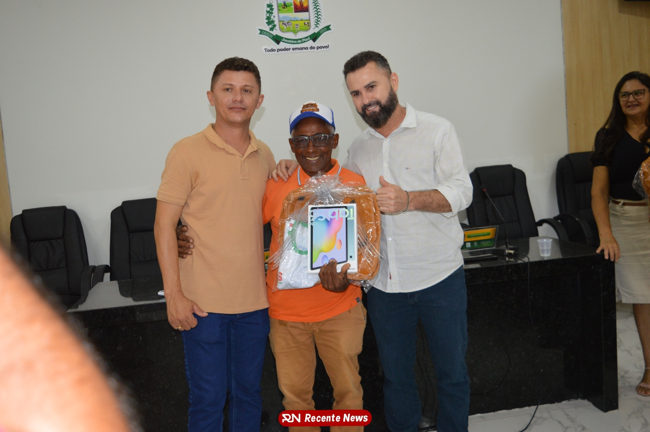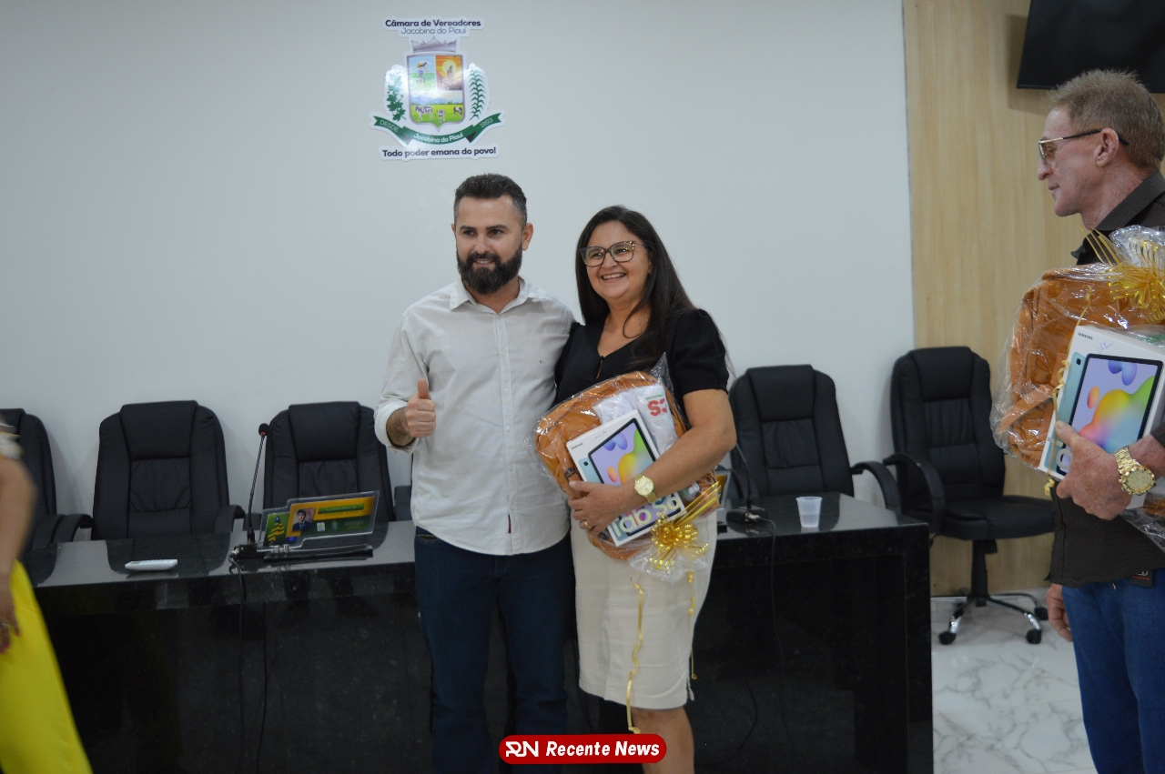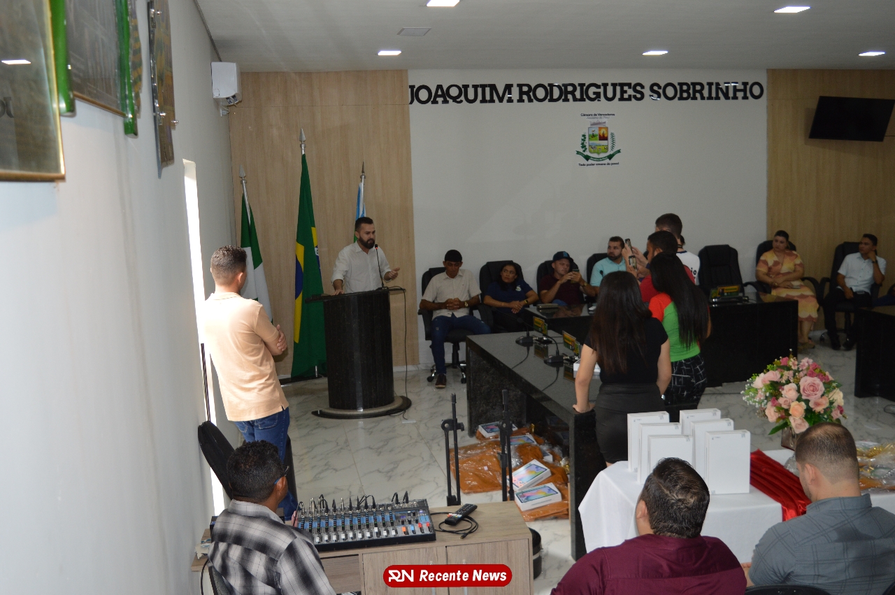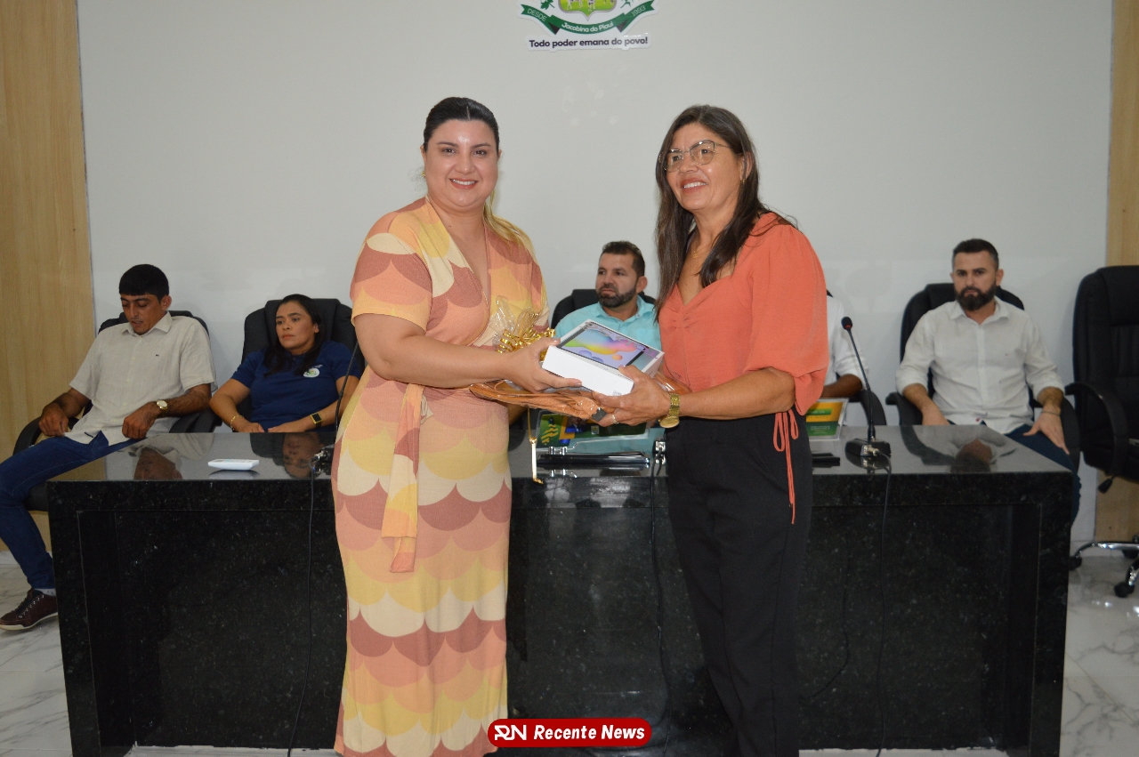 O Prefeito Gd de Jacobina do Piauí, realiza solenidade na Câmara de Vereadores,com entrega de kits informáticos para Agentes comunitários de saúde.