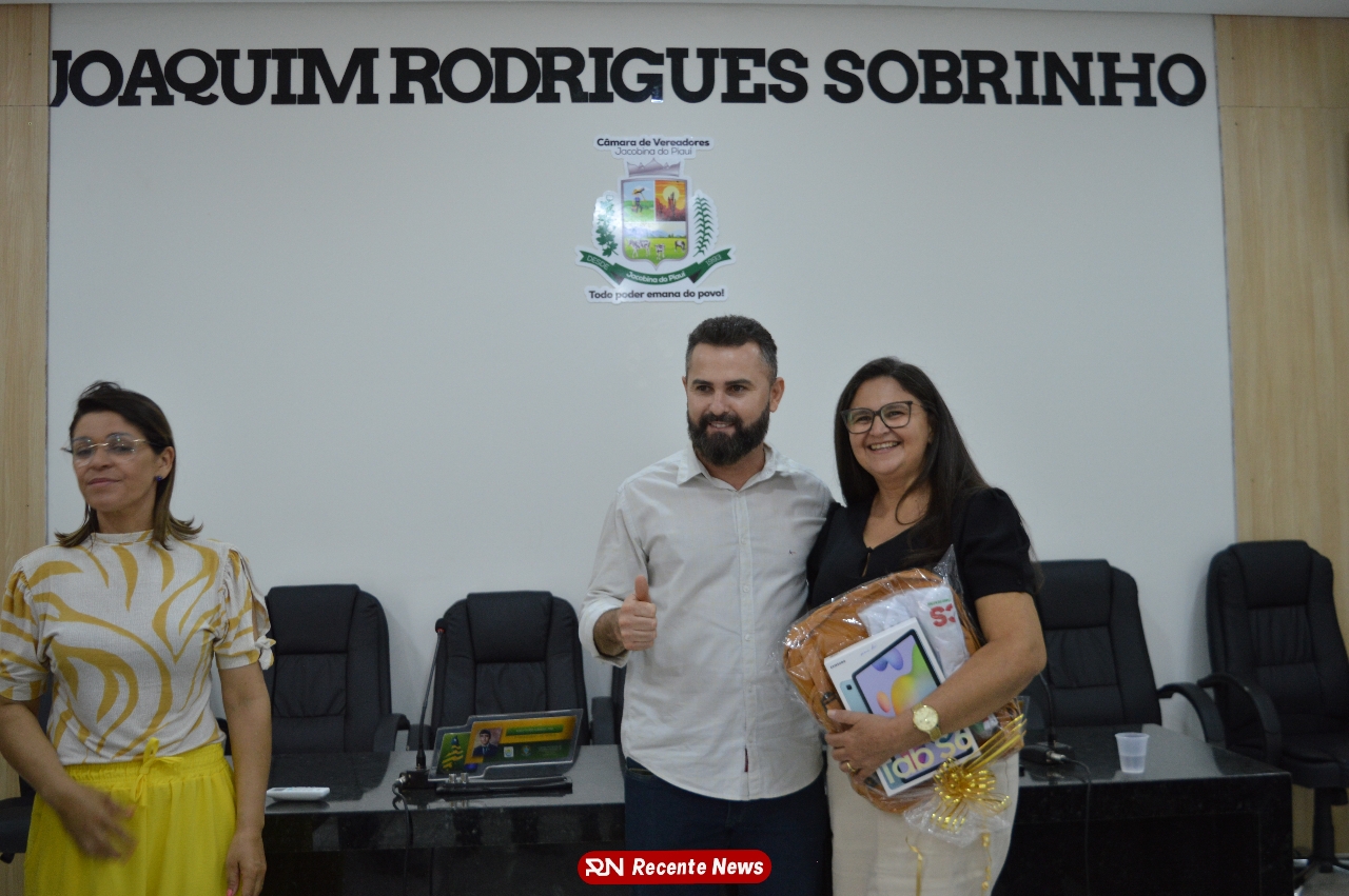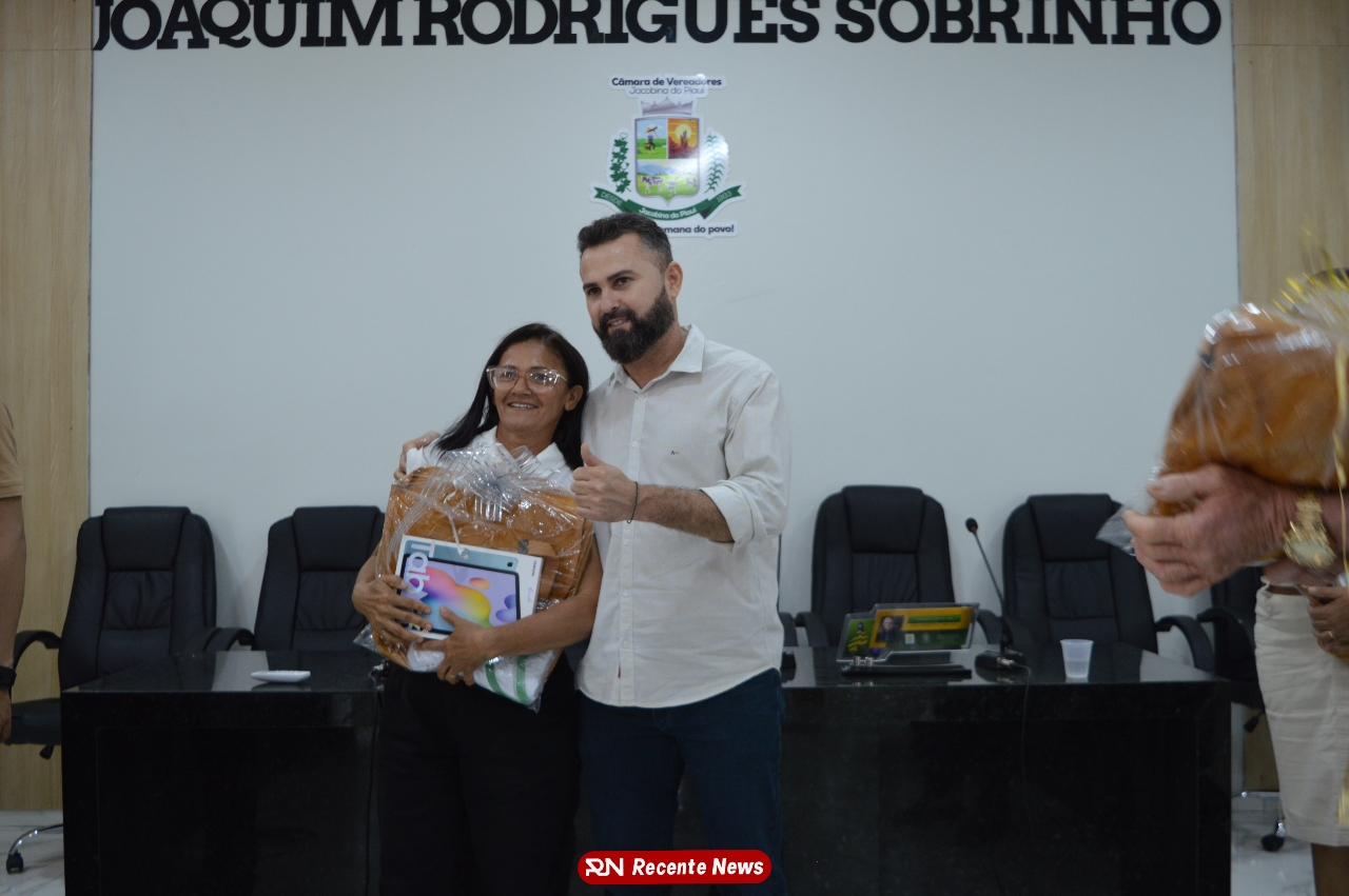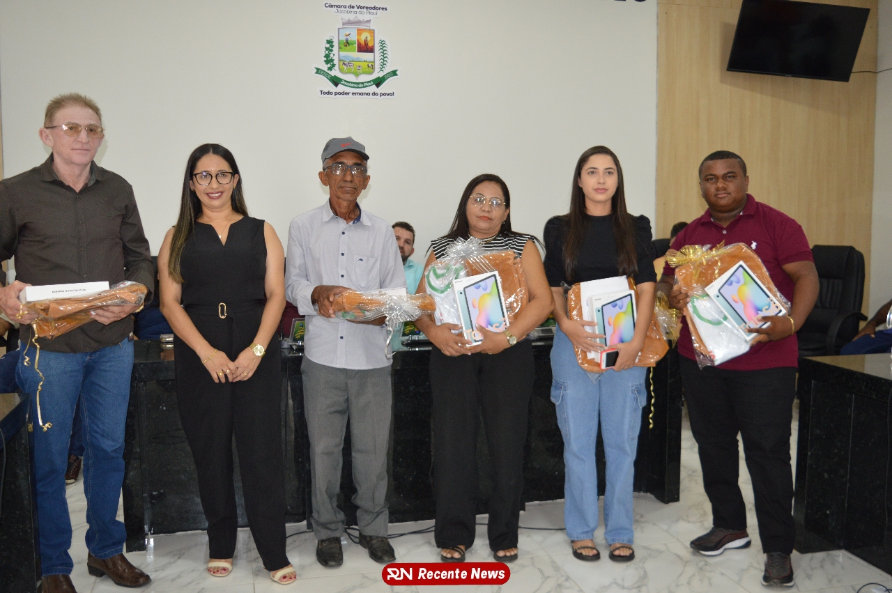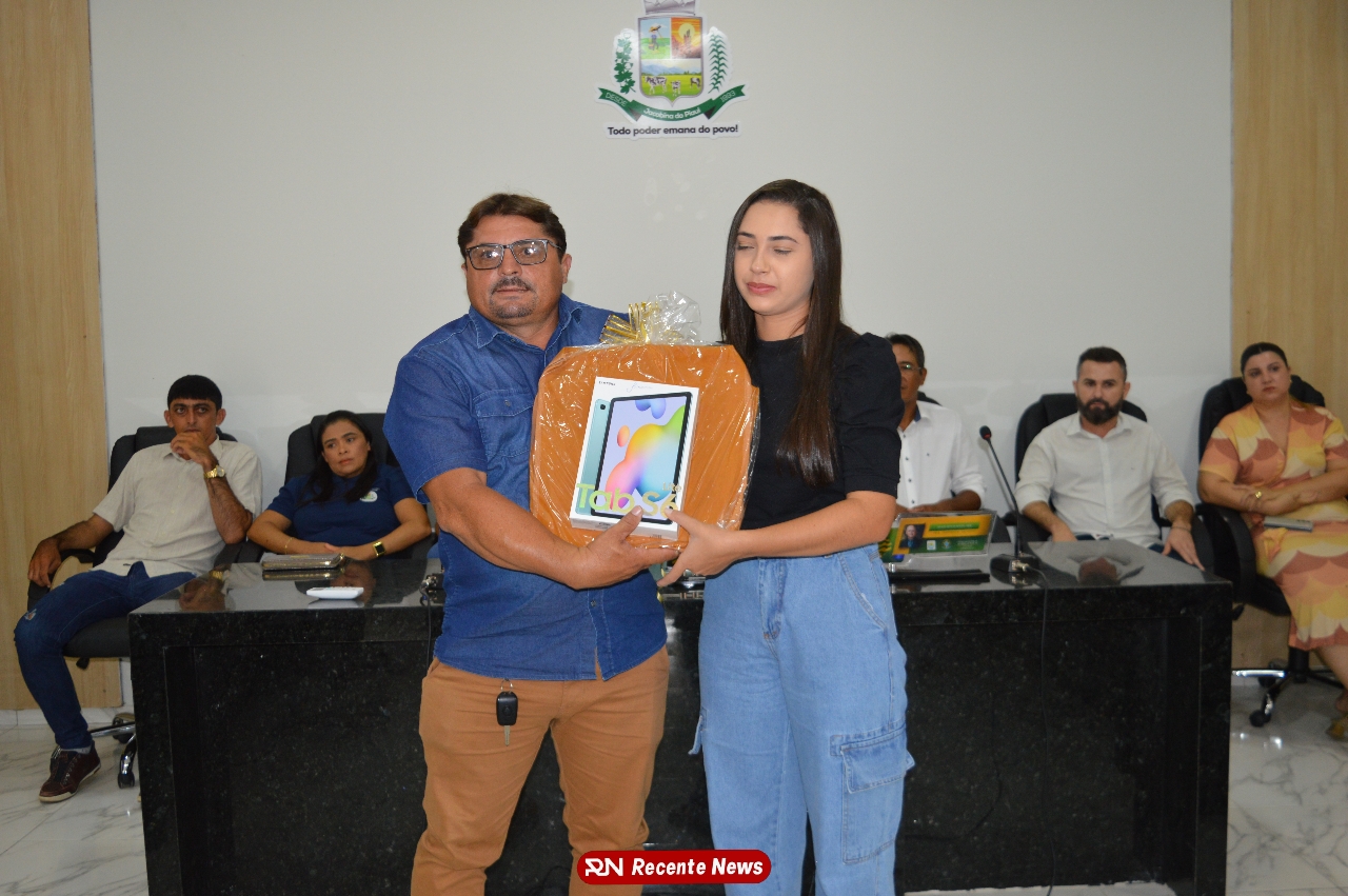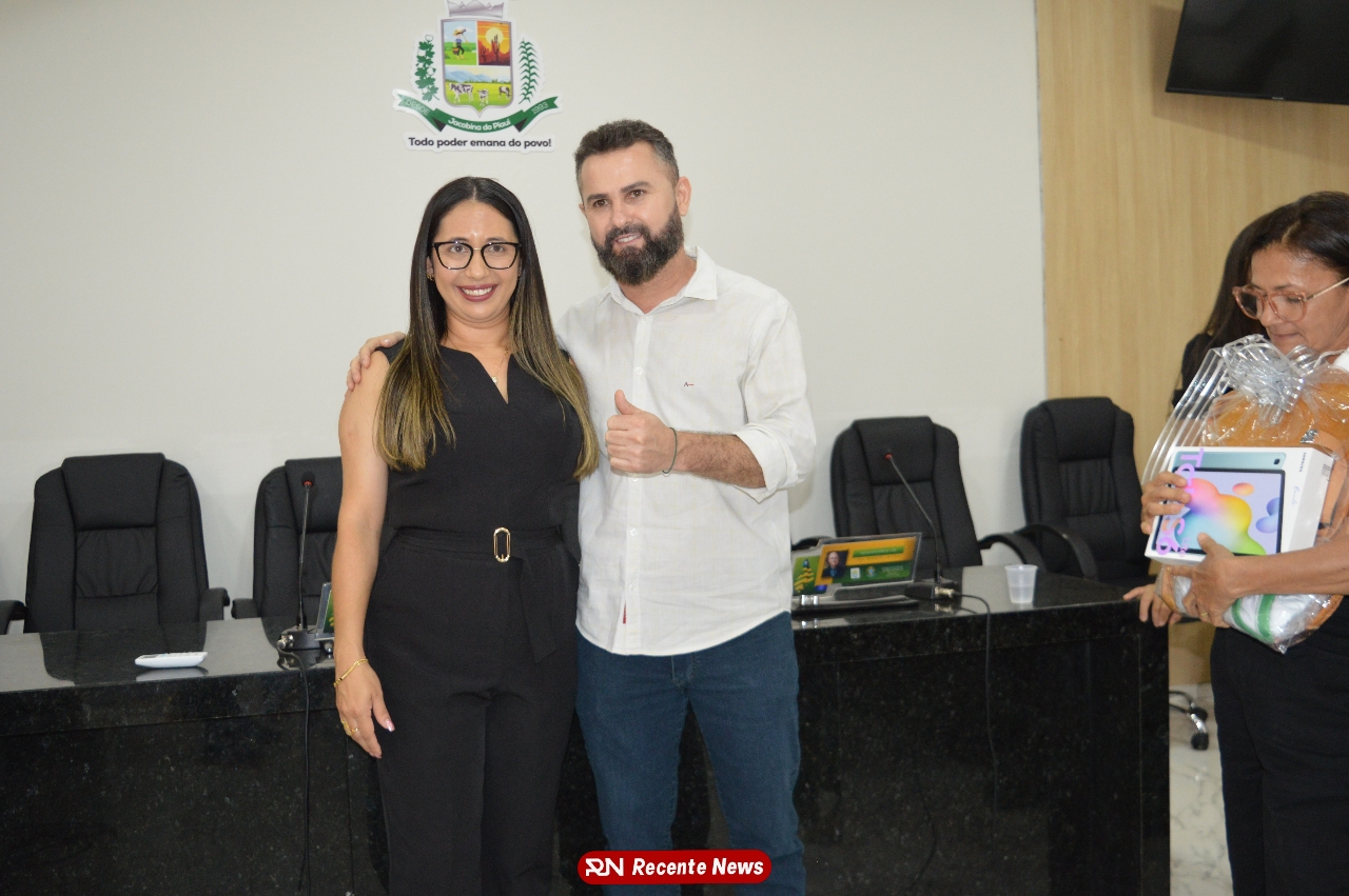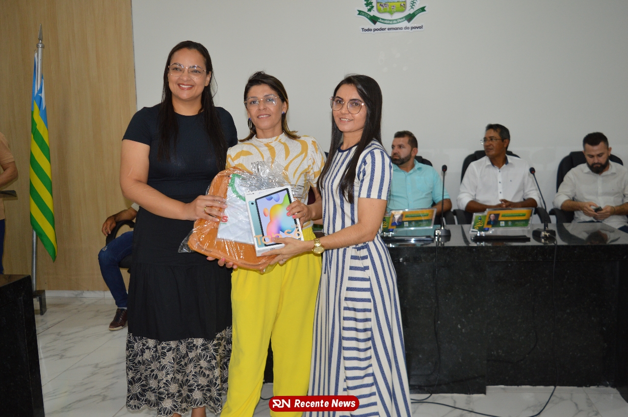 O Prefeito Gd de Jacobina do Piauí, realiza solenidade na Câmara de Vereadores,com entrega de kits informáticos para Agentes comunitários de saúde.