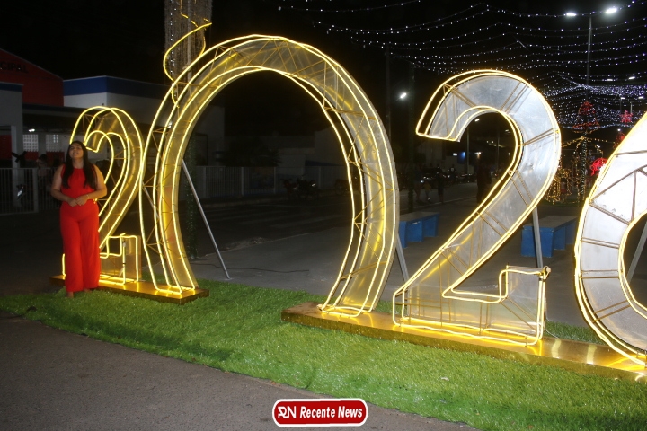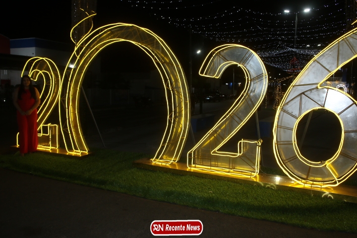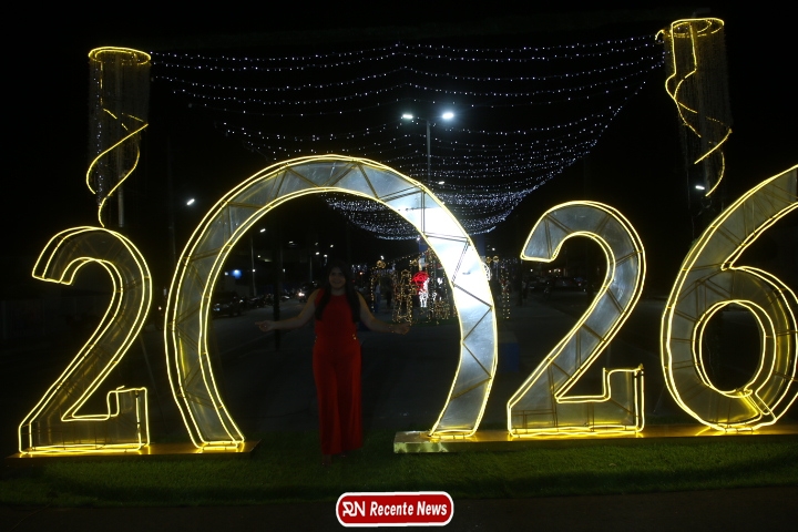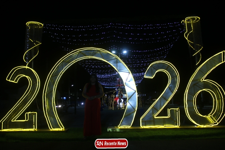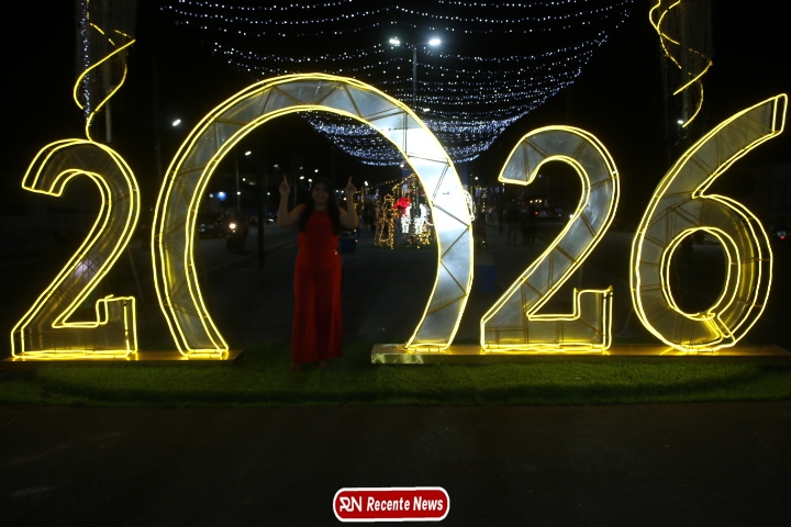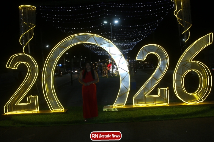 Um dos pontos mais fotografados da noite foi o grande número “2026”, instalado como símbolo da chegada de um novo ano e de novos sonhos.