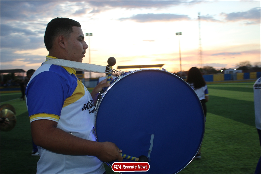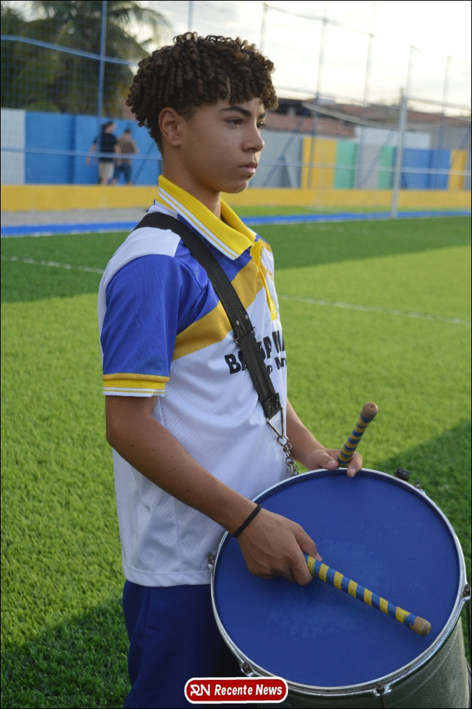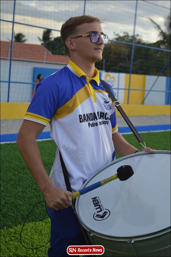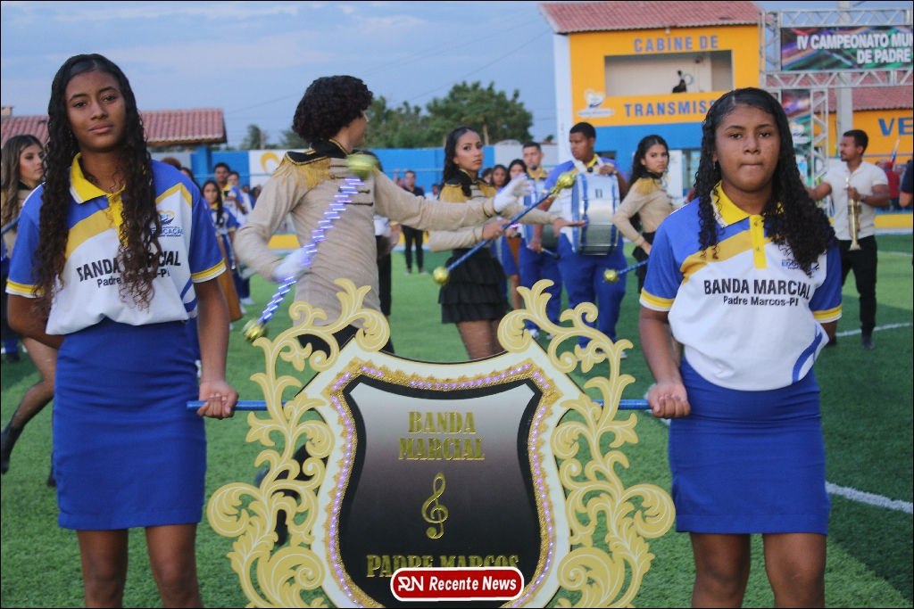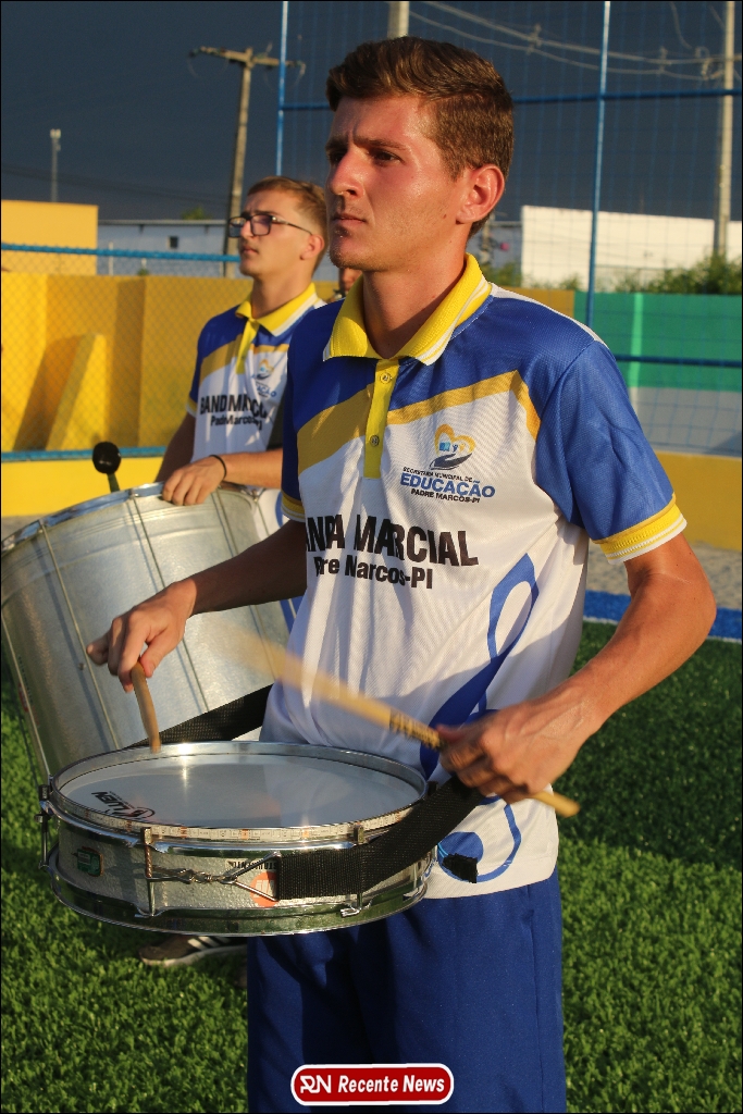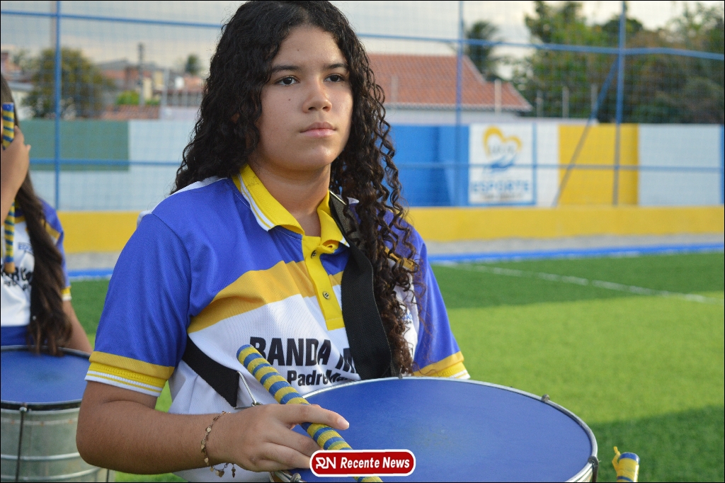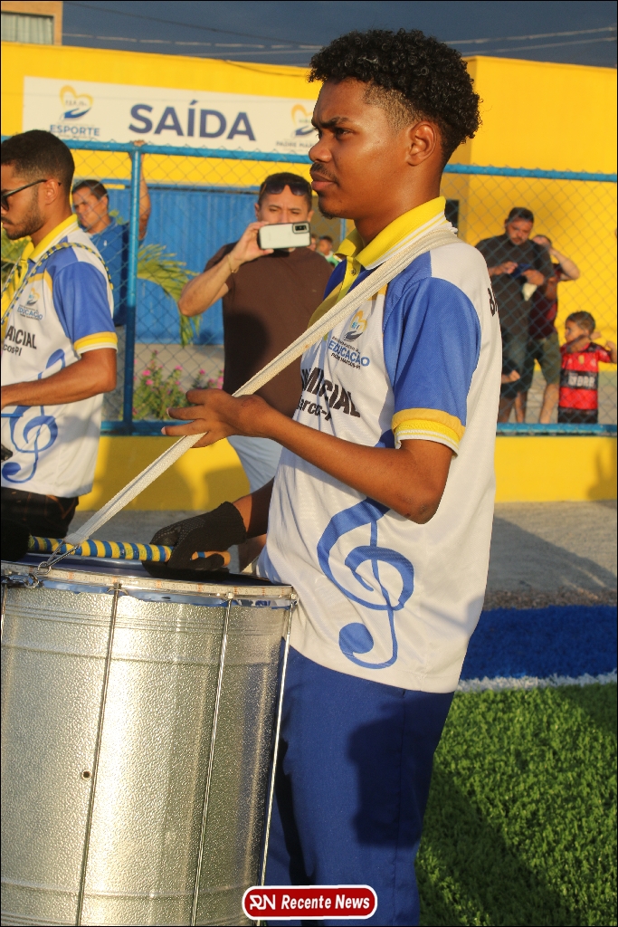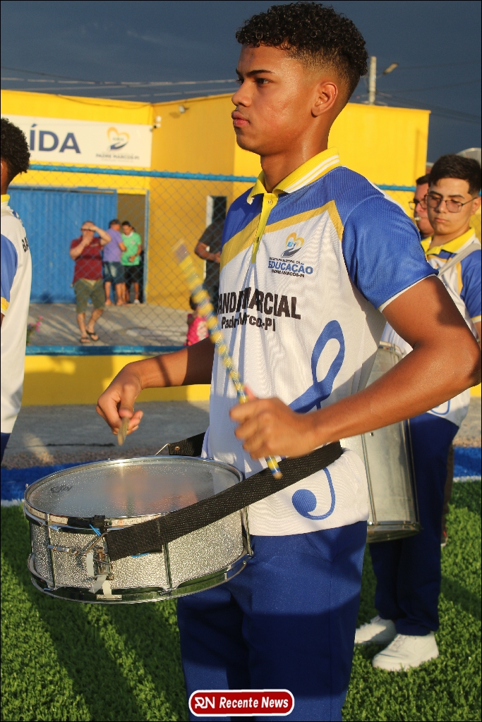 A abertura contou com um momento especial: a belíssima apresentação da Banda Marcial Padre Marcos (B.M.P.M), que encantou o público presente com um espetáculo musical vibrante. Sob a regência do maestro Vinícios Silva, a banda deu início à solenidade com uma performance impecável, marcando com ritmo e emoção o início de mais uma edição do campeonato.
