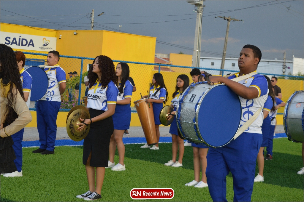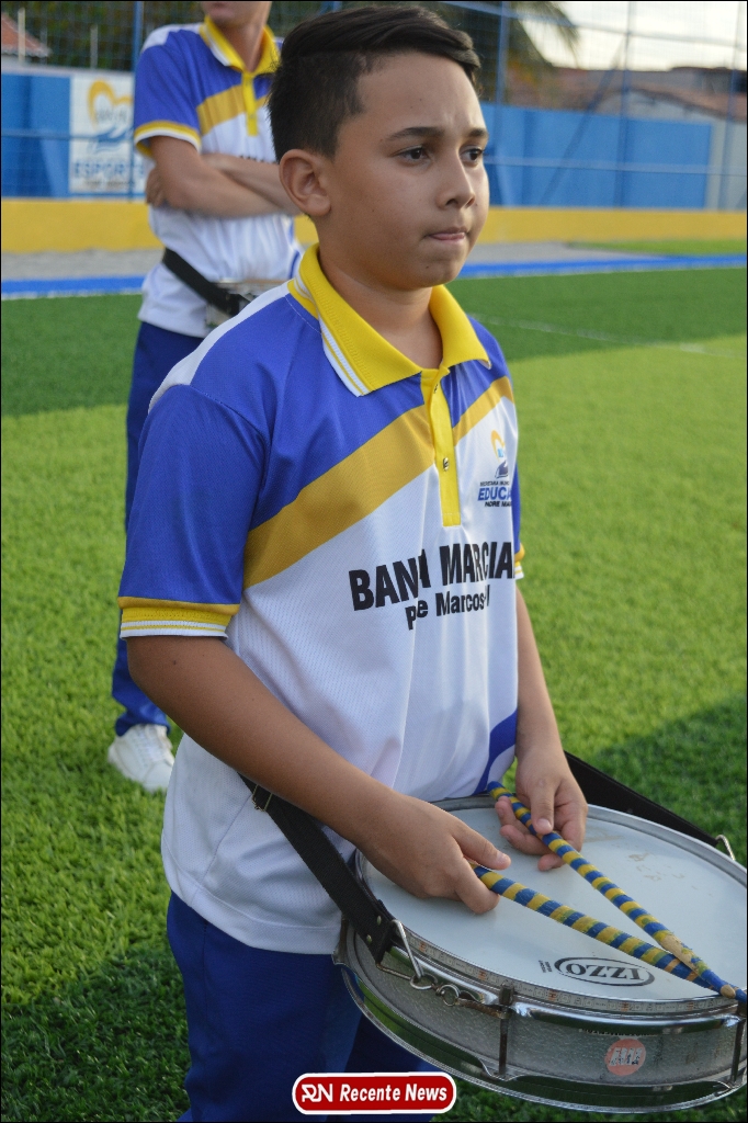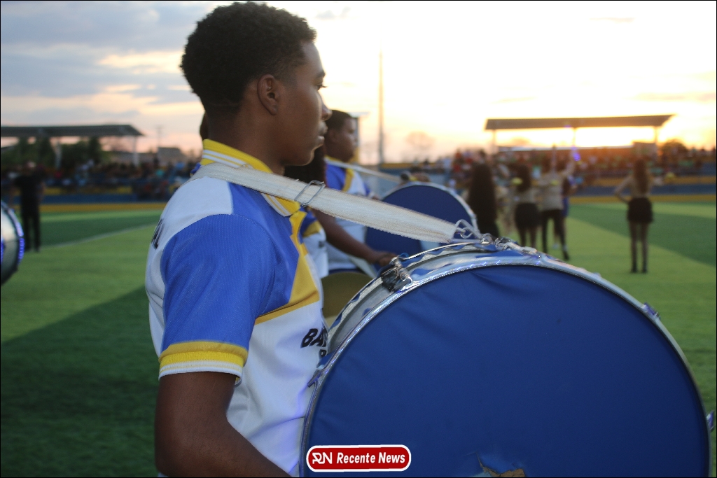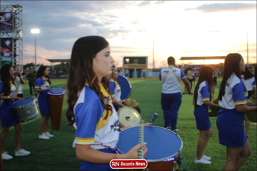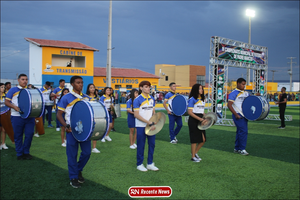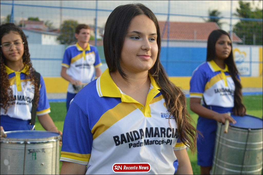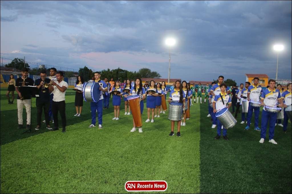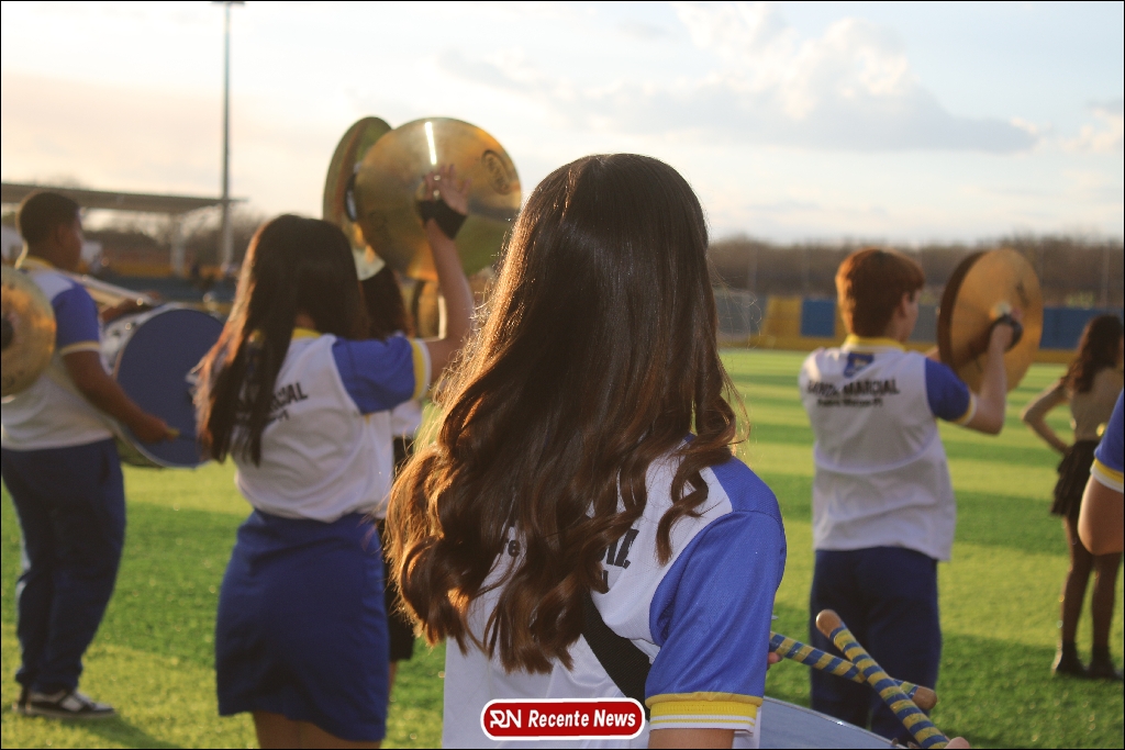 A abertura contou com um momento especial: a belíssima apresentação da Banda Marcial Padre Marcos (B.M.P.M), que encantou o público presente com um espetáculo musical vibrante. Sob a regência do maestro Vinícios Silva, a banda deu início à solenidade com uma performance impecável, marcando com ritmo e emoção o início de mais uma edição do campeonato.
