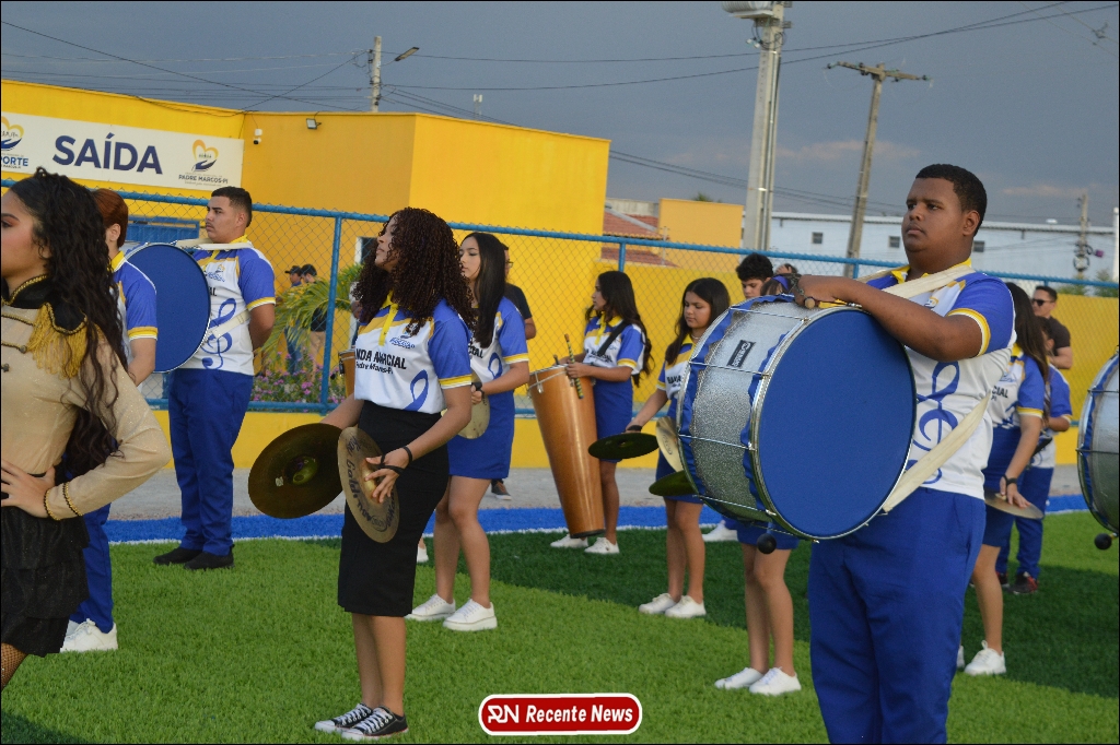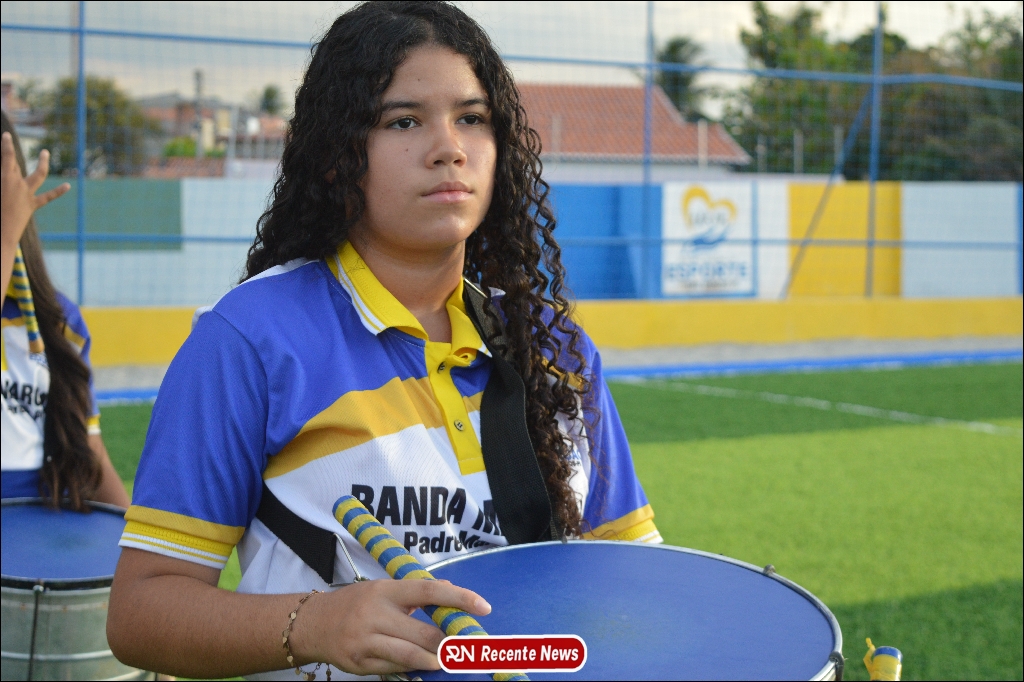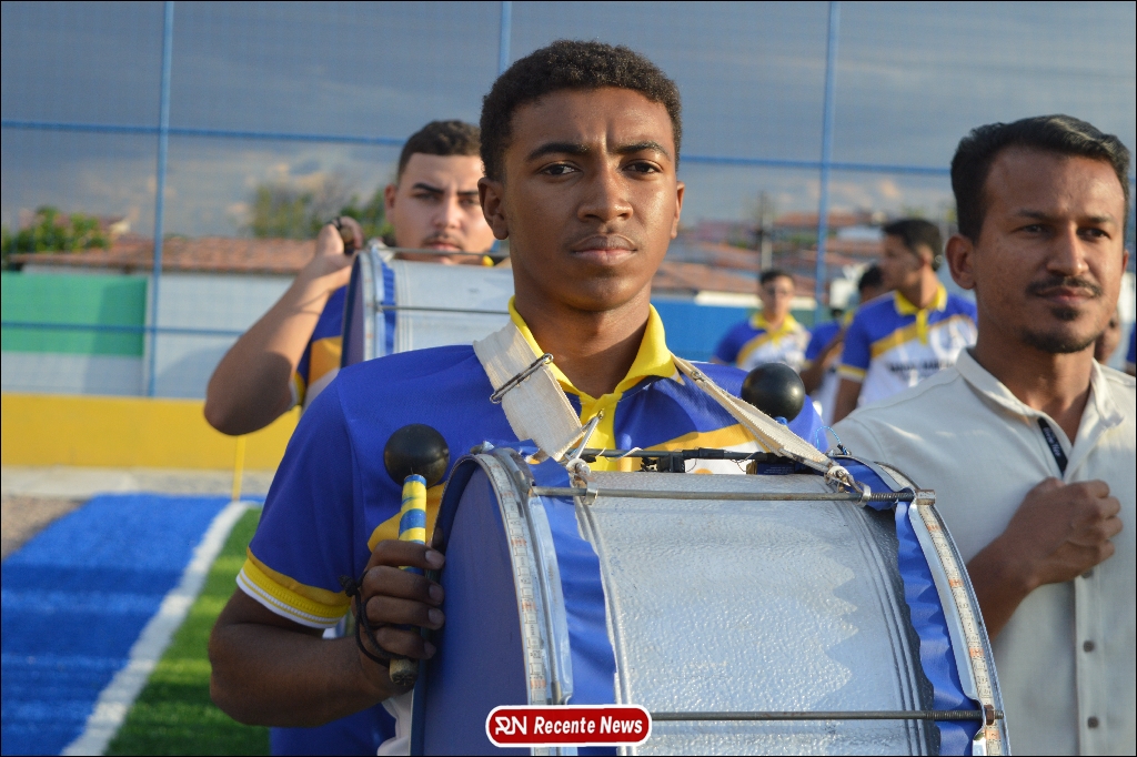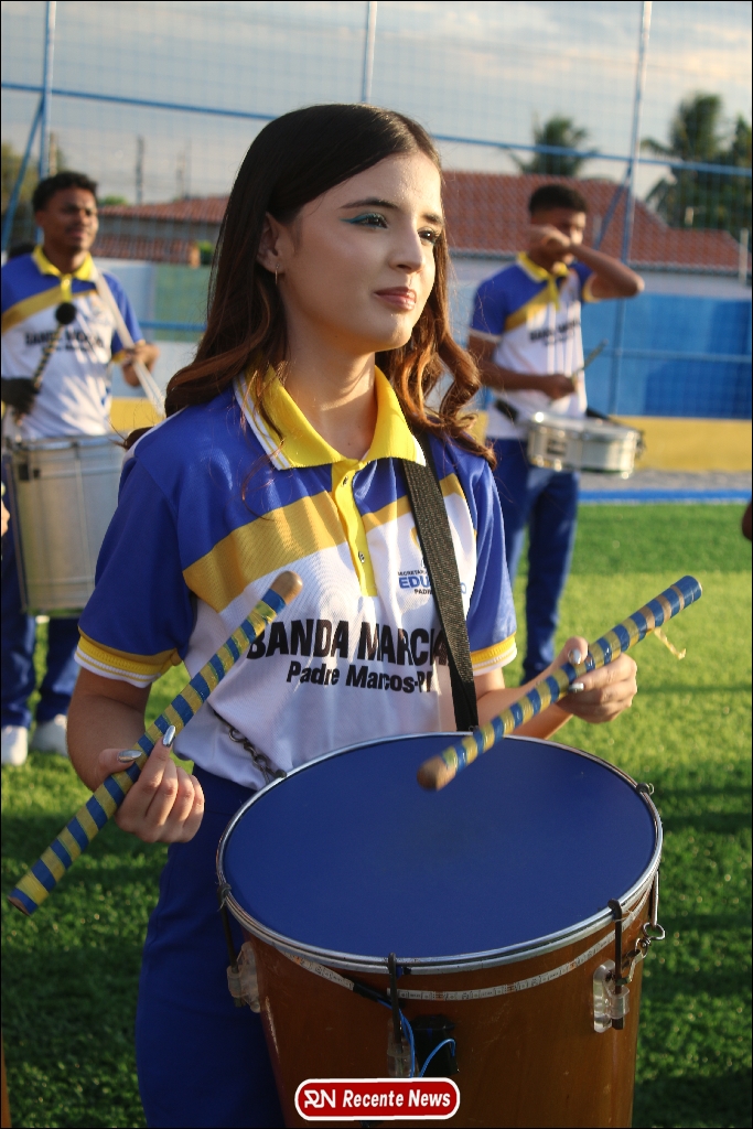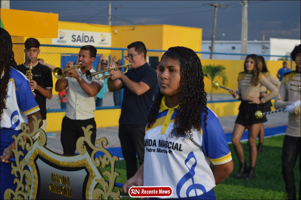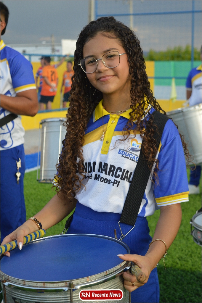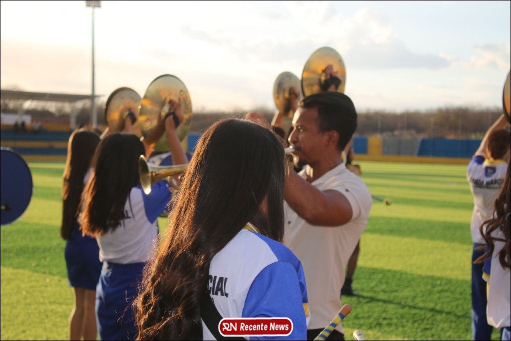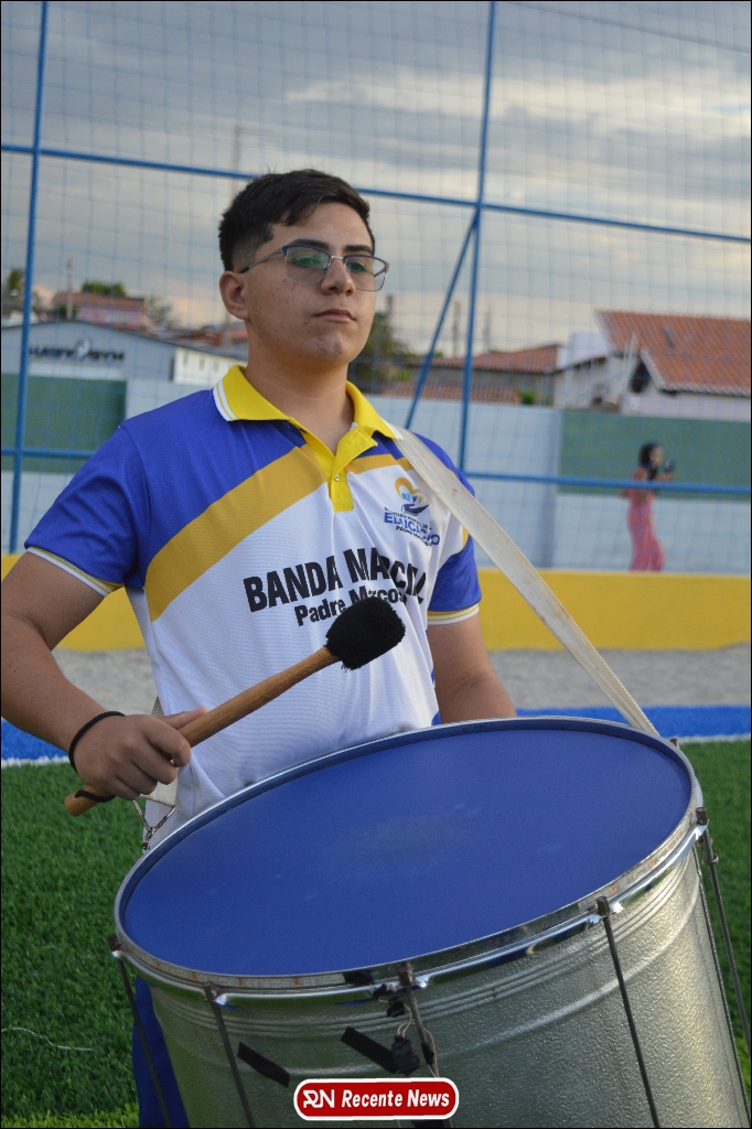 A abertura contou com um momento especial: a belíssima apresentação da Banda Marcial Padre Marcos (B.M.P.M), que encantou o público presente com um espetáculo musical vibrante. Sob a regência do maestro Vinícios Silva, a banda deu início à solenidade com uma performance impecável, marcando com ritmo e emoção o início de mais uma edição do campeonato.