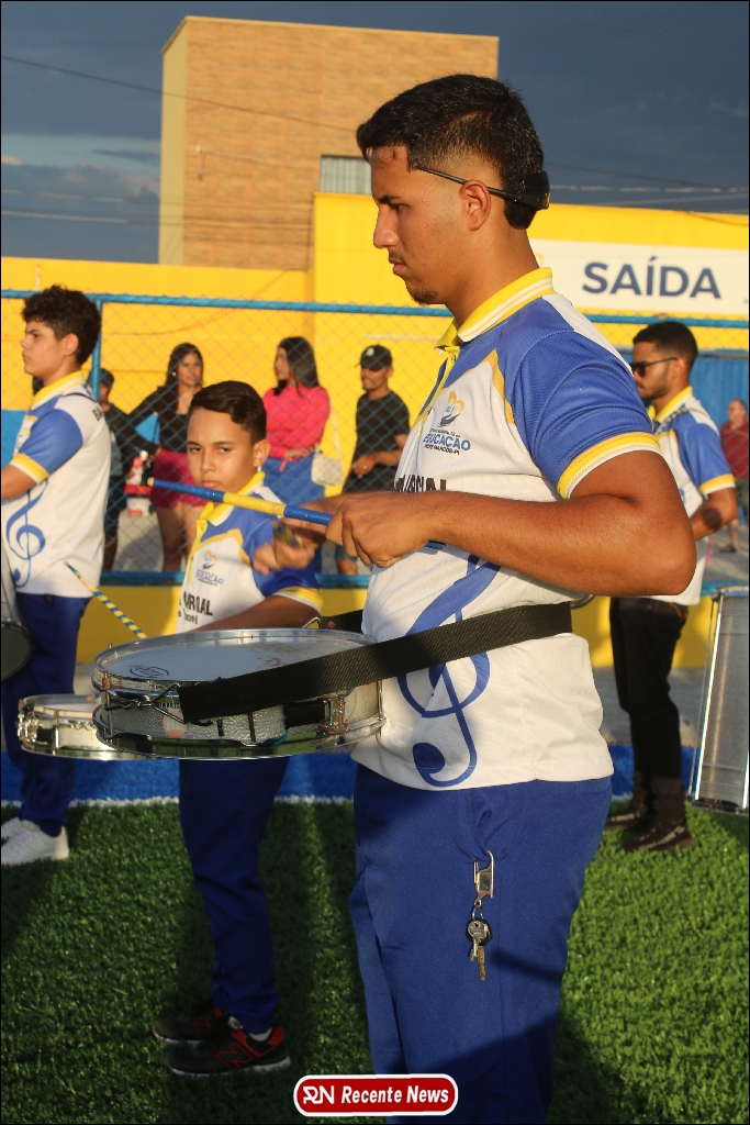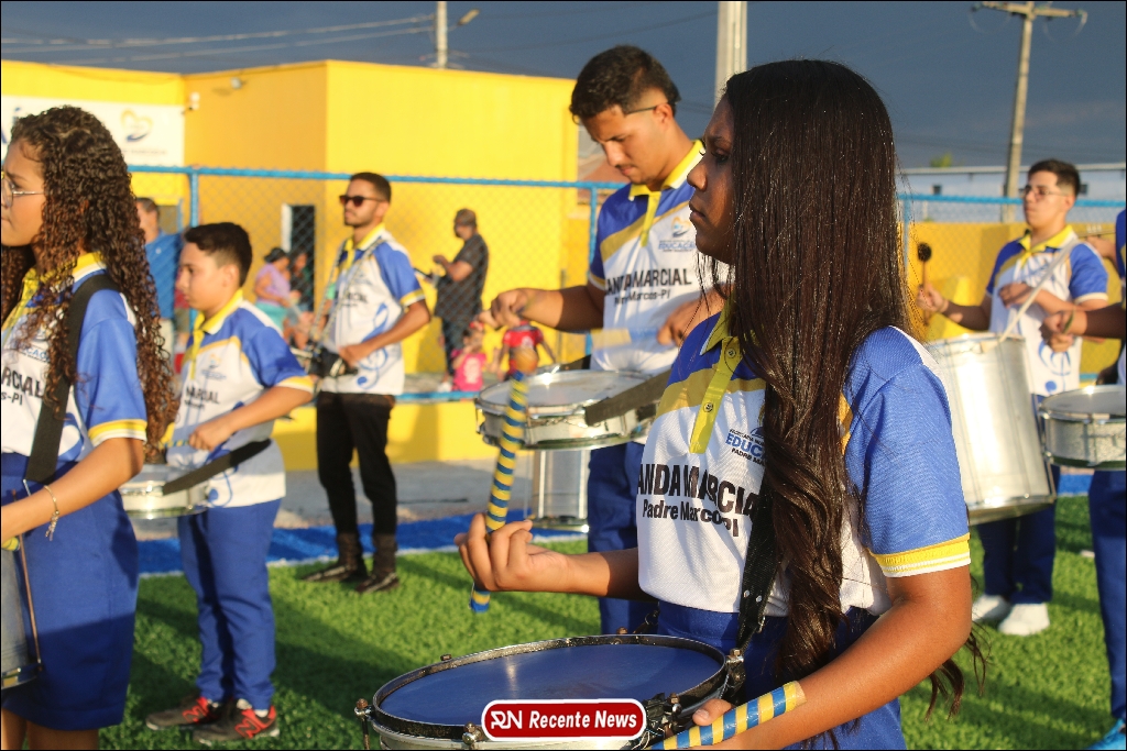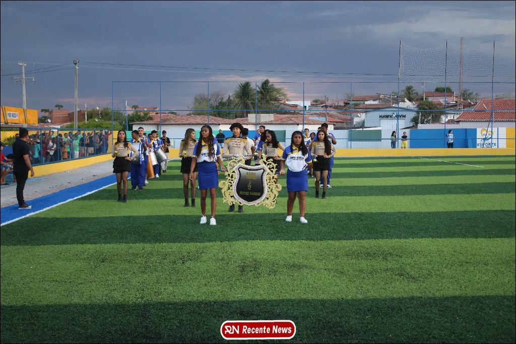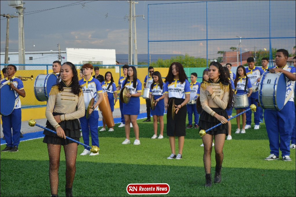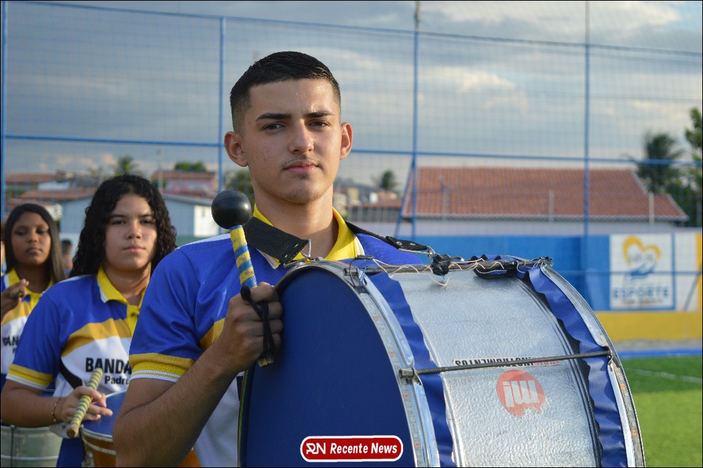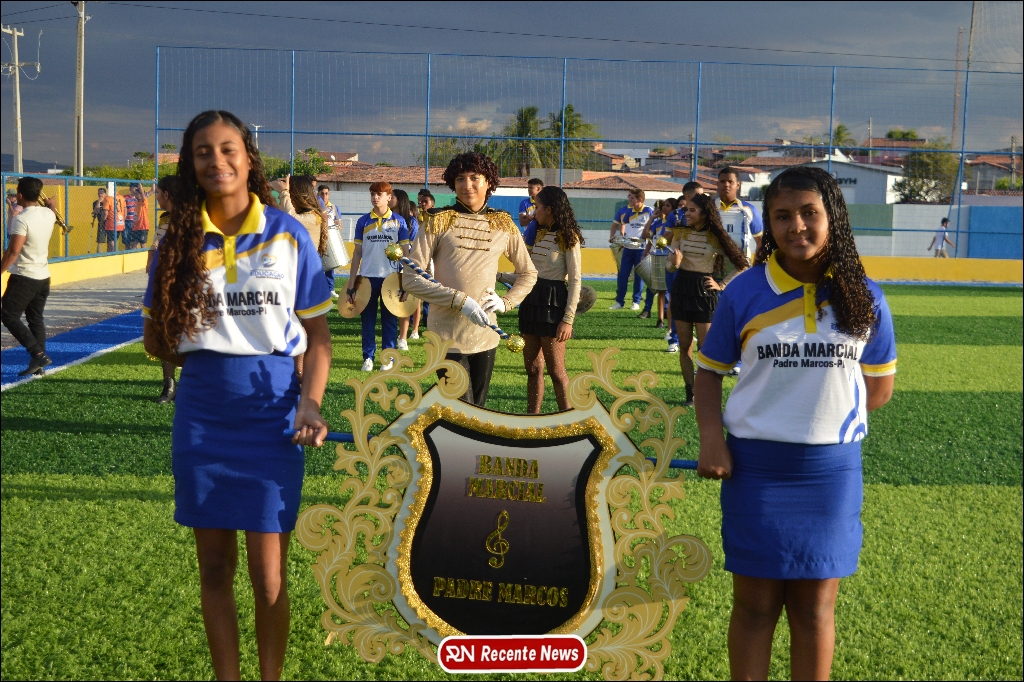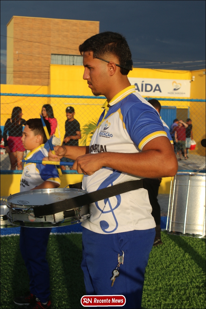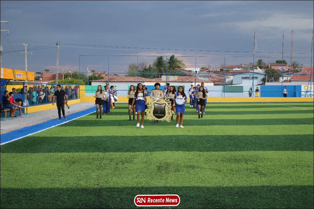 A abertura contou com um momento especial: a belíssima apresentação da Banda Marcial Padre Marcos (B.M.P.M), que encantou o público presente com um espetáculo musical vibrante. Sob a regência do maestro Vinícios Silva, a banda deu início à solenidade com uma performance impecável, marcando com ritmo e emoção o início de mais uma edição do campeonato.