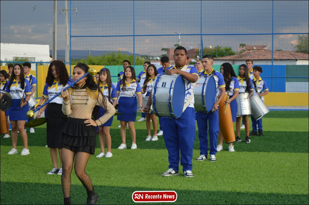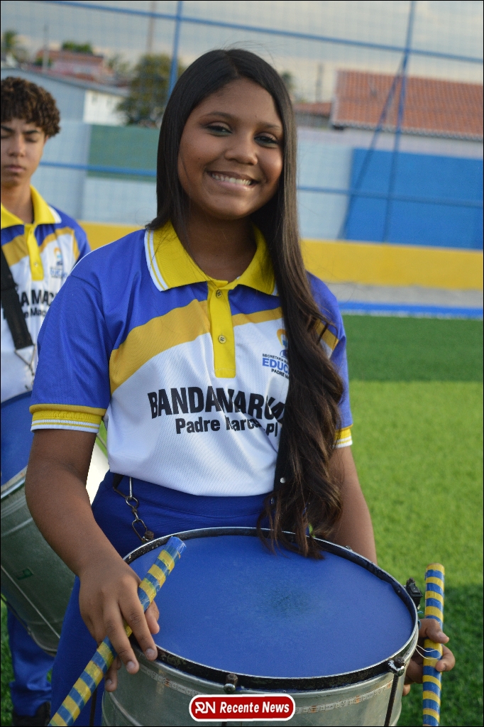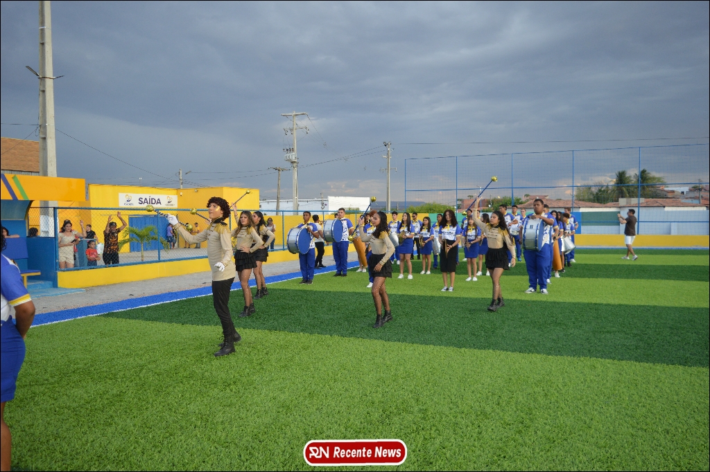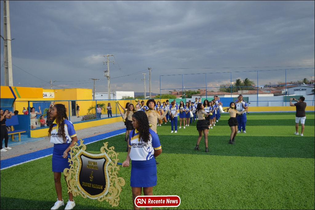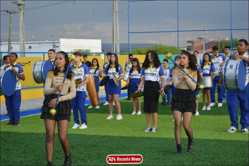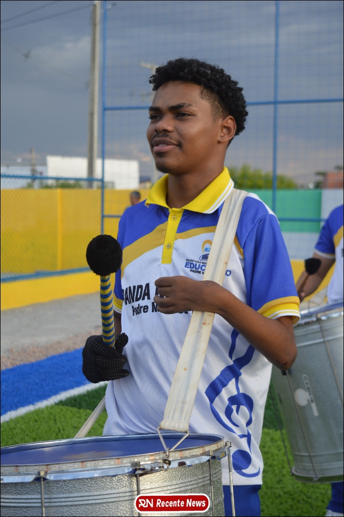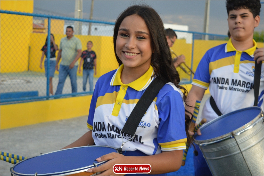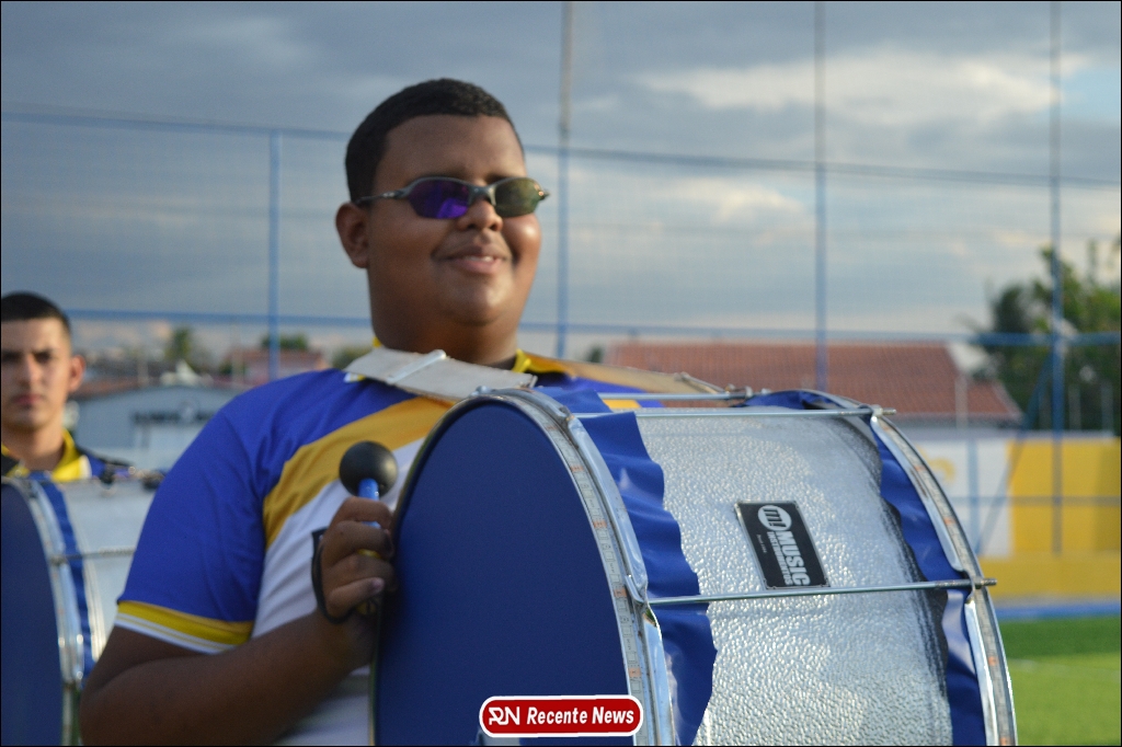 A abertura contou com um momento especial: a belíssima apresentação da Banda Marcial Padre Marcos (B.M.P.M), que encantou o público presente com um espetáculo musical vibrante. Sob a regência do maestro Vinícios Silva, a banda deu início à solenidade com uma performance impecável, marcando com ritmo e emoção o início de mais uma edição do campeonato.