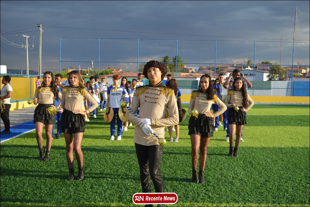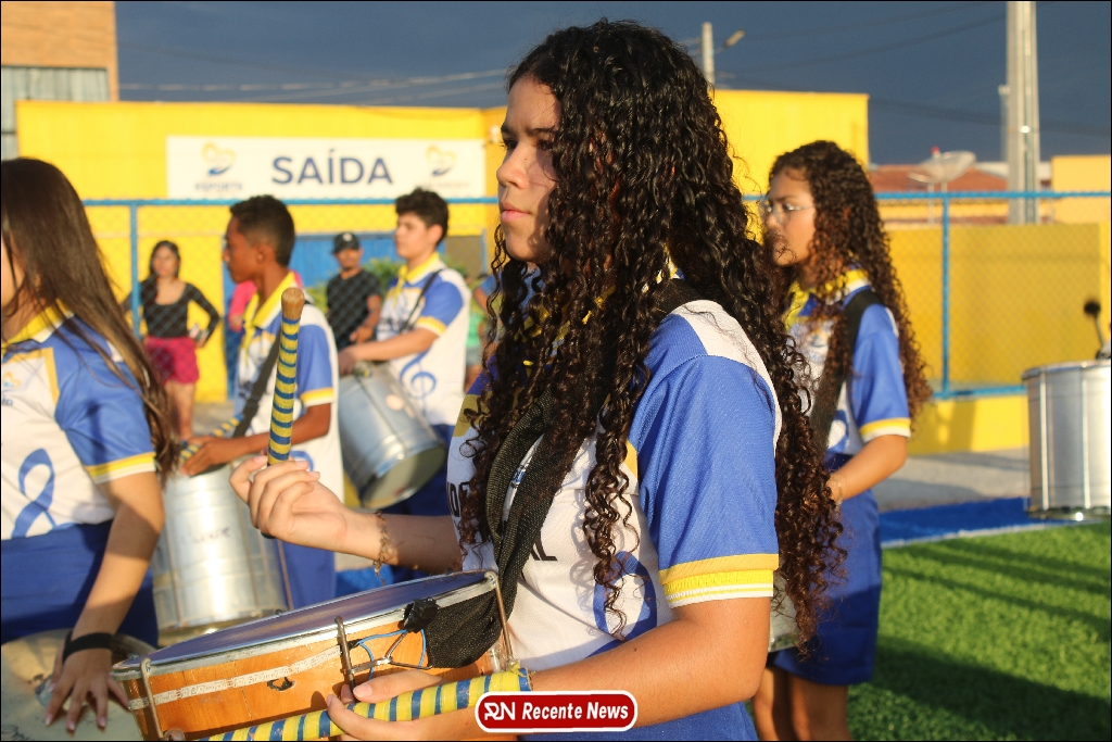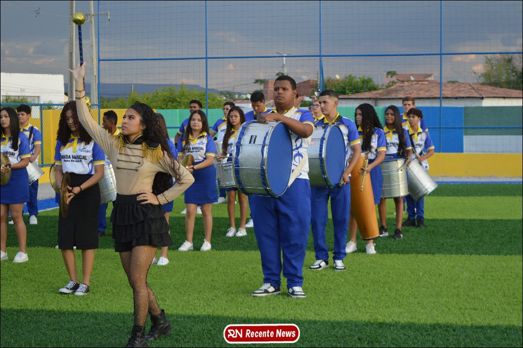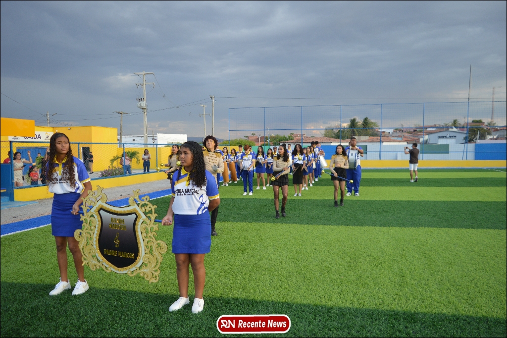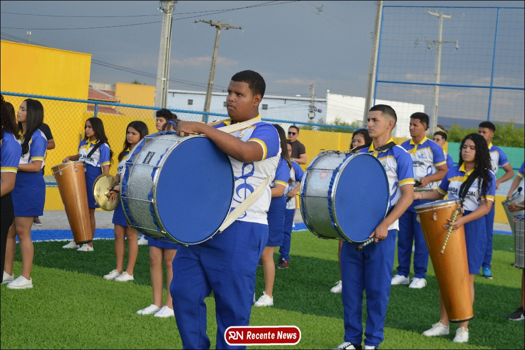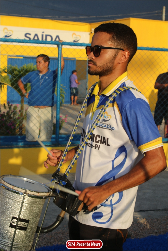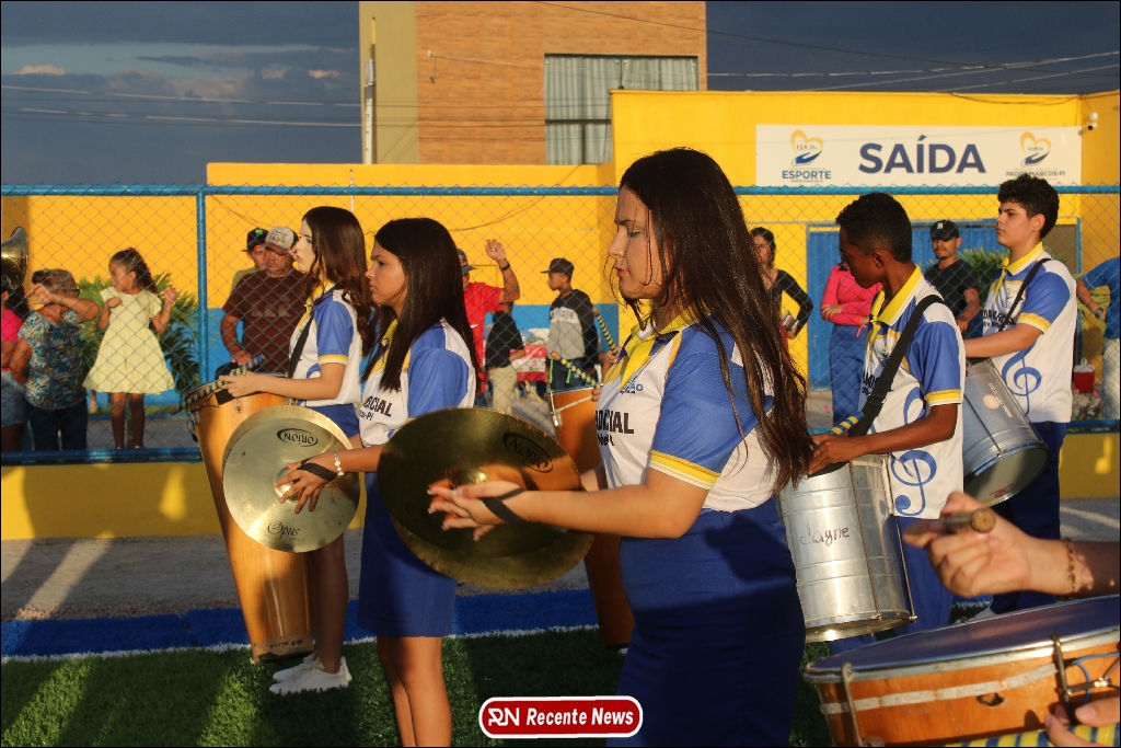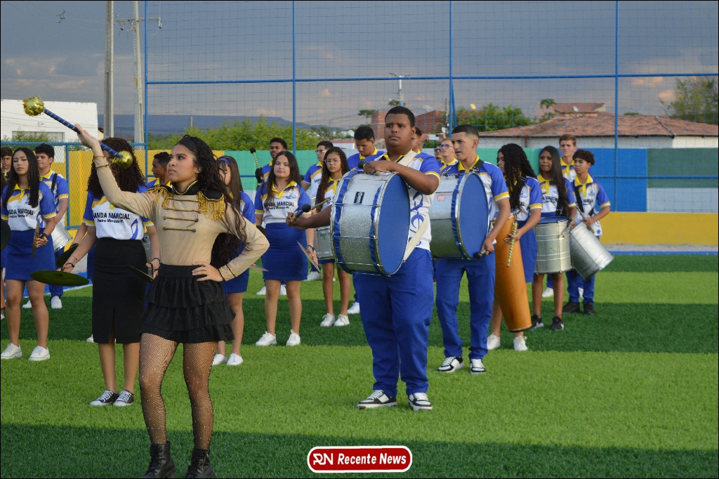 A abertura contou com um momento especial: a belíssima apresentação da Banda Marcial Padre Marcos (B.M.P.M), que encantou o público presente com um espetáculo musical vibrante. Sob a regência do maestro Vinícios Silva, a banda deu início à solenidade com uma performance impecável, marcando com ritmo e emoção o início de mais uma edição do campeonato.