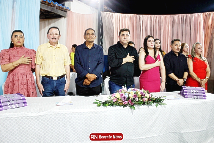 As docentes subiram ao palco para expressar palavras de carinho, reconhecimento e orgulho pelas conquistas dos pequenos. Em seguida, o maestro Emanoel Vinícius conduziu a execução do Hino Nacional Brasileiro e do Hino do Município de Padre Marcos, em um momento de civismo e respeito.