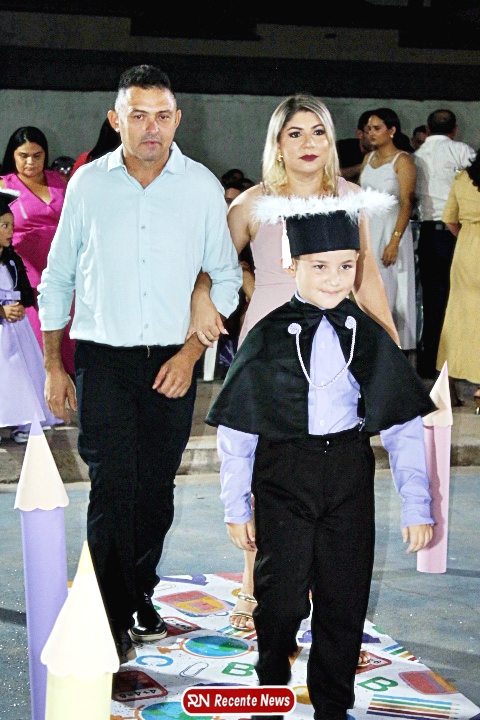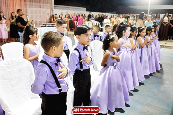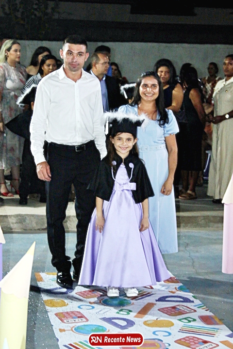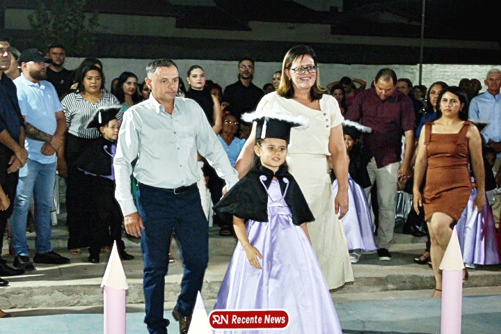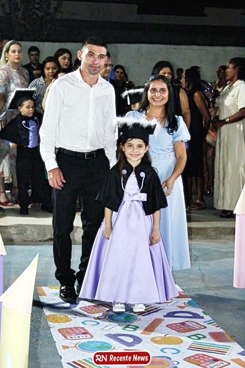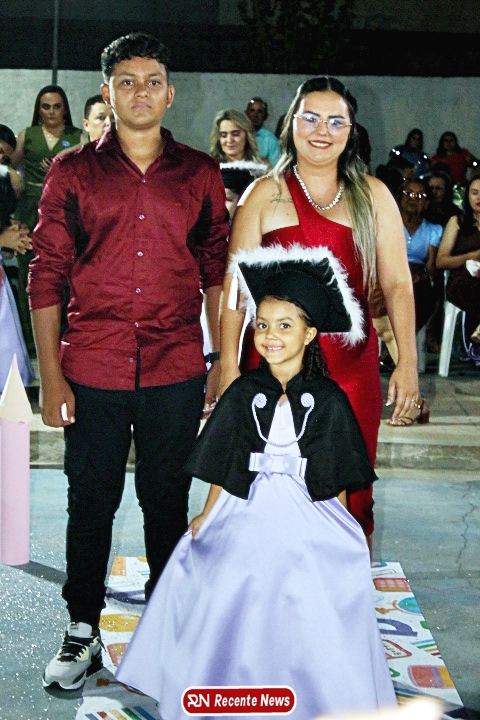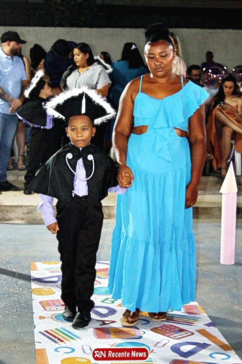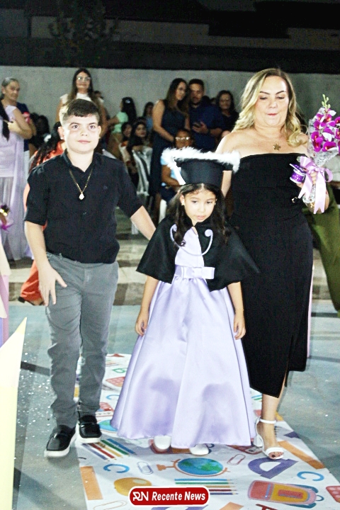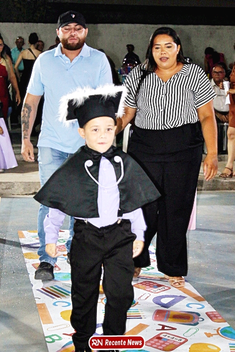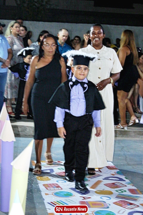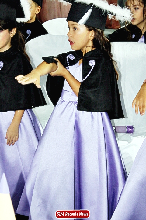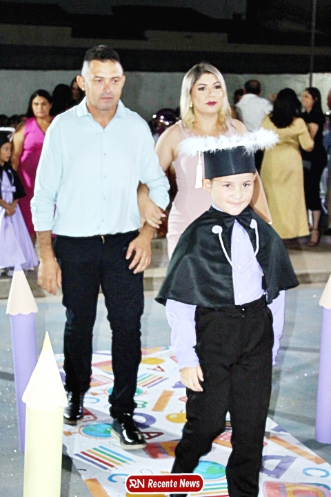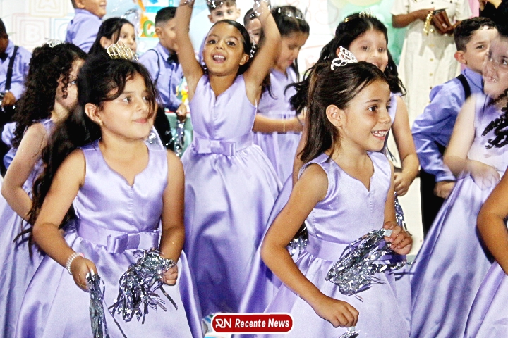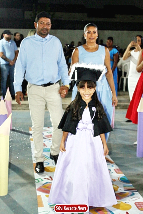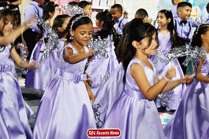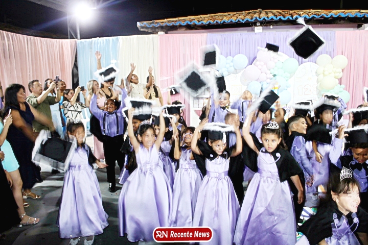 A entrega dos diplomas foi acompanhada por músicas especiais que marcaram a trajetória das crianças. Cada formando foi chamado ao palco com sua família e apresentado ao público através de informações como seu sonho, sua brincadeira favorita e o que deseja ser no futuro — detalhes que emocionaram todos os presentes.
