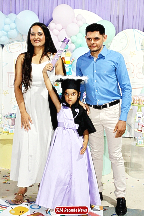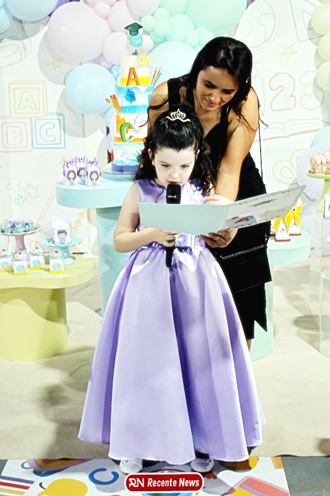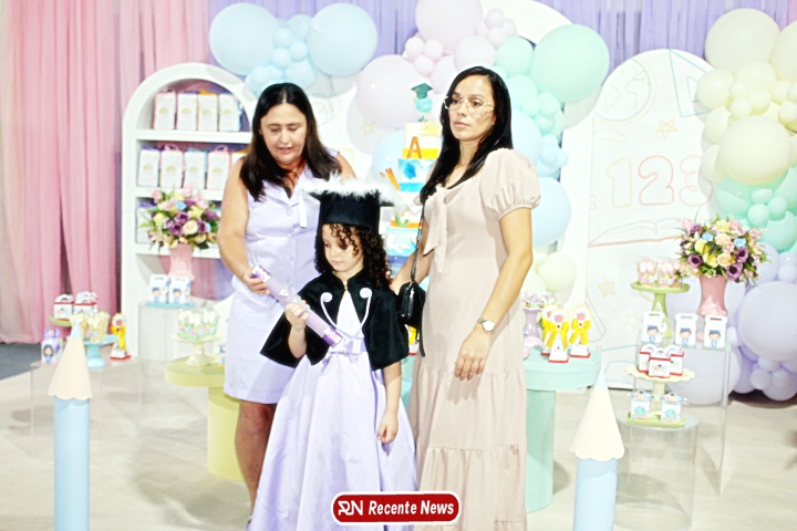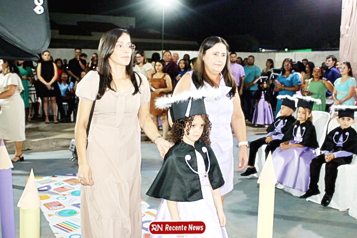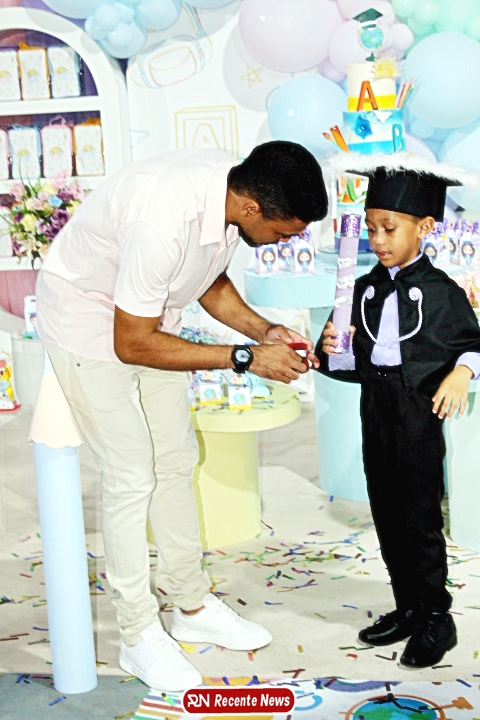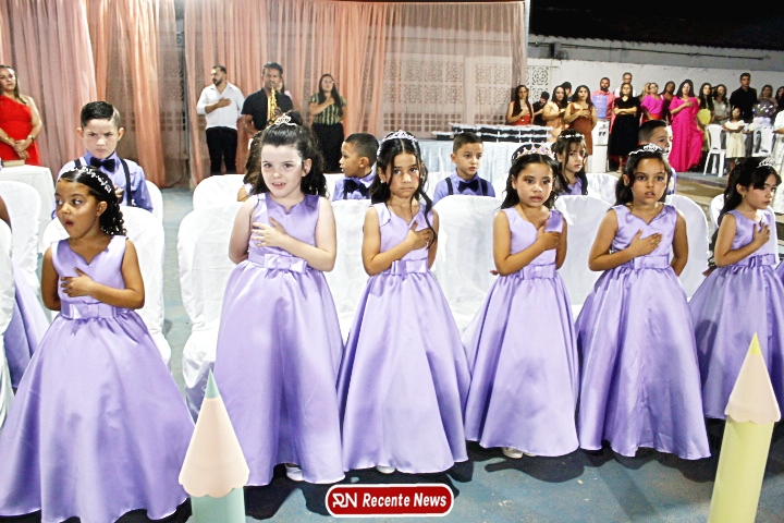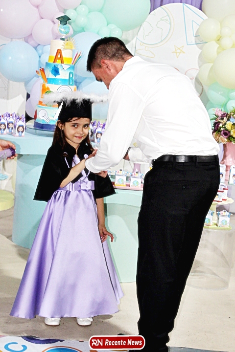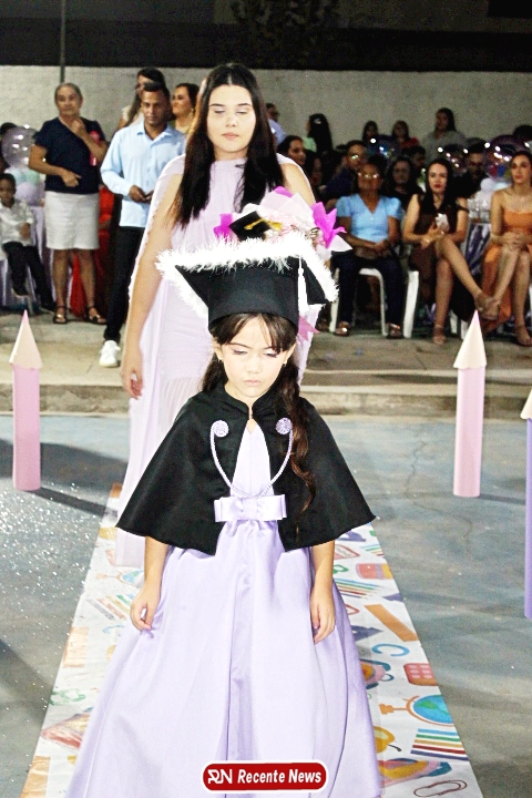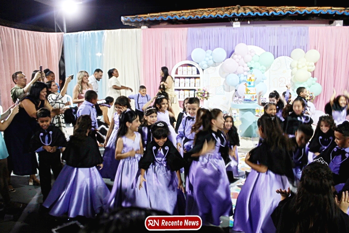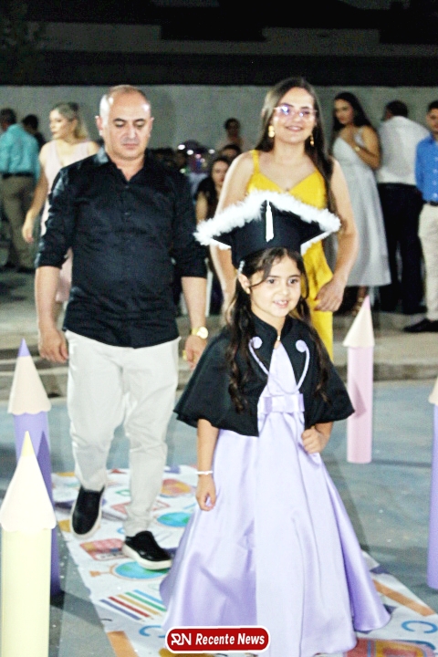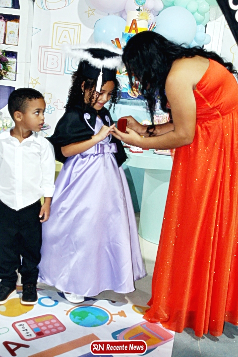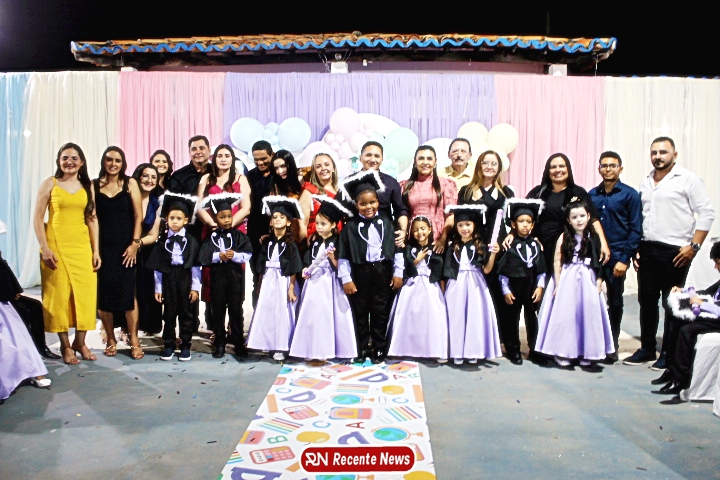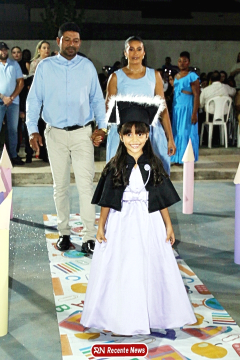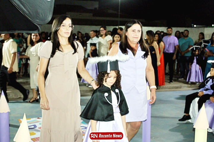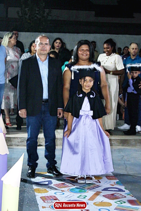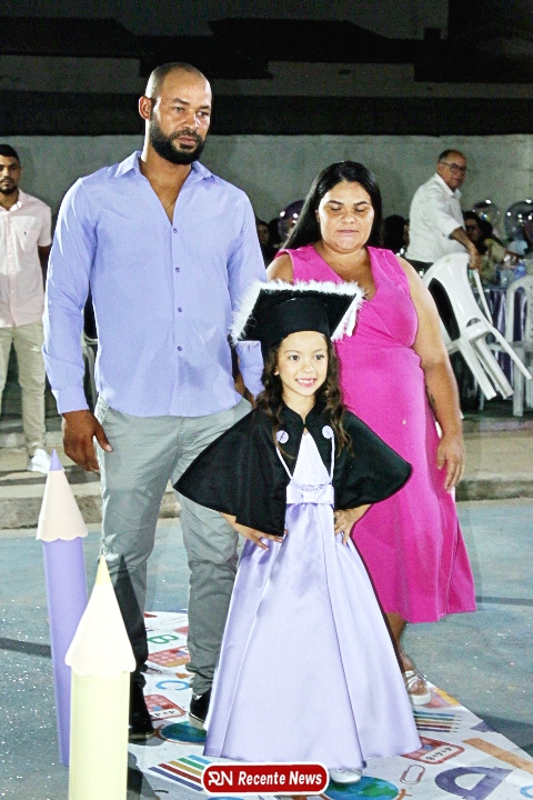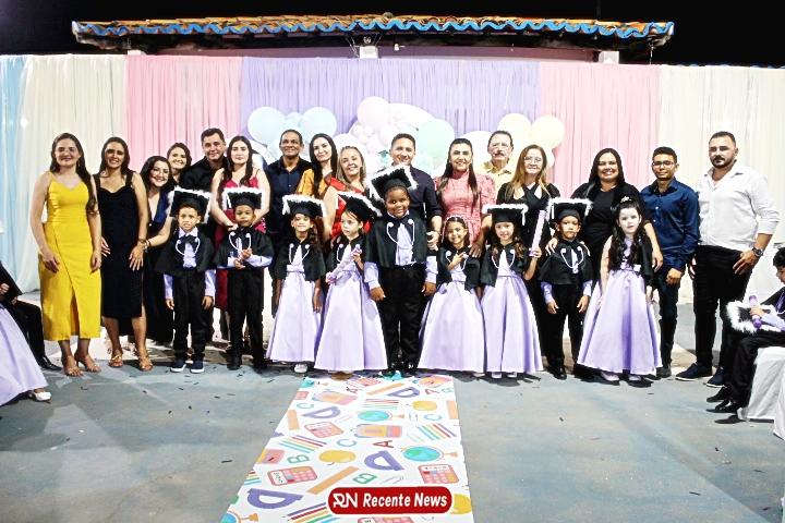 A entrega dos diplomas foi acompanhada por músicas especiais que marcaram a trajetória das crianças. Cada formando foi chamado ao palco com sua família e apresentado ao público através de informações como seu sonho, sua brincadeira favorita e o que deseja ser no futuro — detalhes que emocionaram todos os presentes.