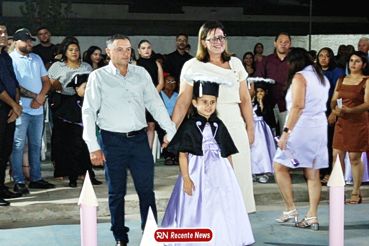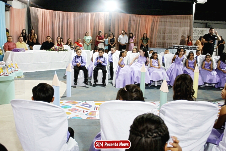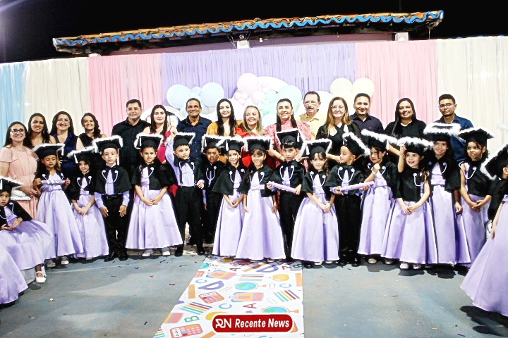 A Creche e Pré-Escola Margarida de Jesus Alencar, a querida Escola Tia Guida, promoveu na noite desta quarta-feira (11), no Centro Social Urbano, uma das cerimônias mais marcantes do calendário escolar de Padre Marcos: a Formatura do ABC das turmas do Pré II. O evento celebrou a primeira grande conquista acadêmica das crianças e reuniu familiares, educadores, autoridades municipais e toda a comunidade escolar.