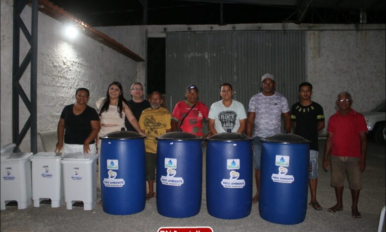 Um dos pontos altos da noite foi a entrega de novas lixeiras — como as que aparecem na imagem do evento — para auxiliar os garis em suas atividades e incentivar a prática da coleta seletiva no município. A medida reforça o compromisso da gestão municipal com a preservação ambiental e o destino correto do lixo.