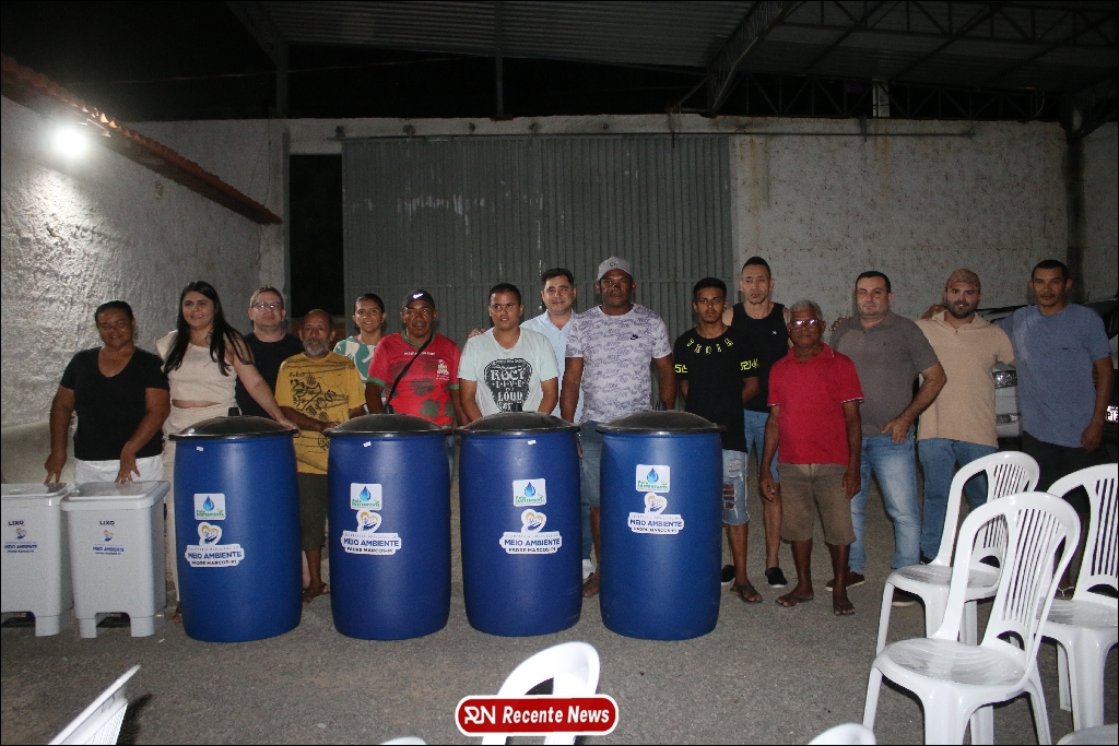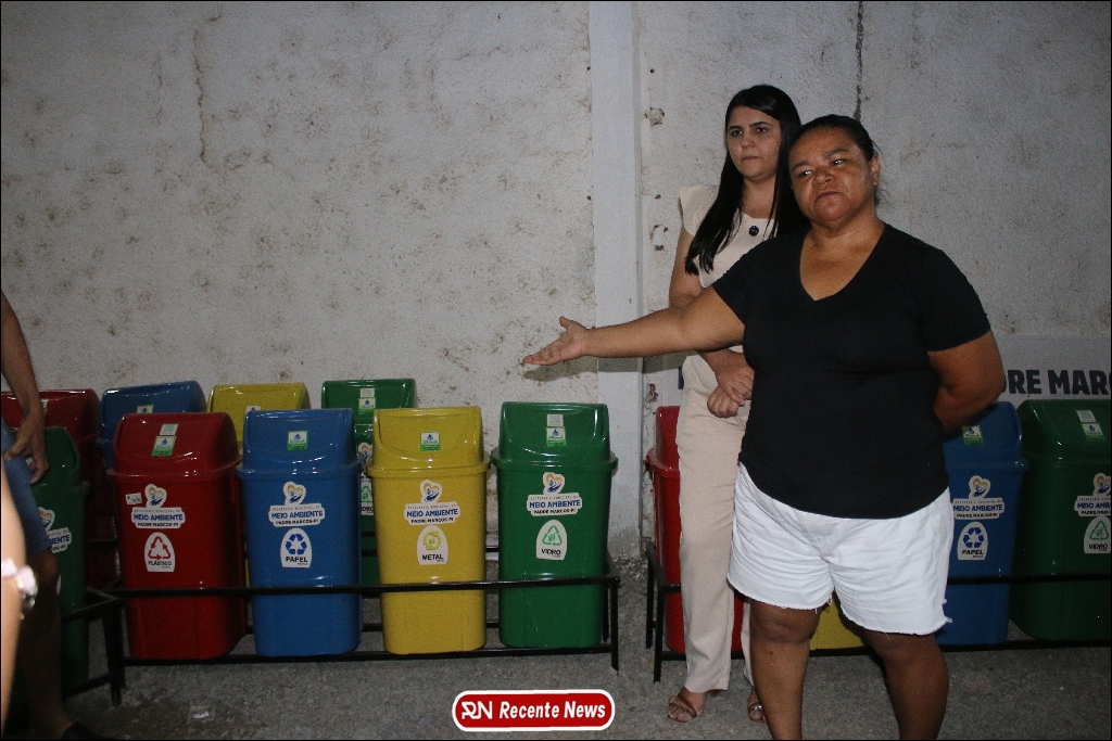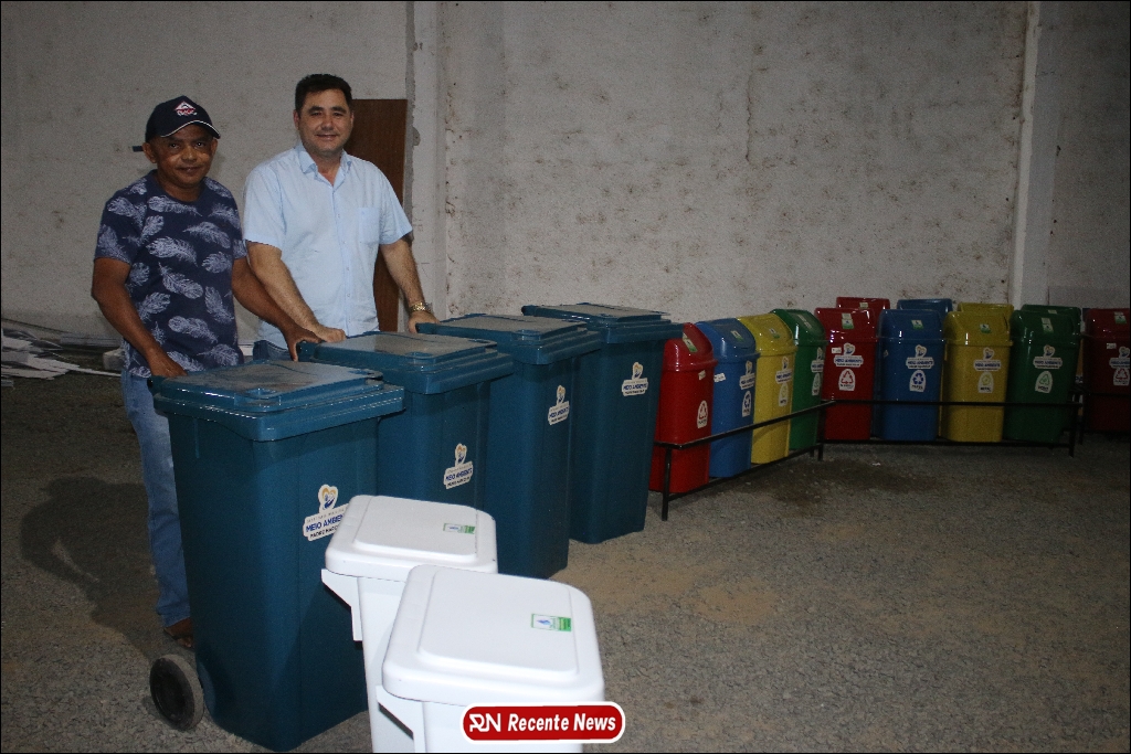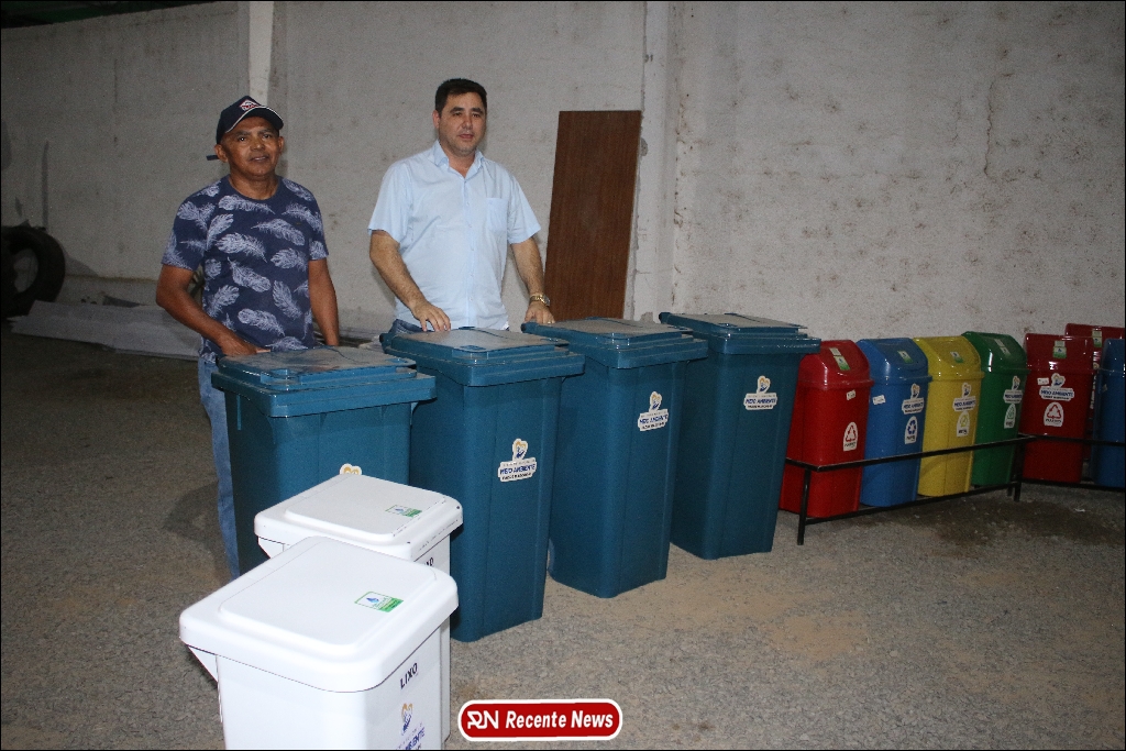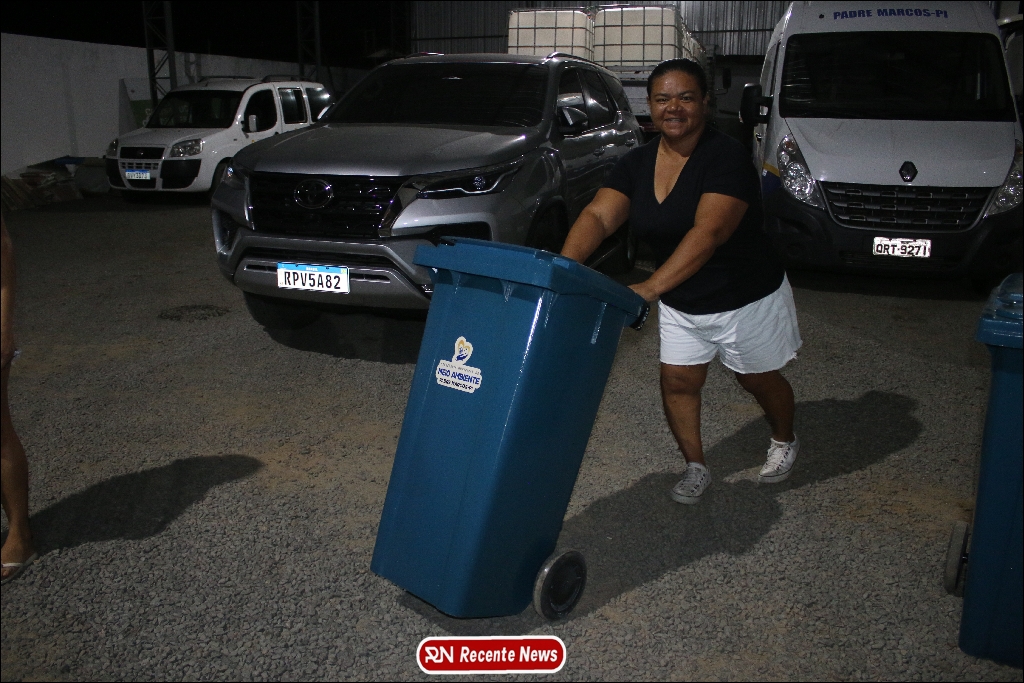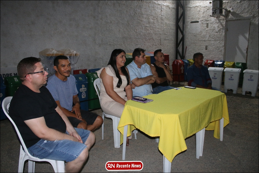 Um dos pontos altos da noite foi a entrega de novas lixeiras — como as que aparecem na imagem do evento — para auxiliar os garis em suas atividades e incentivar a prática da coleta seletiva no município. A medida reforça o compromisso da gestão municipal com a preservação ambiental e o destino correto do lixo.