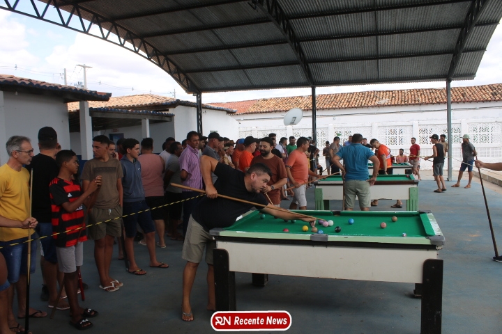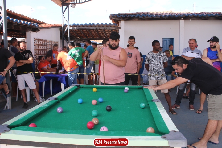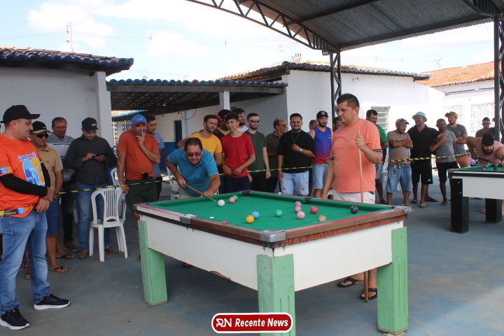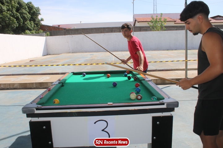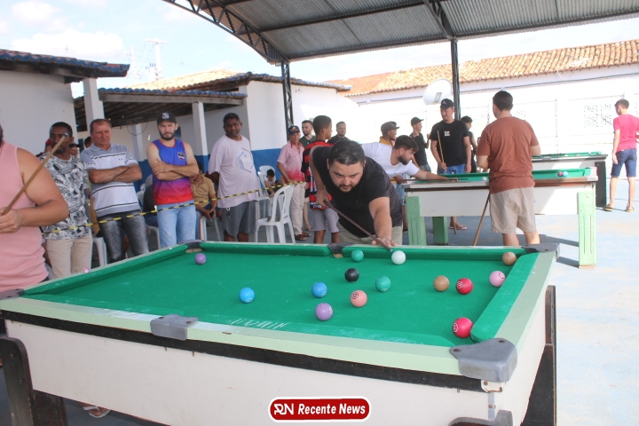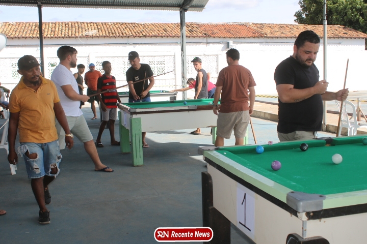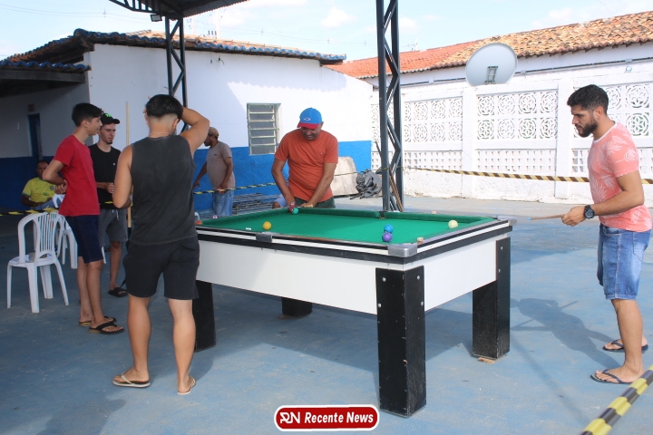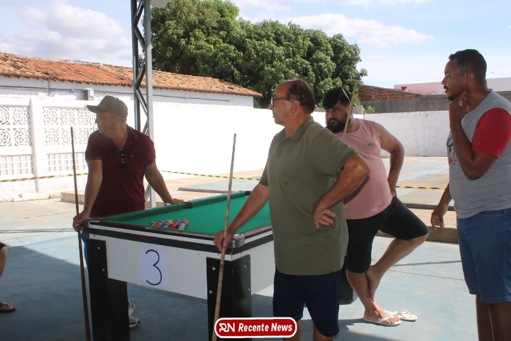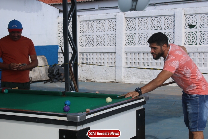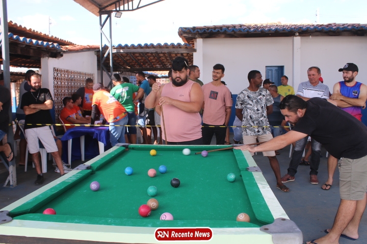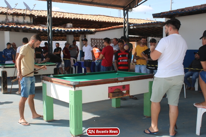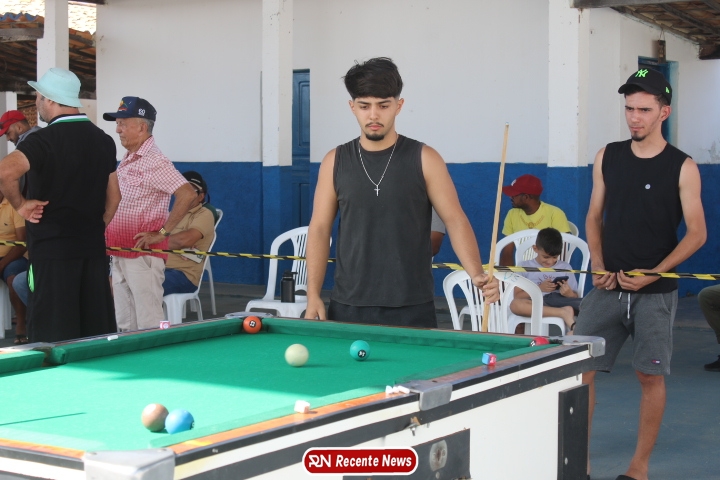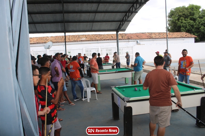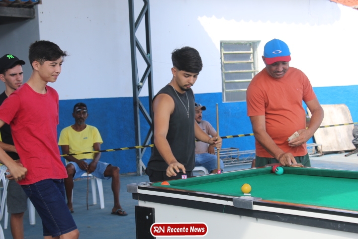 Neste momento, as festividades seguem acontecendo com destaque para o *torneio de sinuca*, realizado como parte da programação oficial do aniversário da cidade. A competição reuniu jogadores locais e atraiu um público expressivo, transformando o espaço em um ambiente de lazer, confraternização e convivência social, fortalecendo os laços entre os participantes e espectadores.