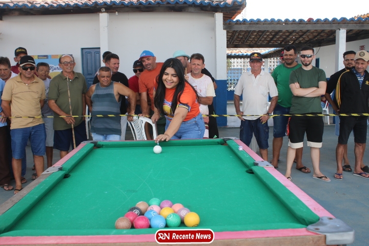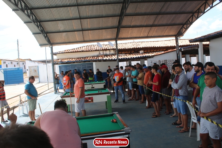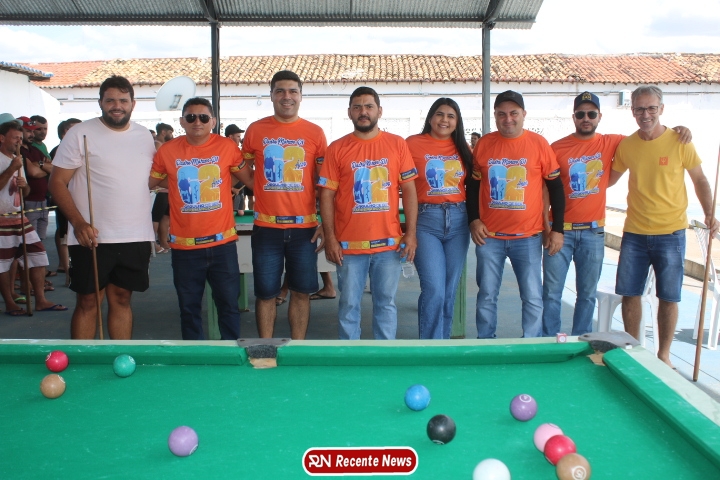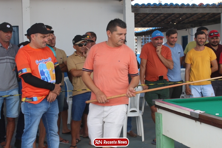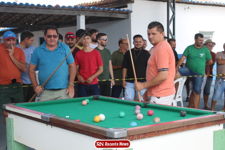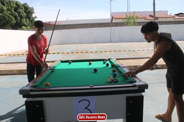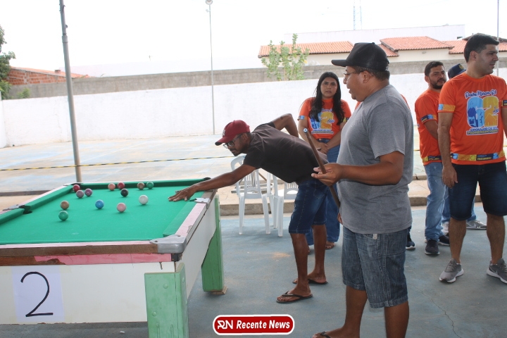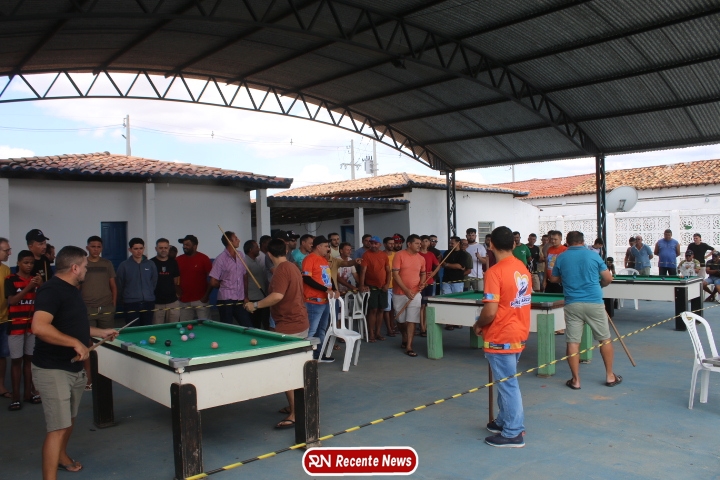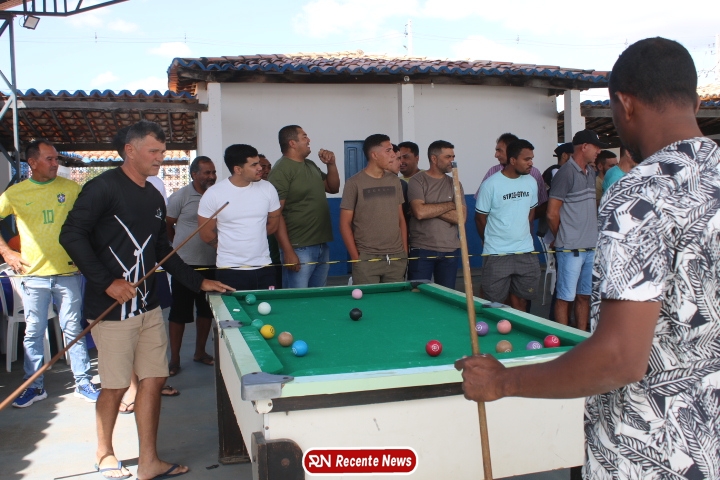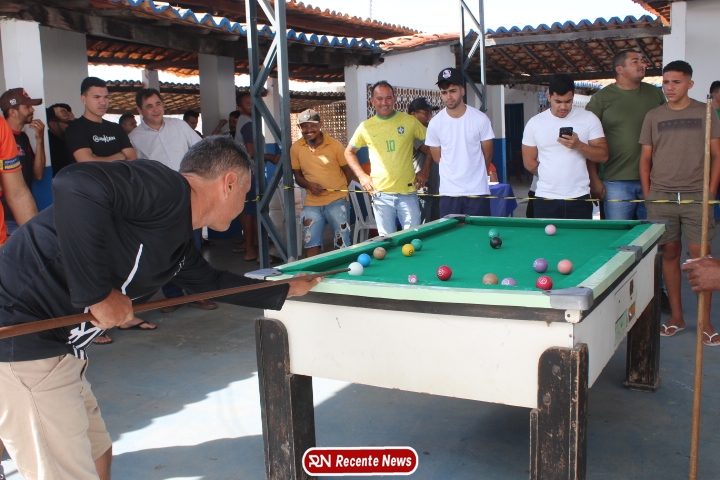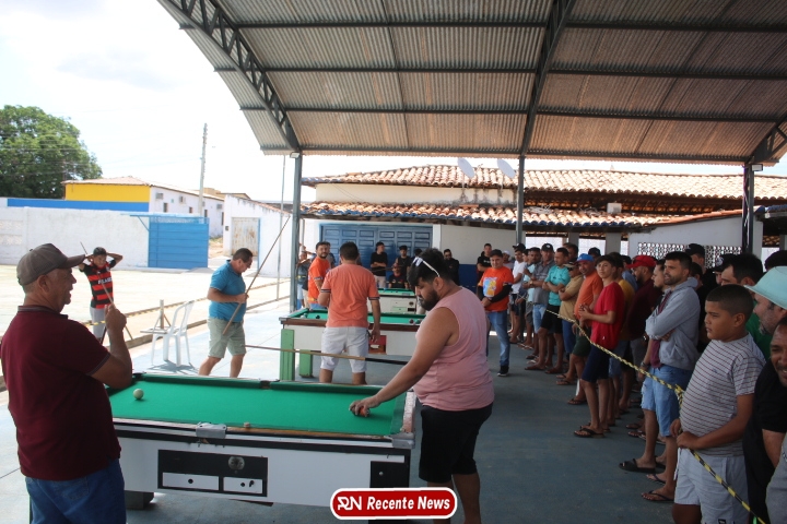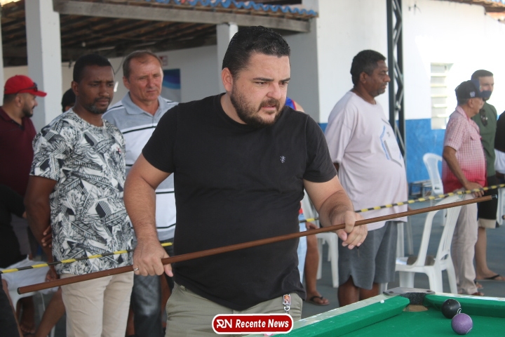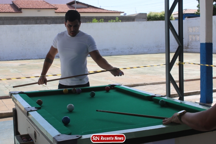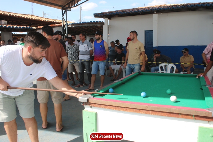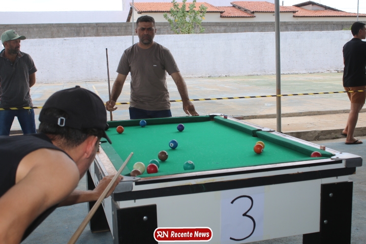 Neste momento, as festividades seguem acontecendo com destaque para o *torneio de sinuca*, realizado como parte da programação oficial do aniversário da cidade. A competição reuniu jogadores locais e atraiu um público expressivo, transformando o espaço em um ambiente de lazer, confraternização e convivência social, fortalecendo os laços entre os participantes e espectadores.