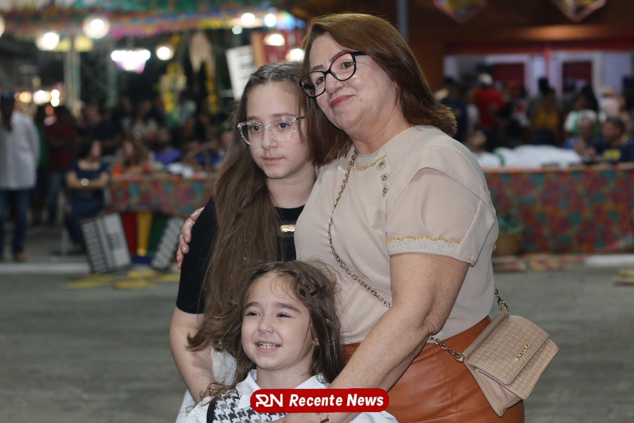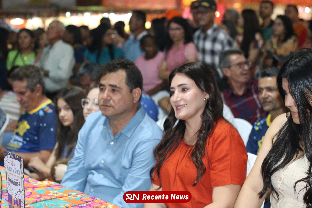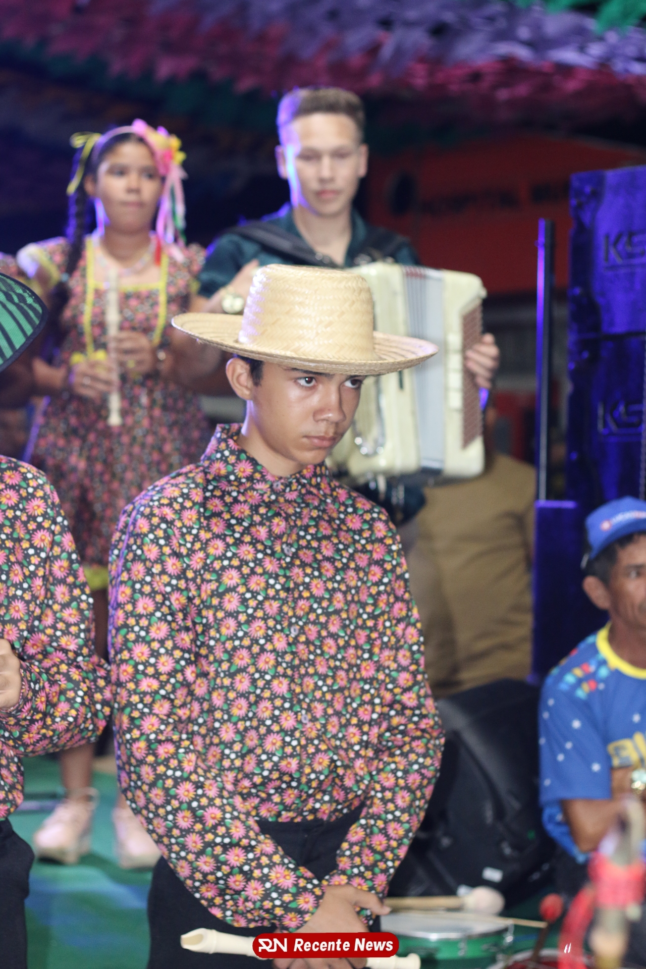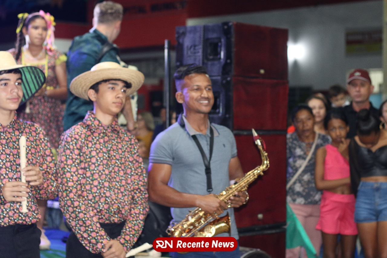 A noite começou às 20h30 com uma apresentação cultural que encantou o público presente. Em seguida, às 20h40, foi a vez da tradicional quadrilha junina, que trouxe alegria e cores para o evento, mantendo viva uma das mais queridas tradições das festas juninas.