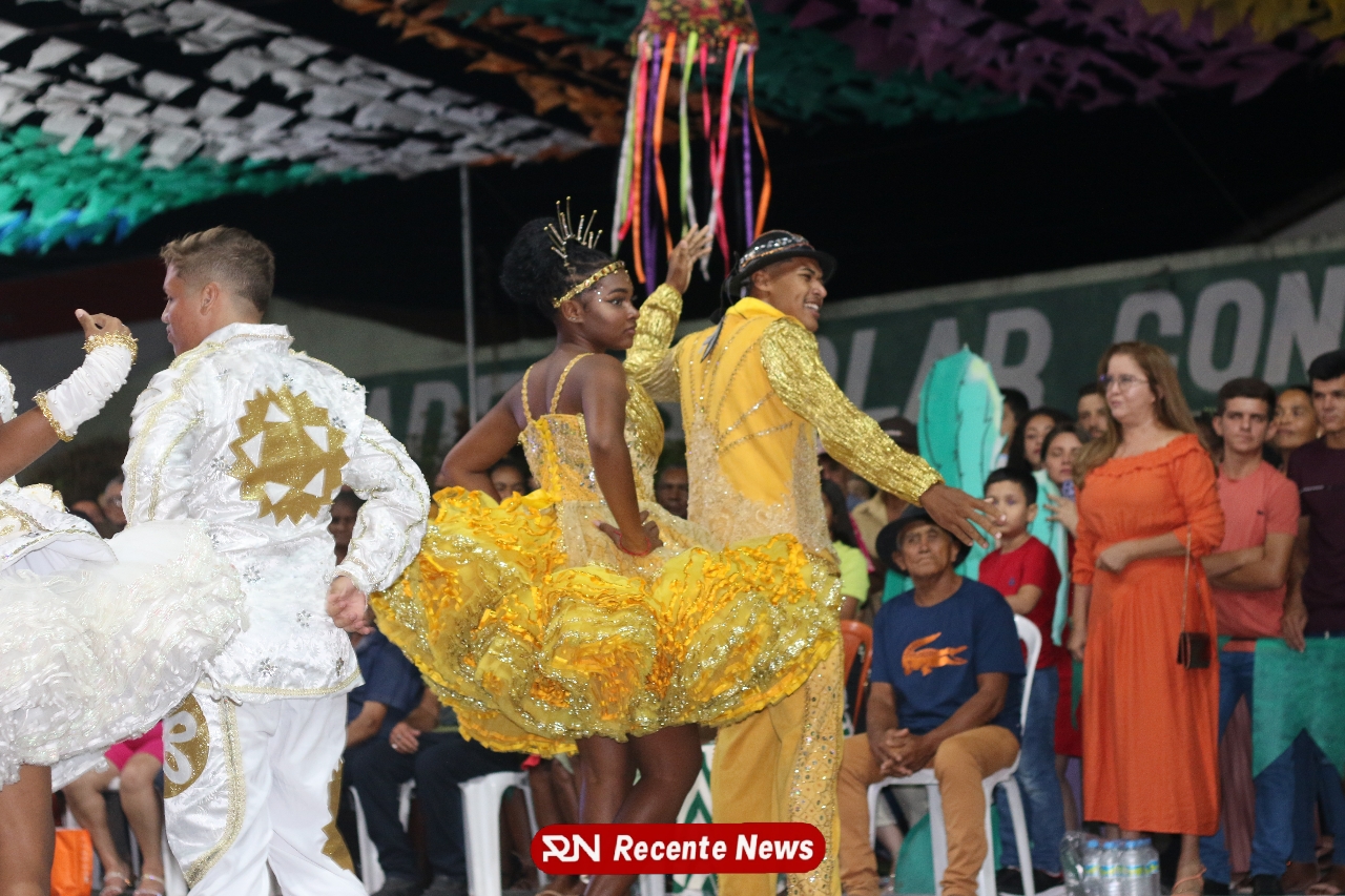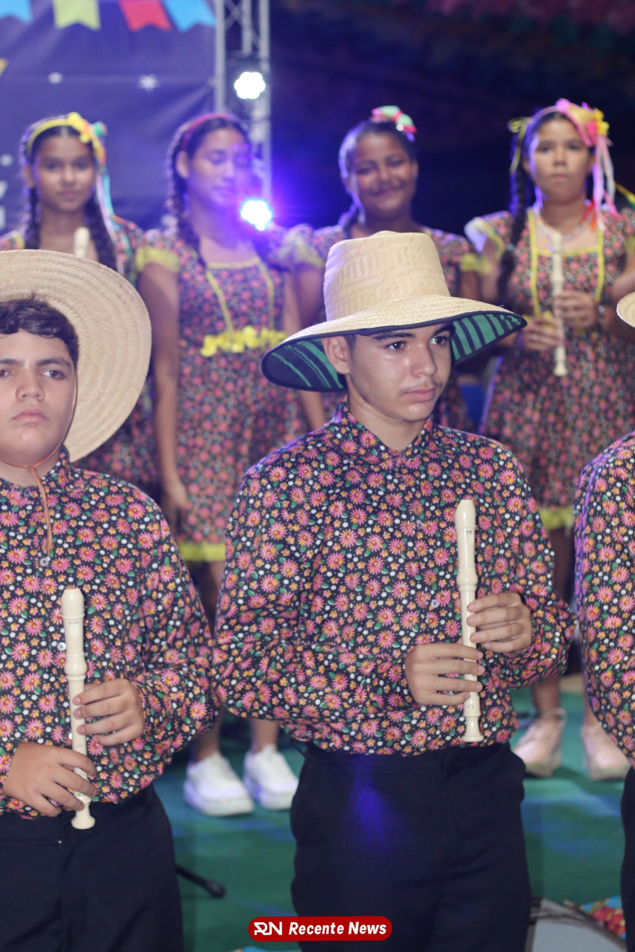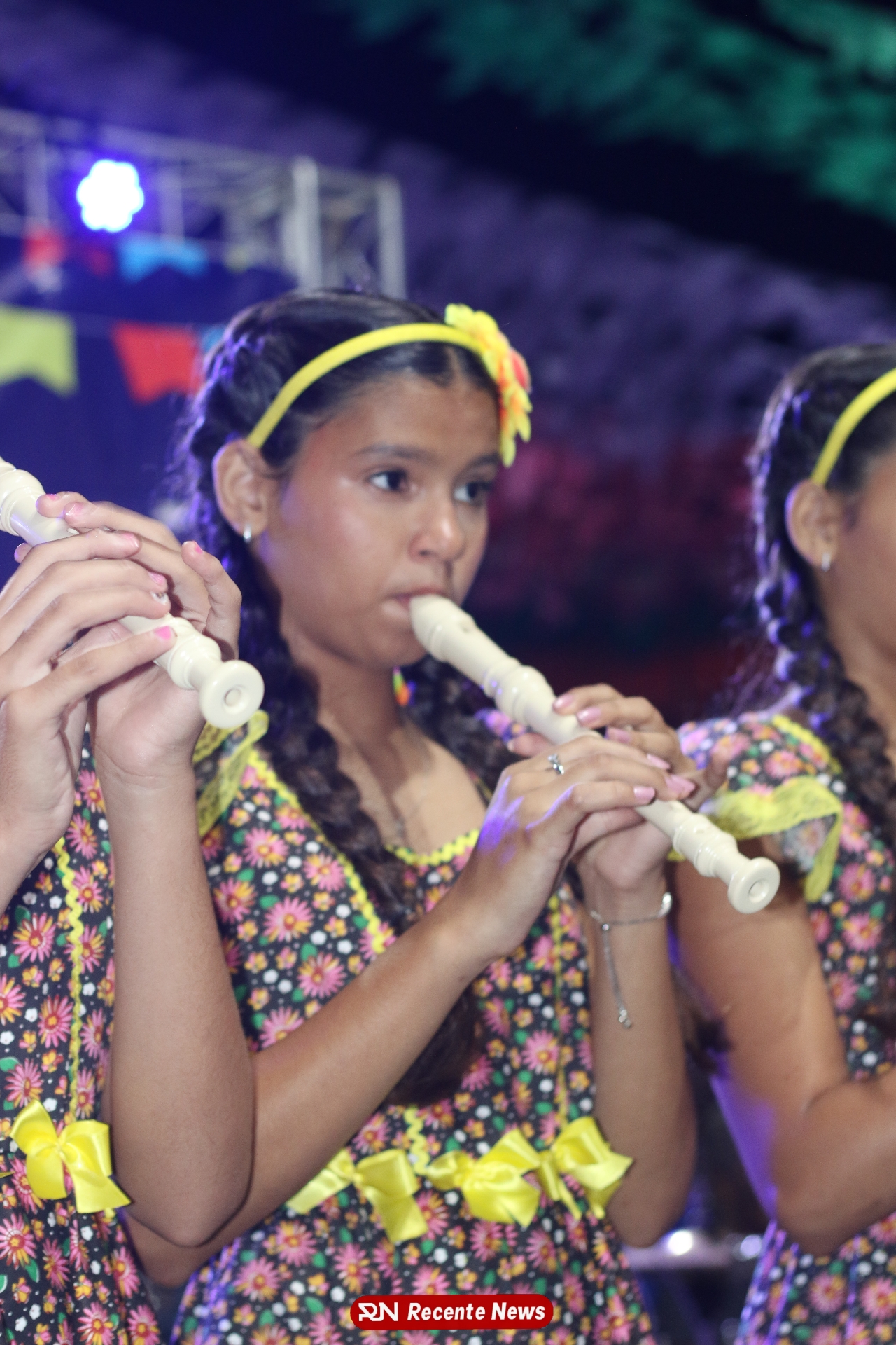 A noite começou às 20h30 com uma apresentação cultural que encantou o público presente. Em seguida, às 20h40, foi a vez da tradicional quadrilha junina, que trouxe alegria e cores para o evento, mantendo viva uma das mais queridas tradições das festas juninas.