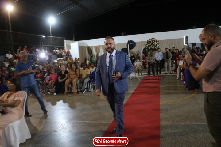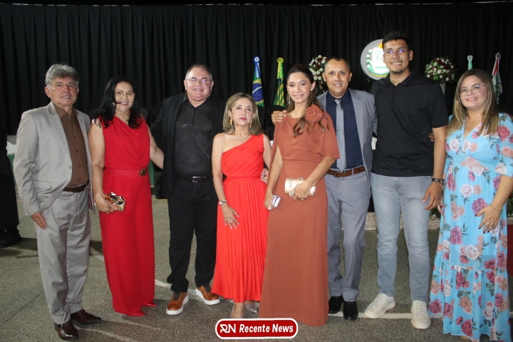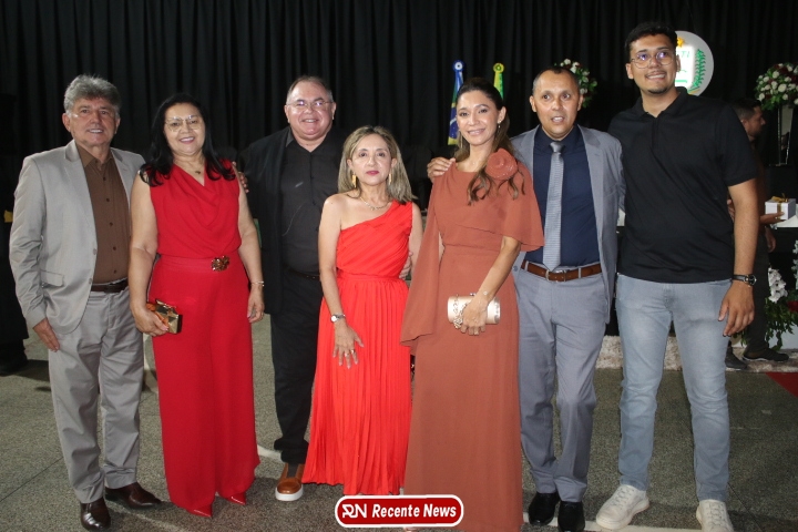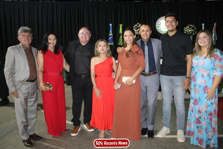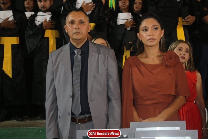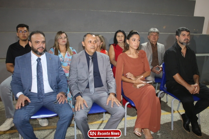 A solenidade foi conduzida de forma organizada e solene, iniciando com a abertura oficial feita pelo mestre de cerimônias, seguida da composição da mesa de honra, formada por autoridades educacionais, políticas e convidados especiais.