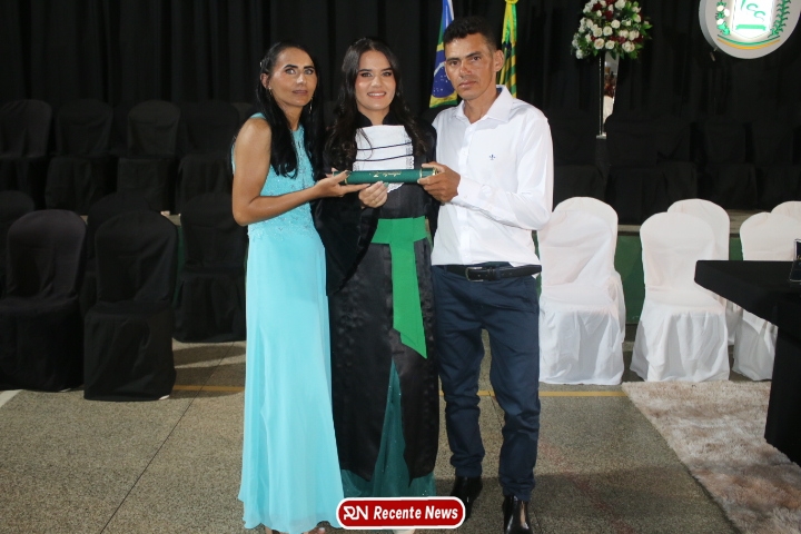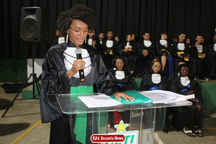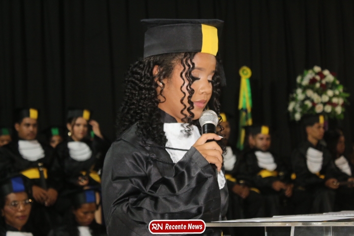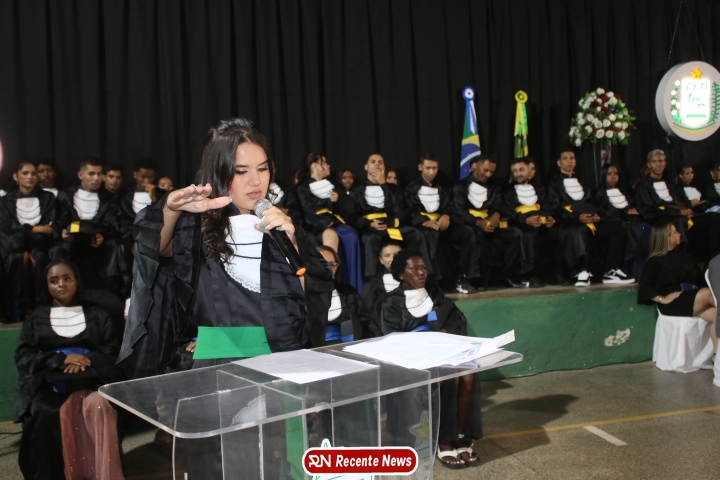 A programação seguiu com a execução do Hino Nacional Brasileiro, mensagens institucionais e discursos que reforçaram o sentimento de gratidão. Em nome dos formandos, a oradora da turma expressou emoções, memórias e agradecimentos, destacando a importância do apoio familiar, do trabalho dos professores e da estrutura oferecida pela escola.