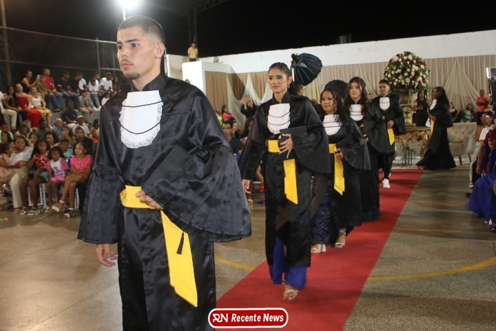 Com o tema “Gratidão – Reconhecer o Caminho, Honrar Quem Caminhou Conosco”, a solenidade simbolizou não apenas a conclusão de uma etapa educacional, mas também a valorização de todos que contribuíram para o sucesso dos formandos — gestores, professores, familiares, autoridades e parceiros da educação.