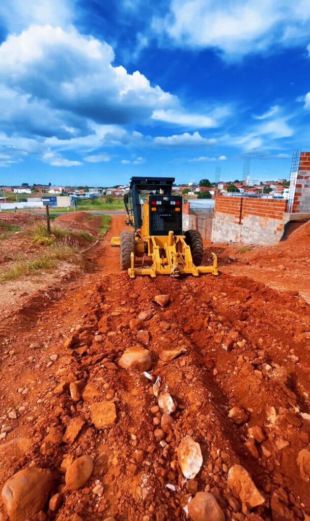 As imagens registradas no local mostram máquinas já em operação realizando o nivelamento e a adequação do solo em ruas que serão contempladas com o novo pavimento. O serviço, mesmo iniciado em um domingo, demonstra o ritmo acelerado das atividades.