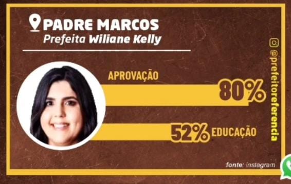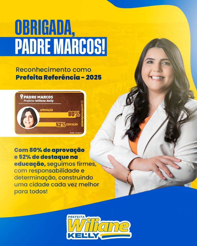 Em publicação oficial, a prefeita agradeceu à população de Padre Marcos pelo apoio e reafirmou o compromisso de continuar trabalhando com transparência, responsabilidade e resultados concretos para a cidade. “Com 80% de aprovação e 52% de destaque na educação, seguimos firmes, com responsabilidade e determinação, construindo uma cidade cada vez melhor para todos”, destacou.