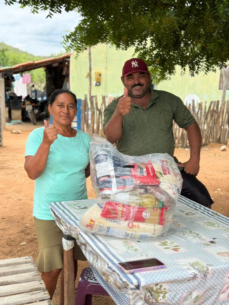 Diferente de ações tradicionais, a entrega das cestas está sendo realizada diretamente nas localidades e nas residências das famílias beneficiadas, evitando deslocamentos até a sede do município e a formação de filas na Secretaria de Assistência Social. A distribuição começou por comunidades como Baixa do Manoel Velho e Angical dos Magos, e seguirá ao longo da tarde e nos dias seguintes, contemplando outras localidades rurais até que todas as mil cestas sejam entregues.